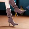 Botas Coreanas de Piel con Pliegues y Punta Fina 2025 Otoño e Invierno Nuevas Botas Retro de Media Pantorrilla para Mujer con Tacones de Aguja