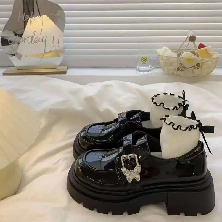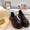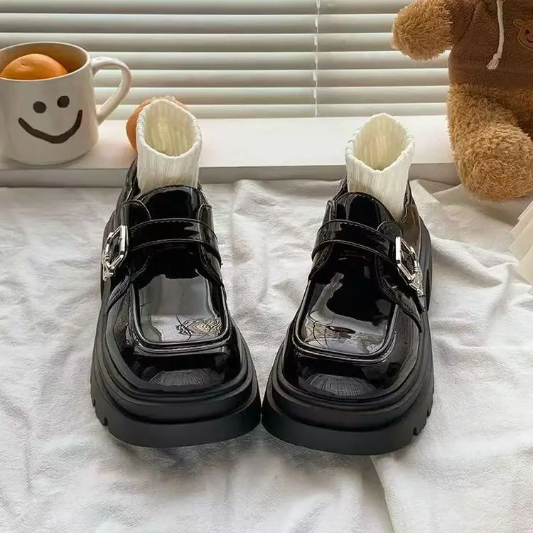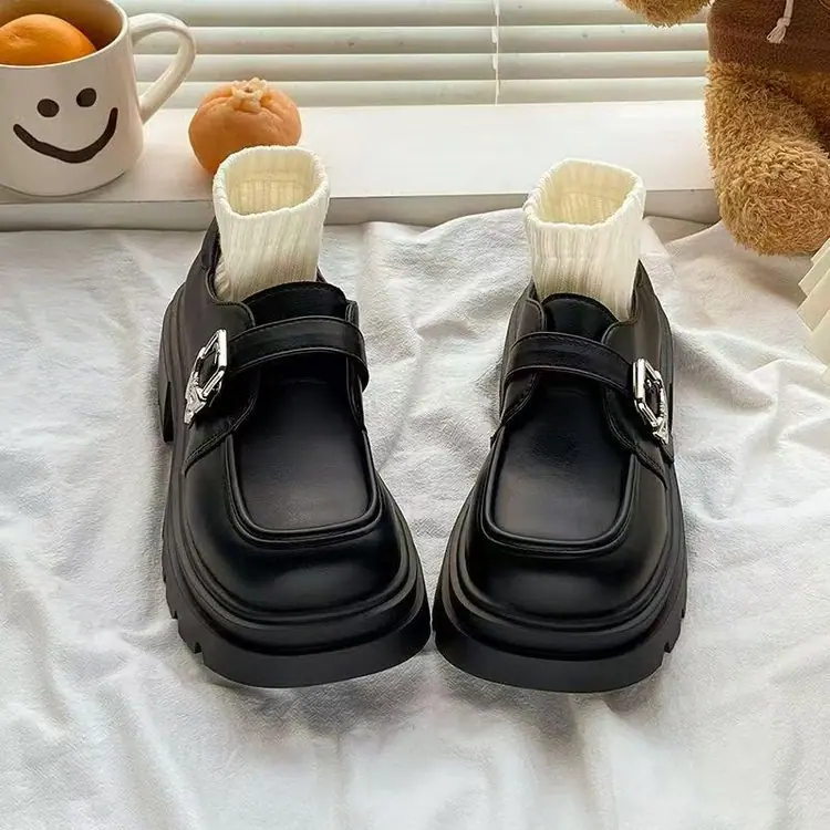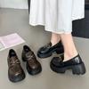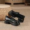 Zapatos franceses de punta redonda, suela gruesa, cuero negro, para mujer, otoño 2025, nuevos, retro, estilo británico, mocasines de plataforma, zapatos individuales