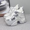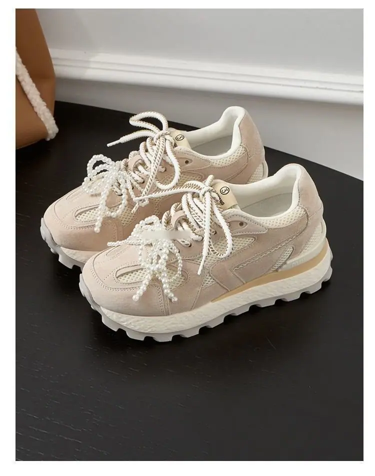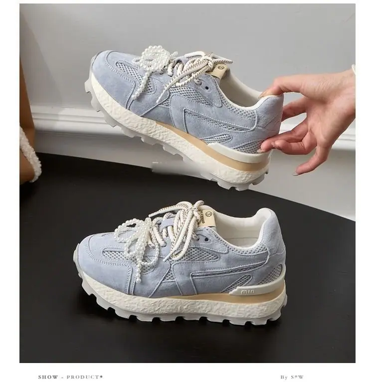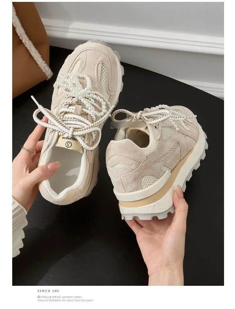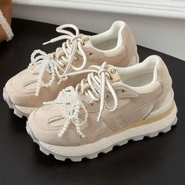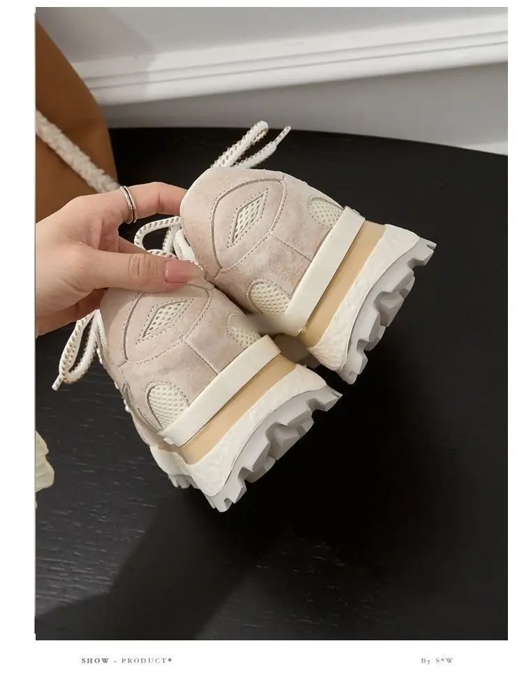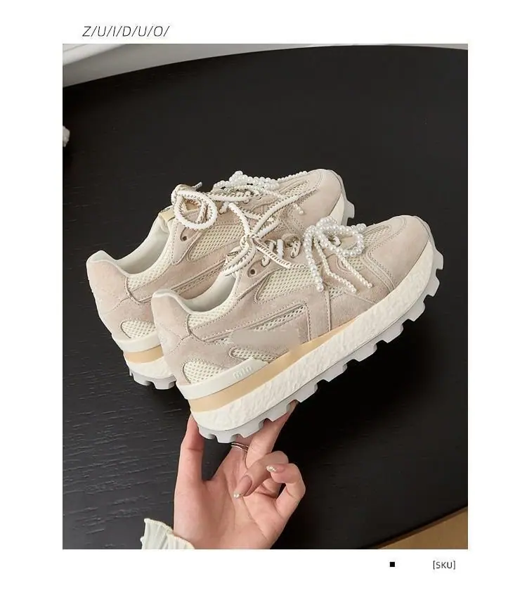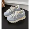 2025 nuevos zapatos blancos de estilo universitario de alto valor que aumentan la altura para mujer otoño plataforma suela gruesa transpirables zapatos de papá para mujer
