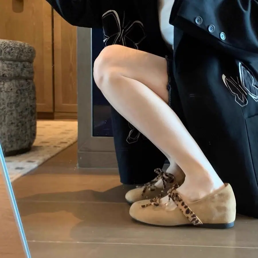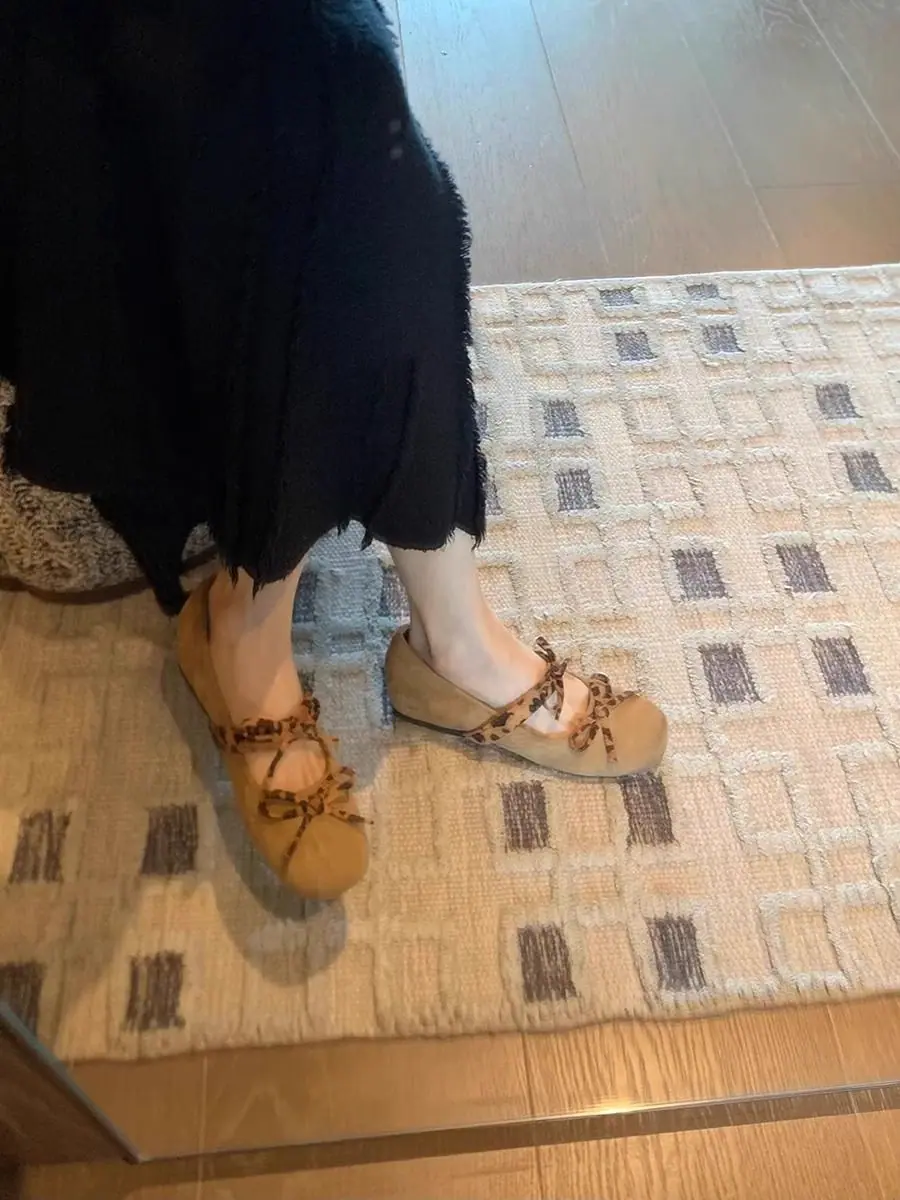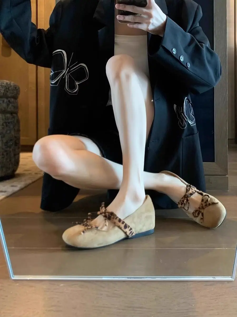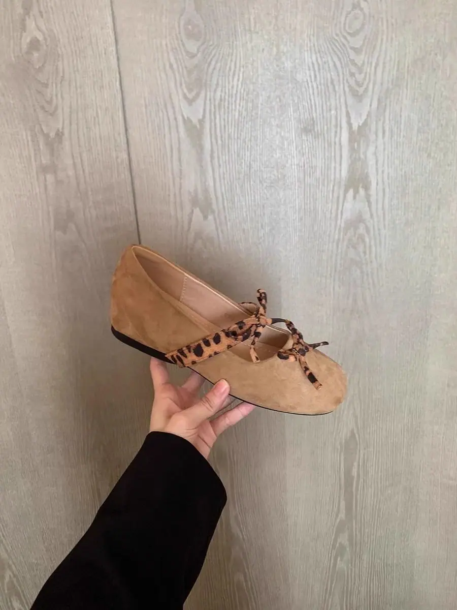Tacón Oculto Retro Francés Estampado Leopardo Lazo Zapatos Individuales Mujer 2025 Otoño Nuevo Gamuza Estilo Hada Abuelita Mary Janes