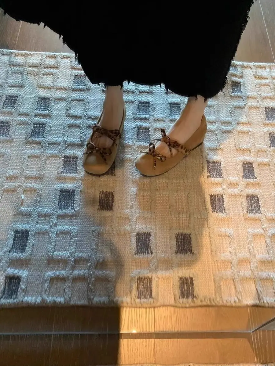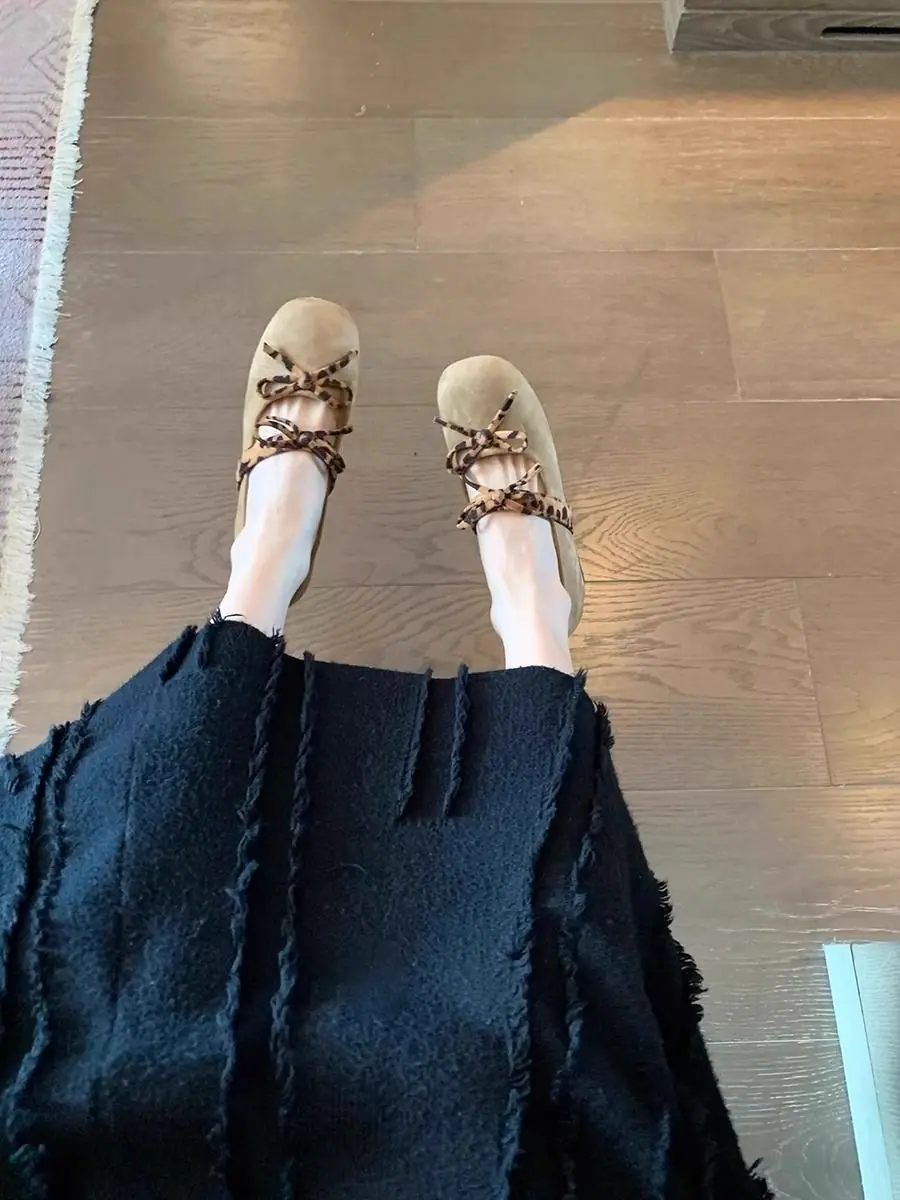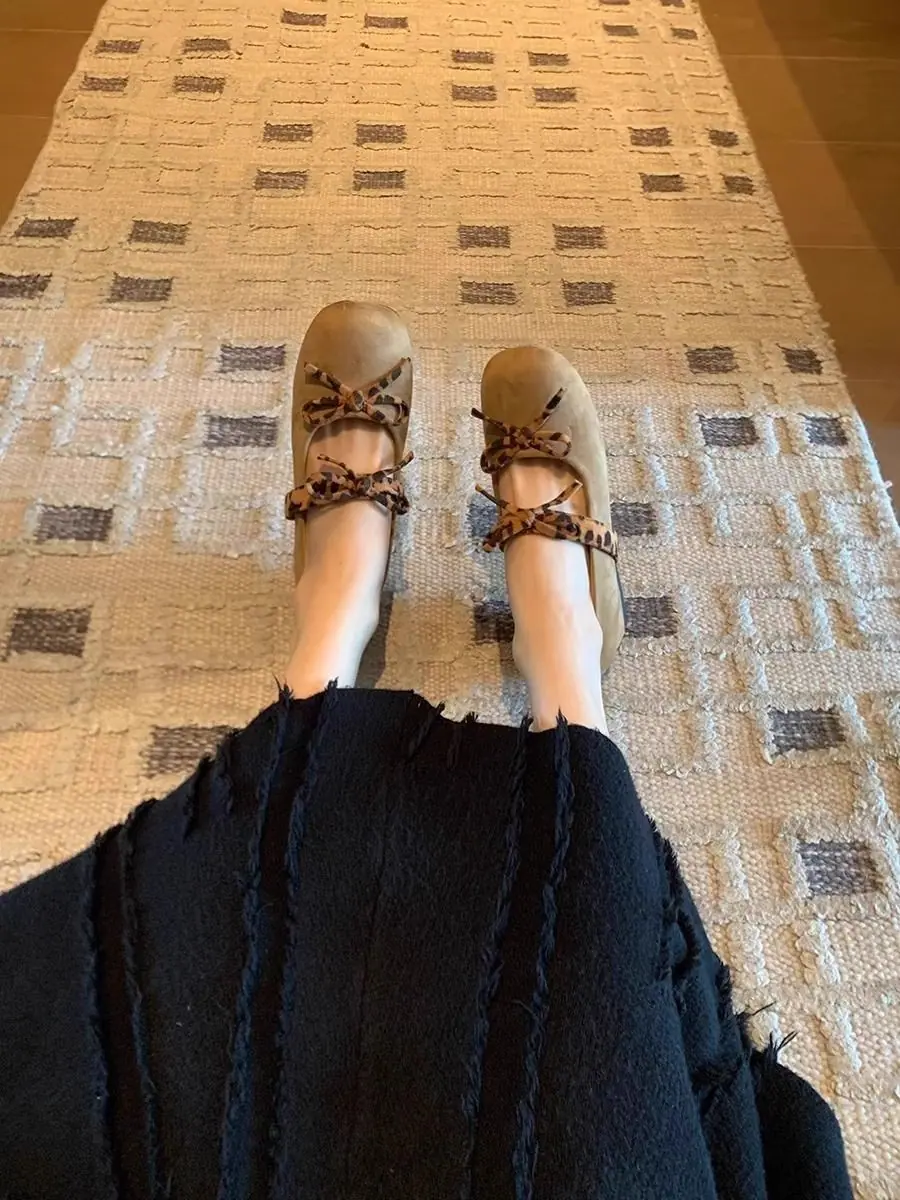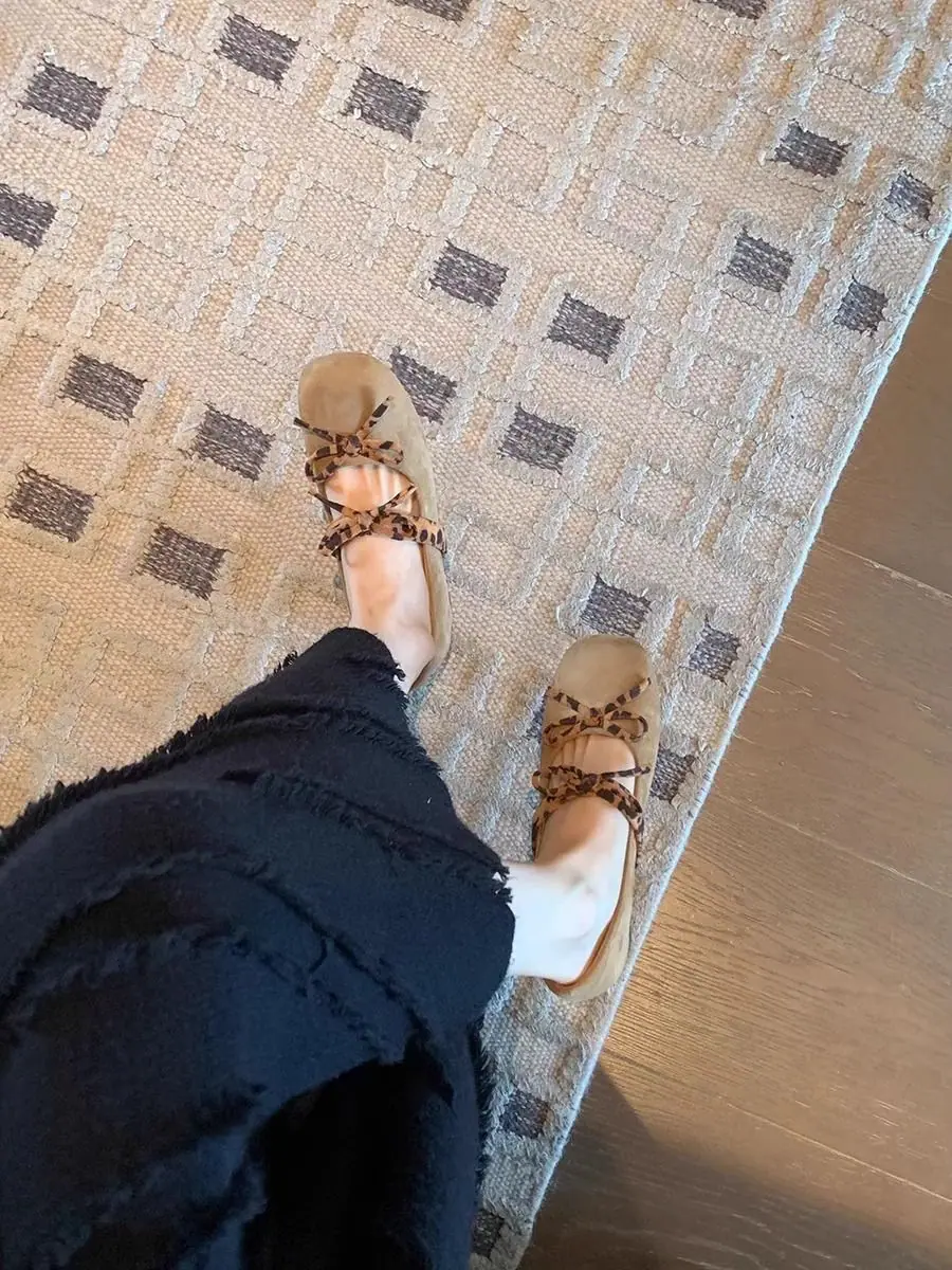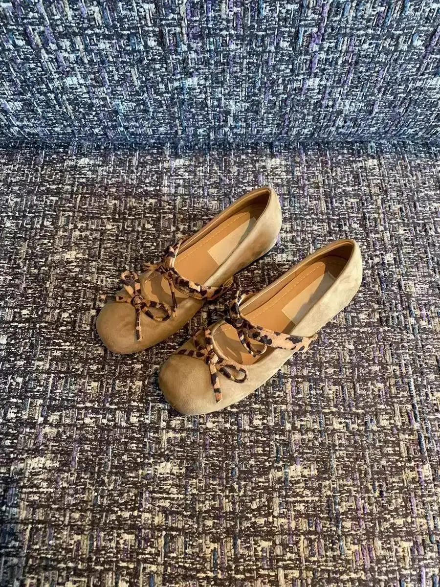 Tacón Oculto Retro Francés Estampado Leopardo Lazo Zapatos Individuales Mujer 2025 Otoño Nuevo Gamuza Estilo Hada Abuelita Mary Janes