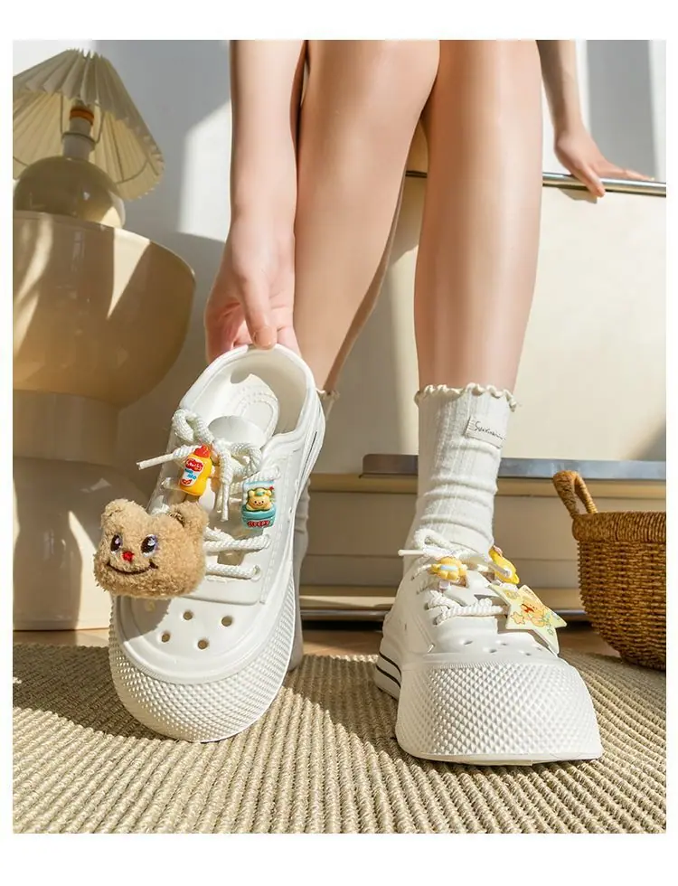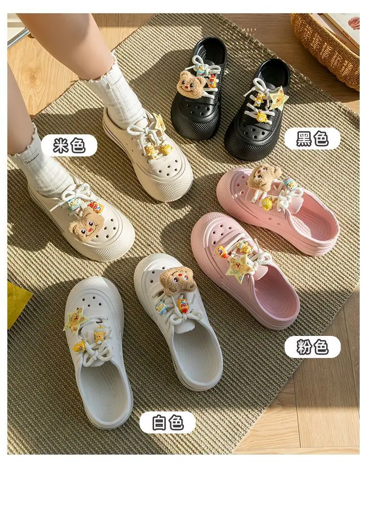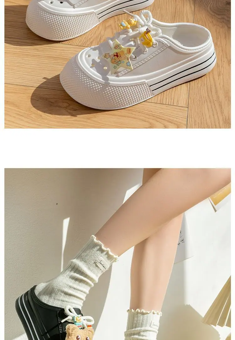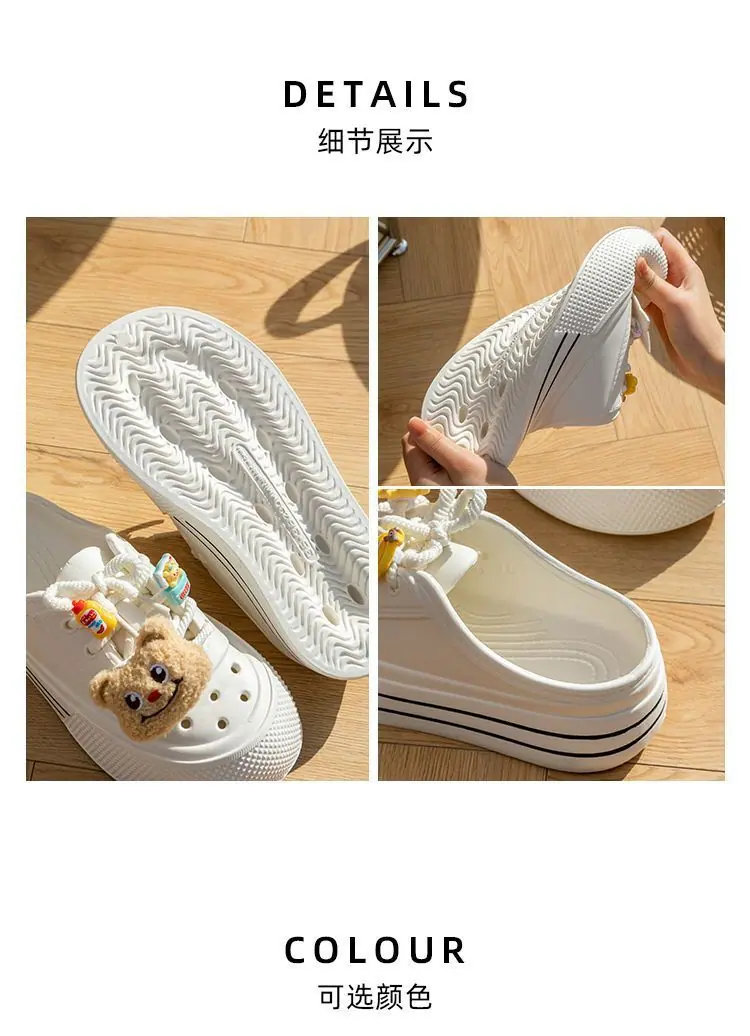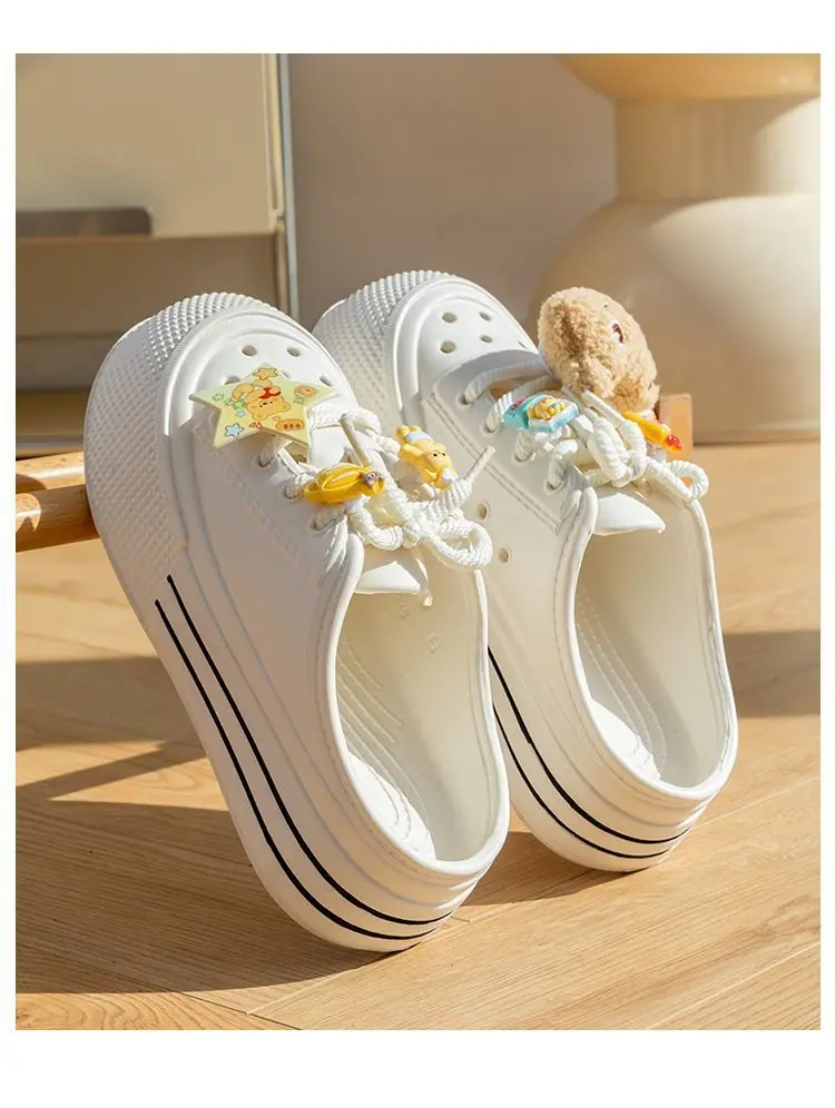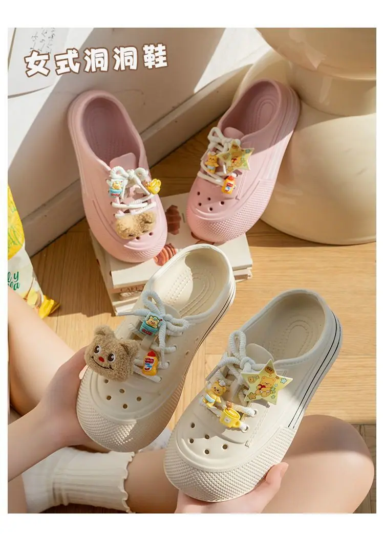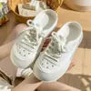 Zapatos con agujeros para mujer, lindos zapatos blancos pequeños de celebridad de internet, estilo nuevo 2025, corazón juvenil, suela gruesa antideslizante para exteriores, pantuflas frescas de verano