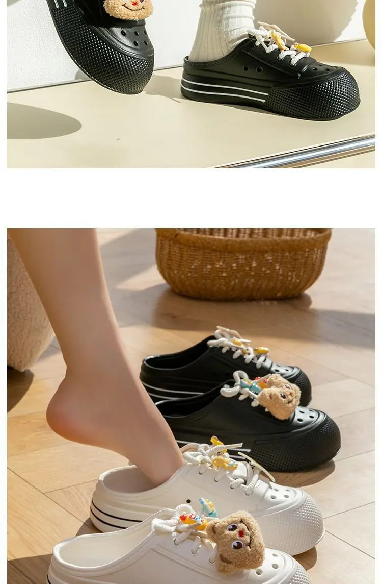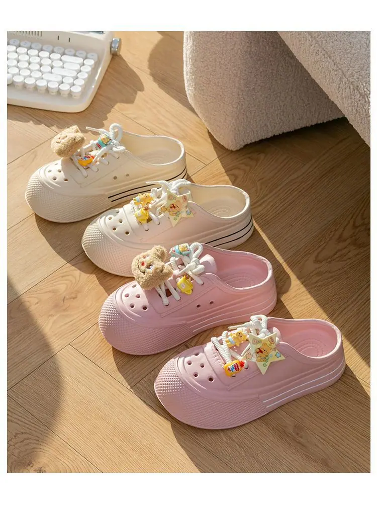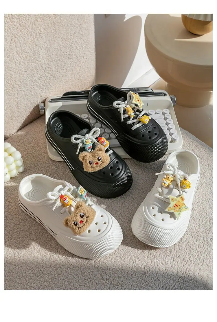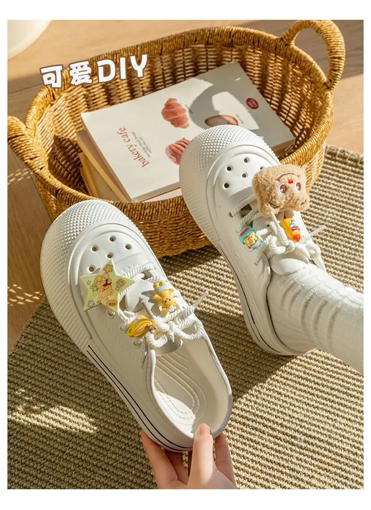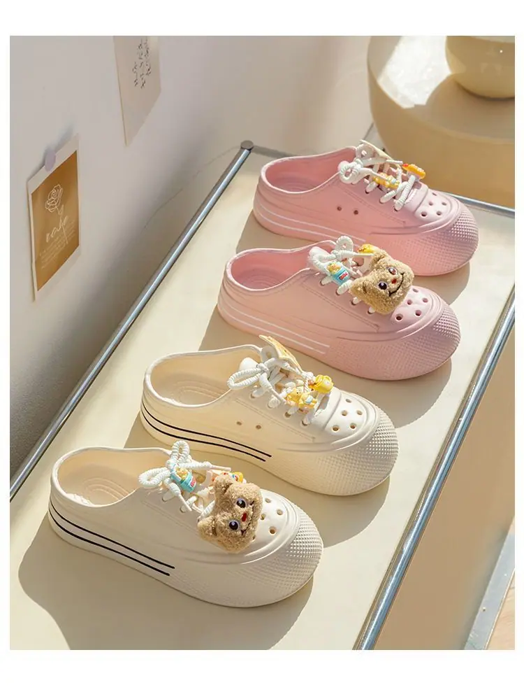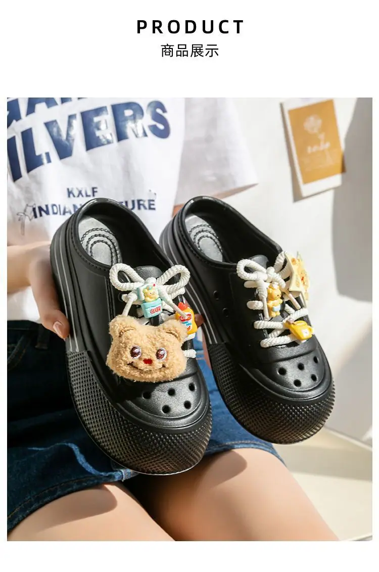 Zapatos con agujeros para mujer, lindos zapatos blancos pequeños de celebridad de internet, estilo nuevo 2025, corazón juvenil, suela gruesa antideslizante para exteriores, pantuflas frescas de verano