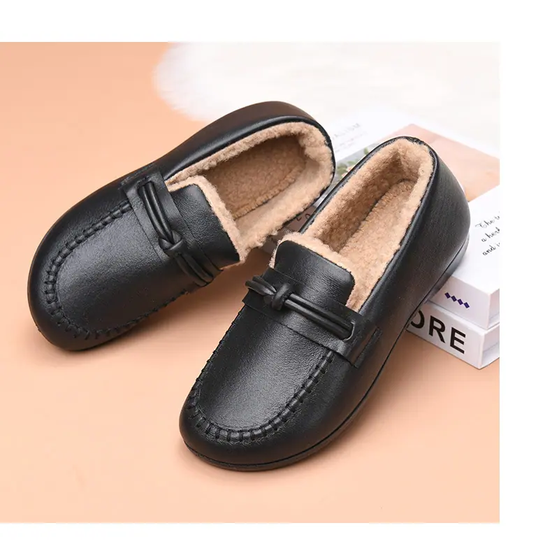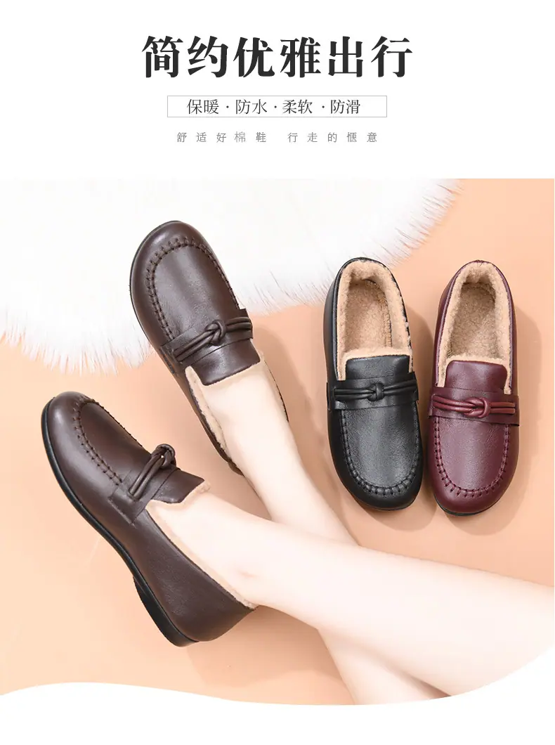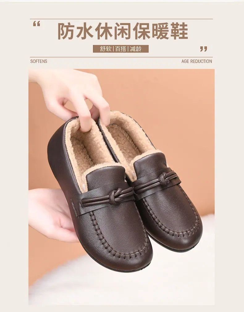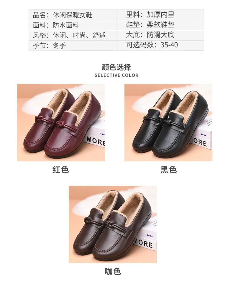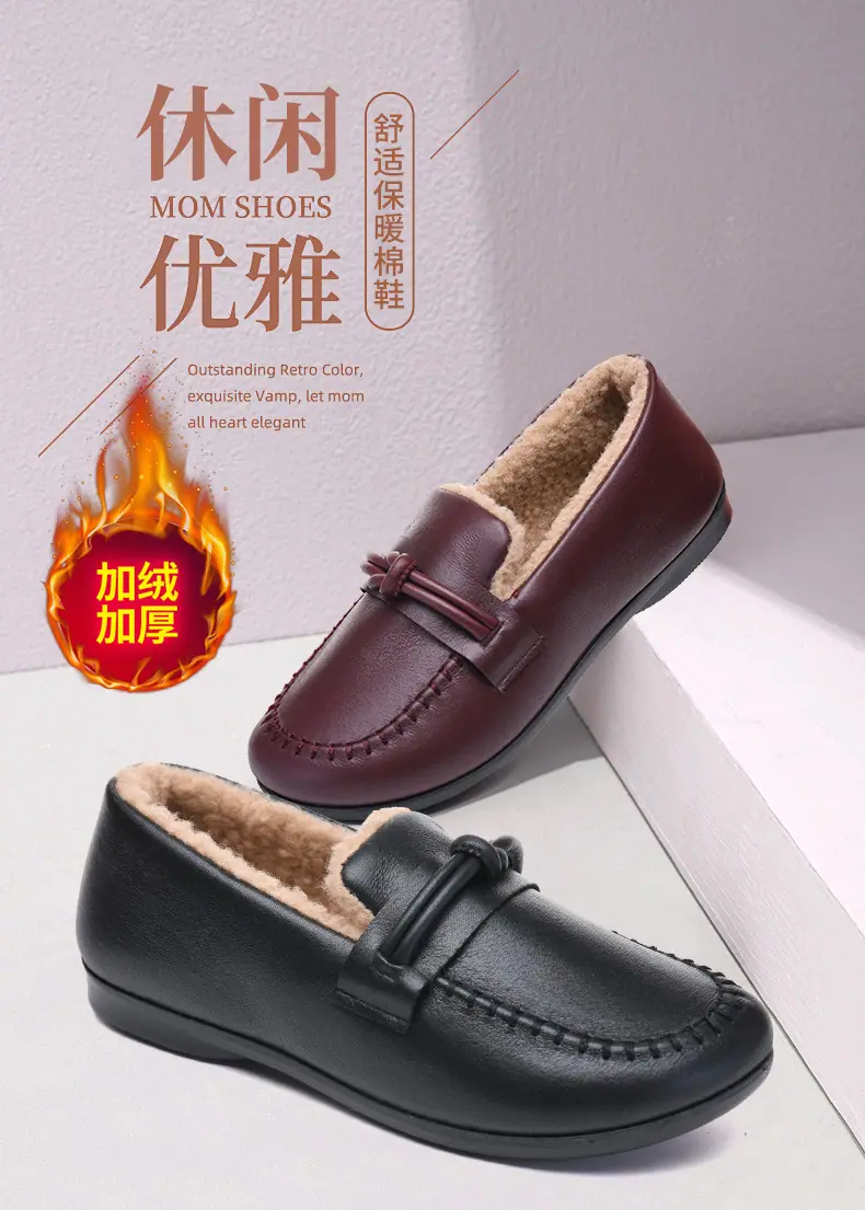 Invierno Nuevo Felpa Engrosado Cómodo Zapatos de Algodón para Mujer Antideslizante Cálido Mediana Edad y Adulto Mayor Sin Cordones Suela Suave Zapatos de Mamá Dropshipping