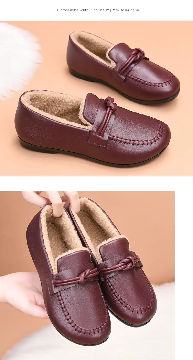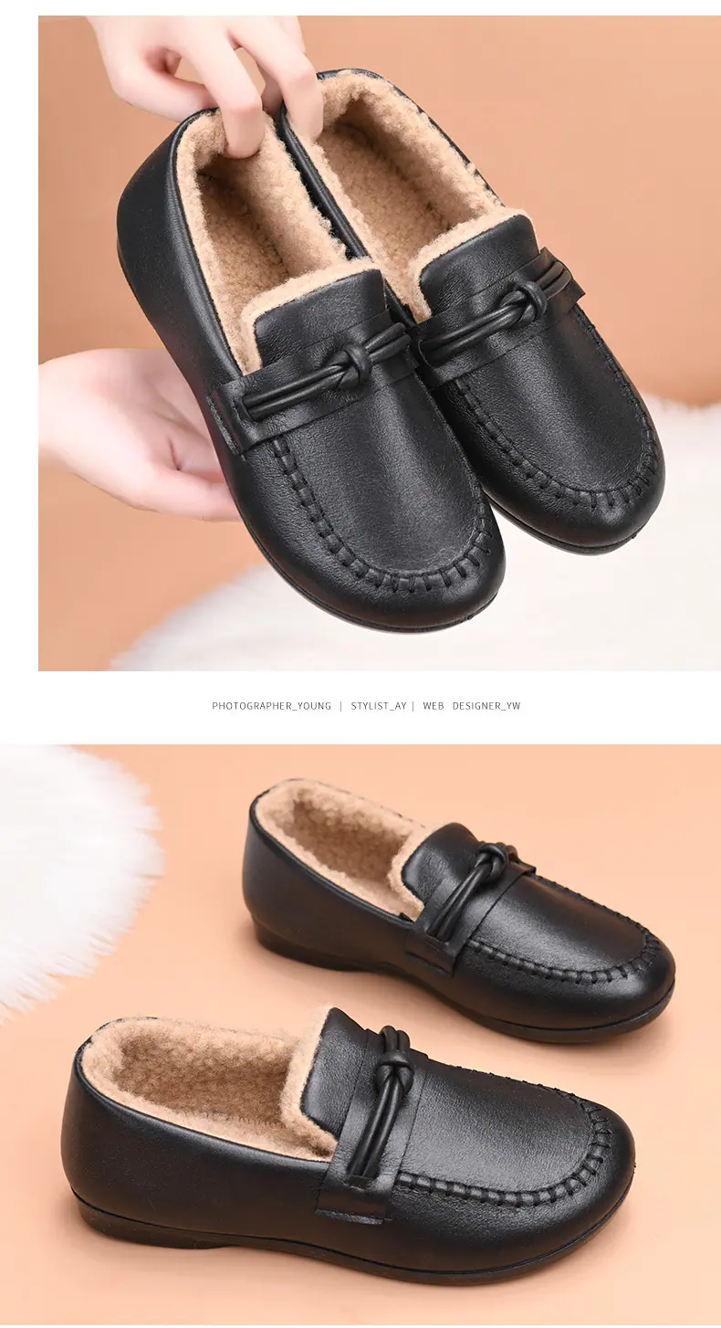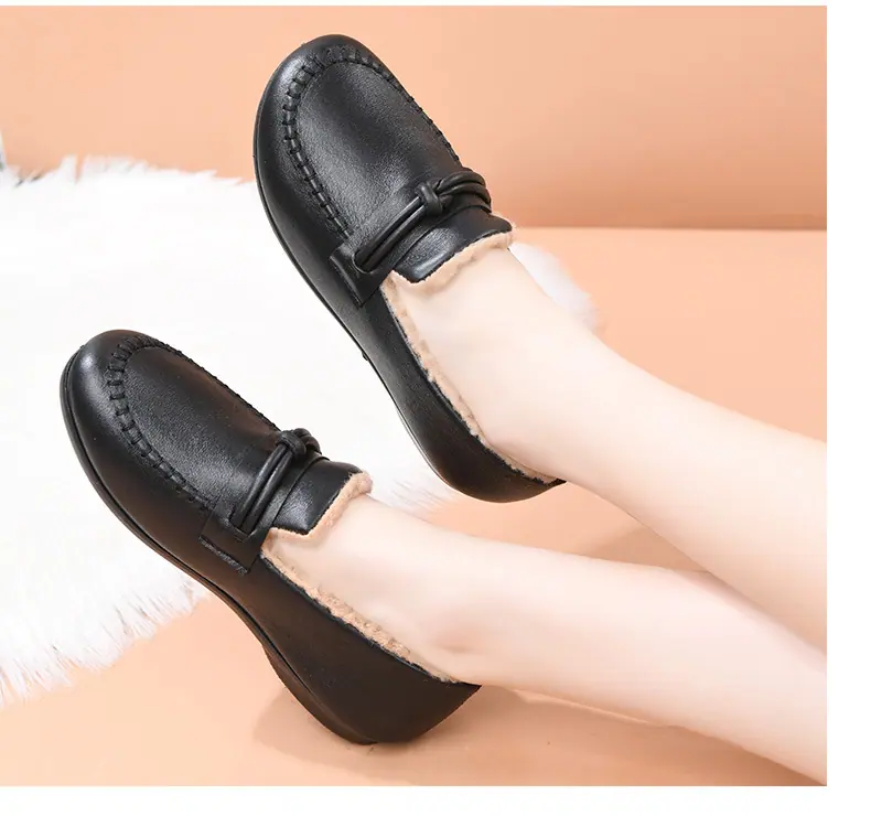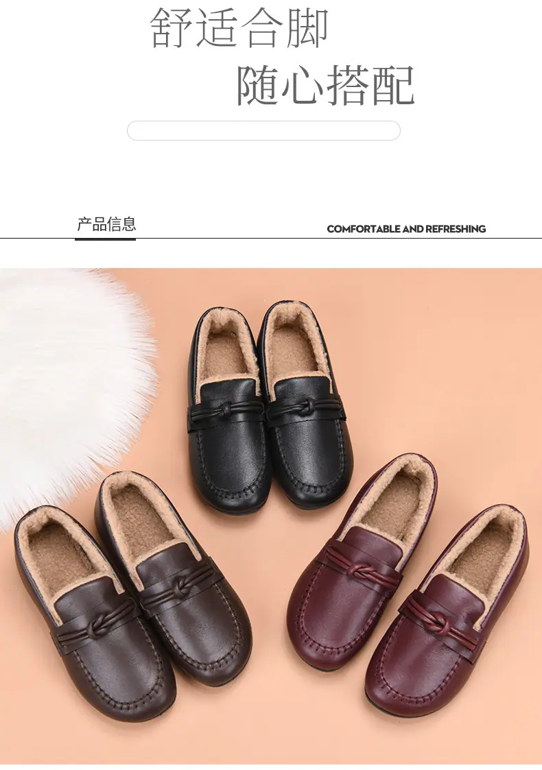 Invierno Nuevo Felpa Engrosado Cómodo Zapatos de Algodón para Mujer Antideslizante Cálido Mediana Edad y Adulto Mayor Sin Cordones Suela Suave Zapatos de Mamá Dropshipping