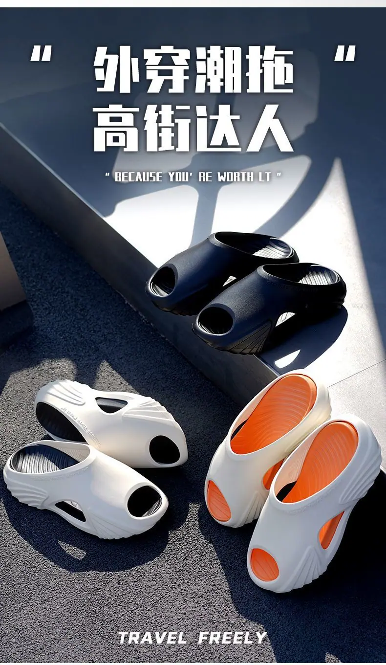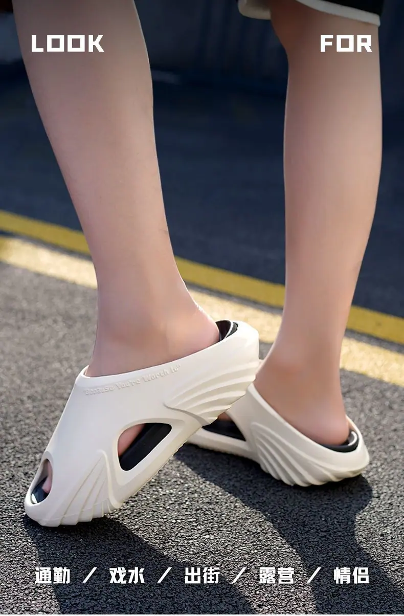 Pantuflas Deportivas de Suela Gruesa para Hombre Verano Tendencia Exterior Nuevo Casual Hogar Antideslizante Suela Suave Playa Una Palabra