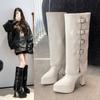 Botas de Tacón de Aguja Puntiagudas 2025 Otoño e Invierno Nuevo Estilo Hebilla Aspecto Adelgazante Versátiles de Tacón Alto Botas para Pantalón Botas de Moda de Nicho para Mujer