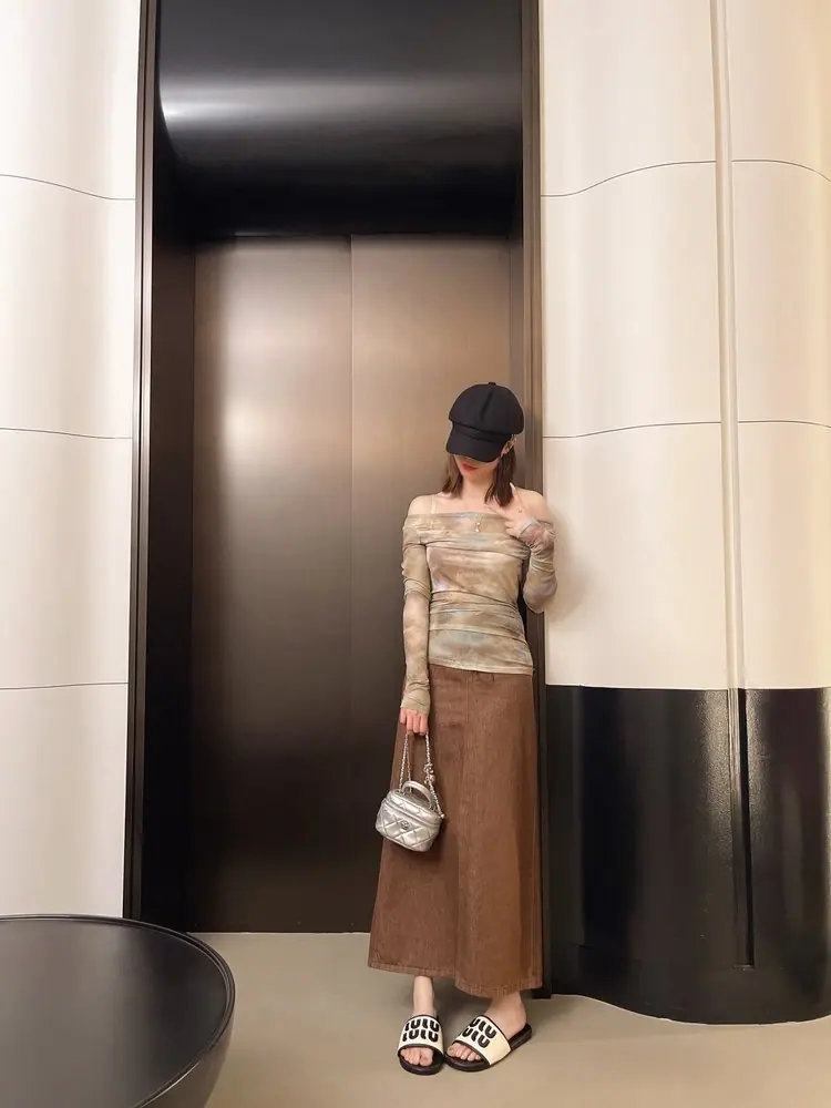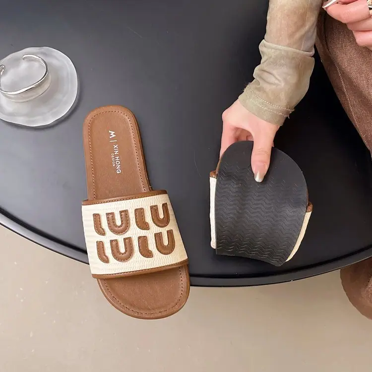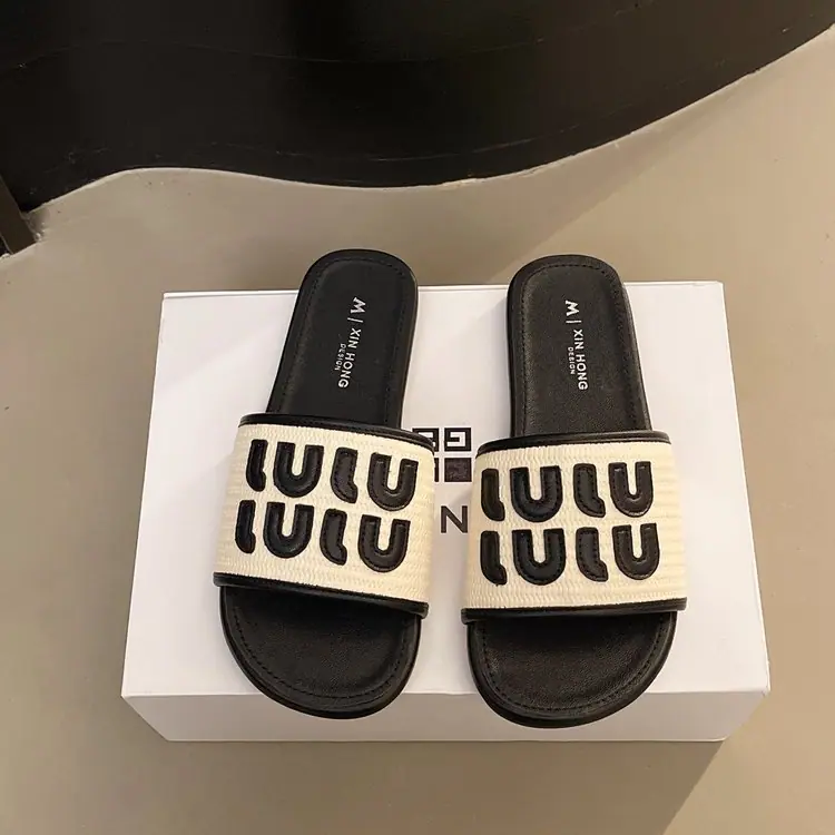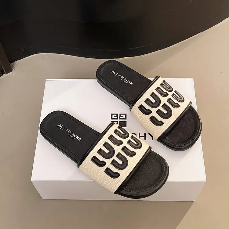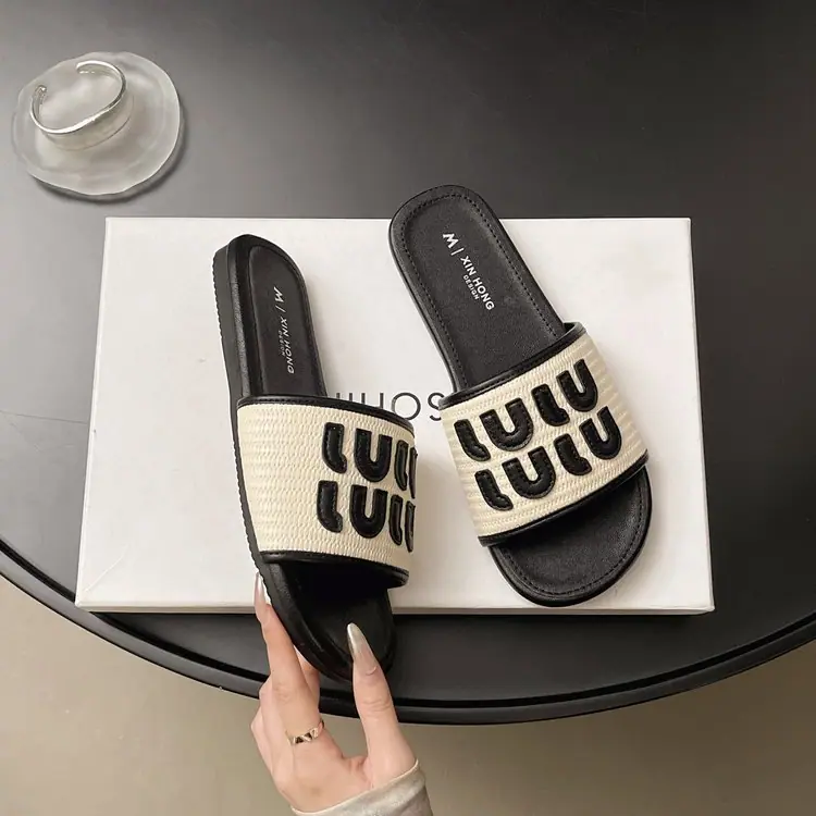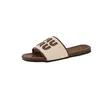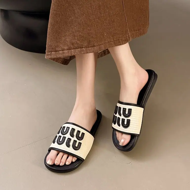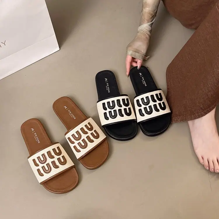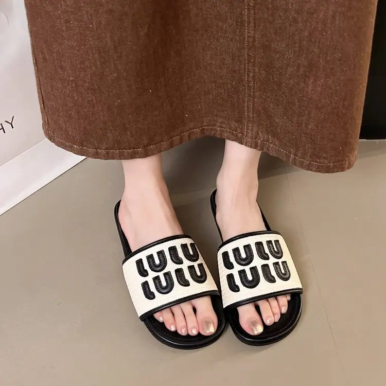 Pantuflas planas de una tira para mujer, verano, nuevo estilo para exterior con falda, pantuflas de playa