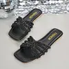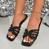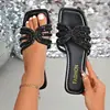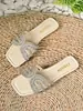 Talla Grande para Mujer Verano 2025 Nuevo Punta Cuadrada Pedrería Chanclas Planas Slip-on de Playa Dulce Comercio Exterior Venta al por Mayor