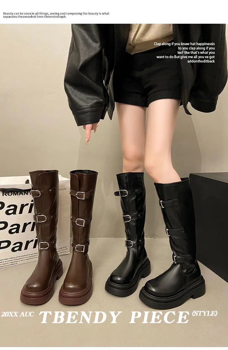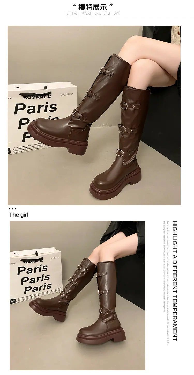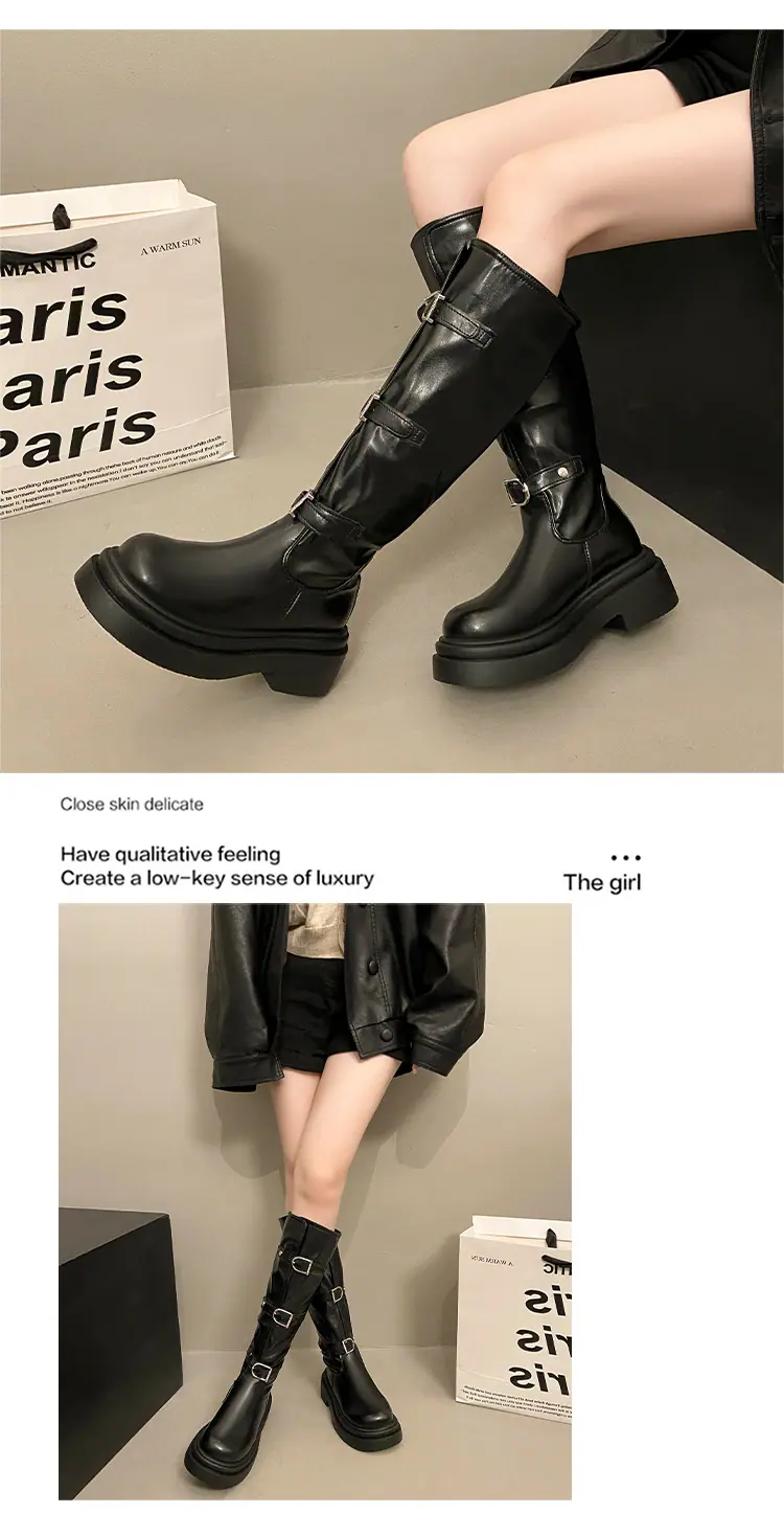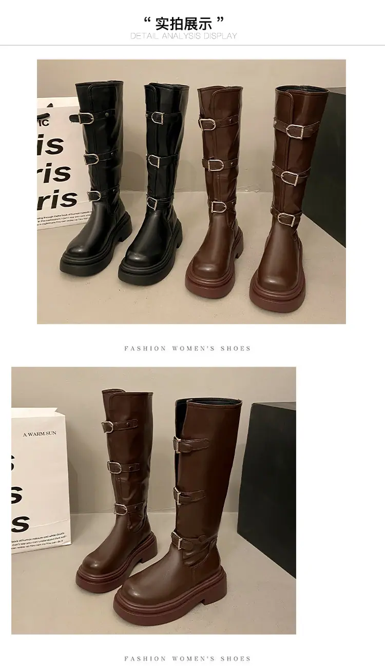 2025 nuevas botas Martin de suela gruesa de otoño e invierno, botas versátiles retro de estilo británico, botas de verano hasta la rodilla para mujer, botas vaqueras occidentales