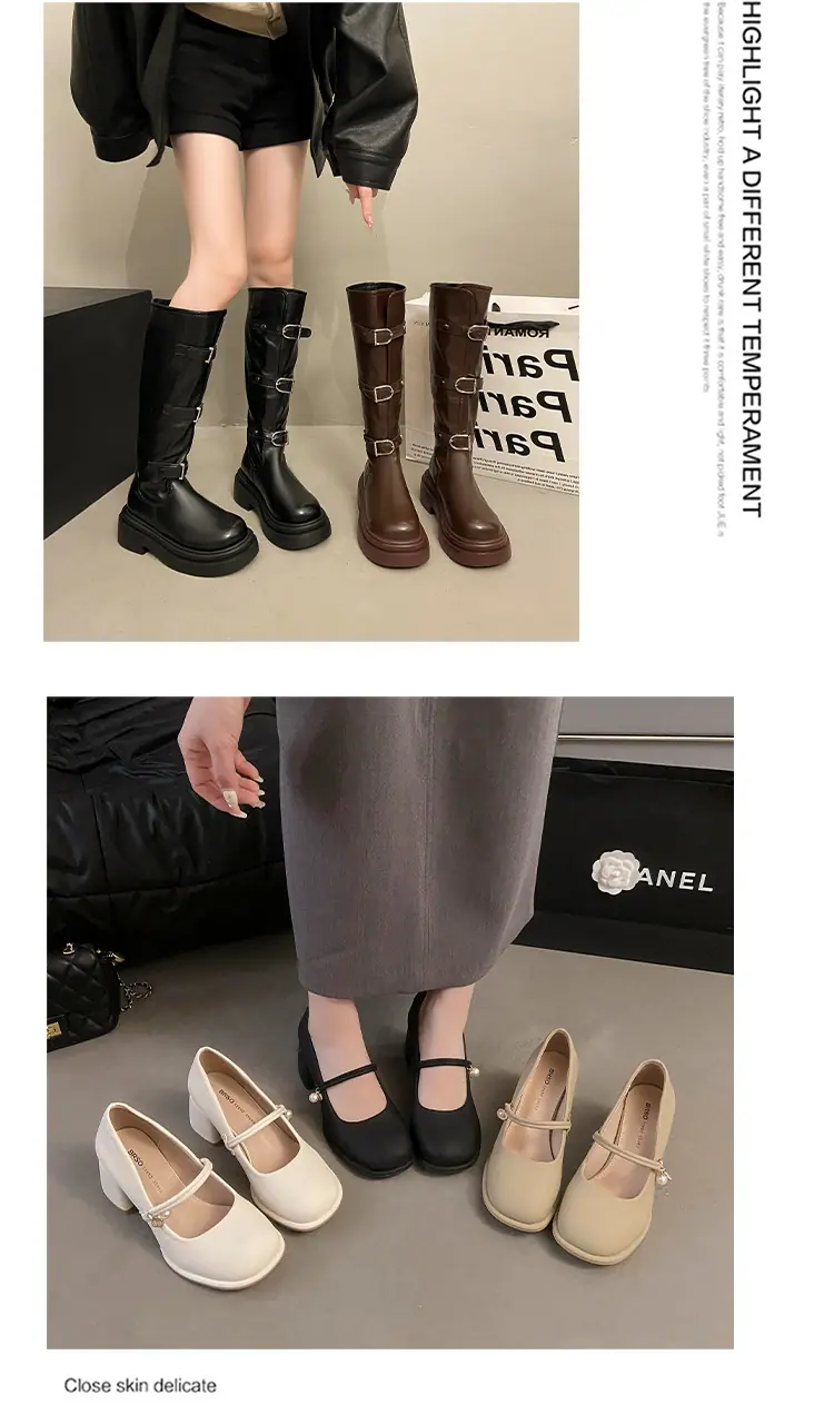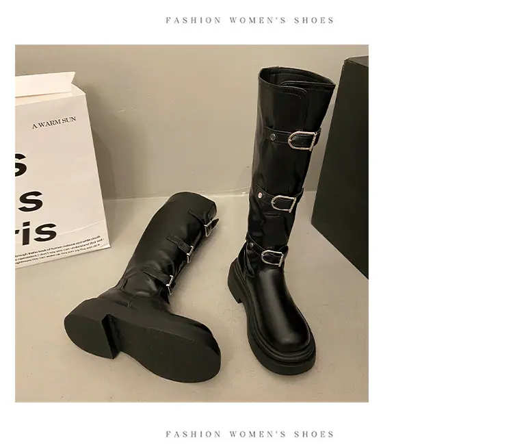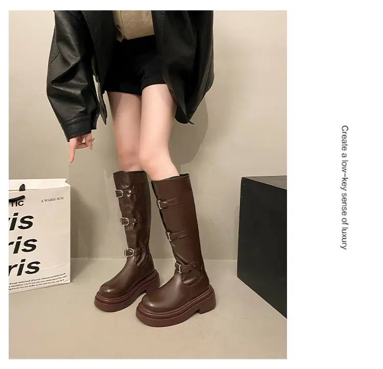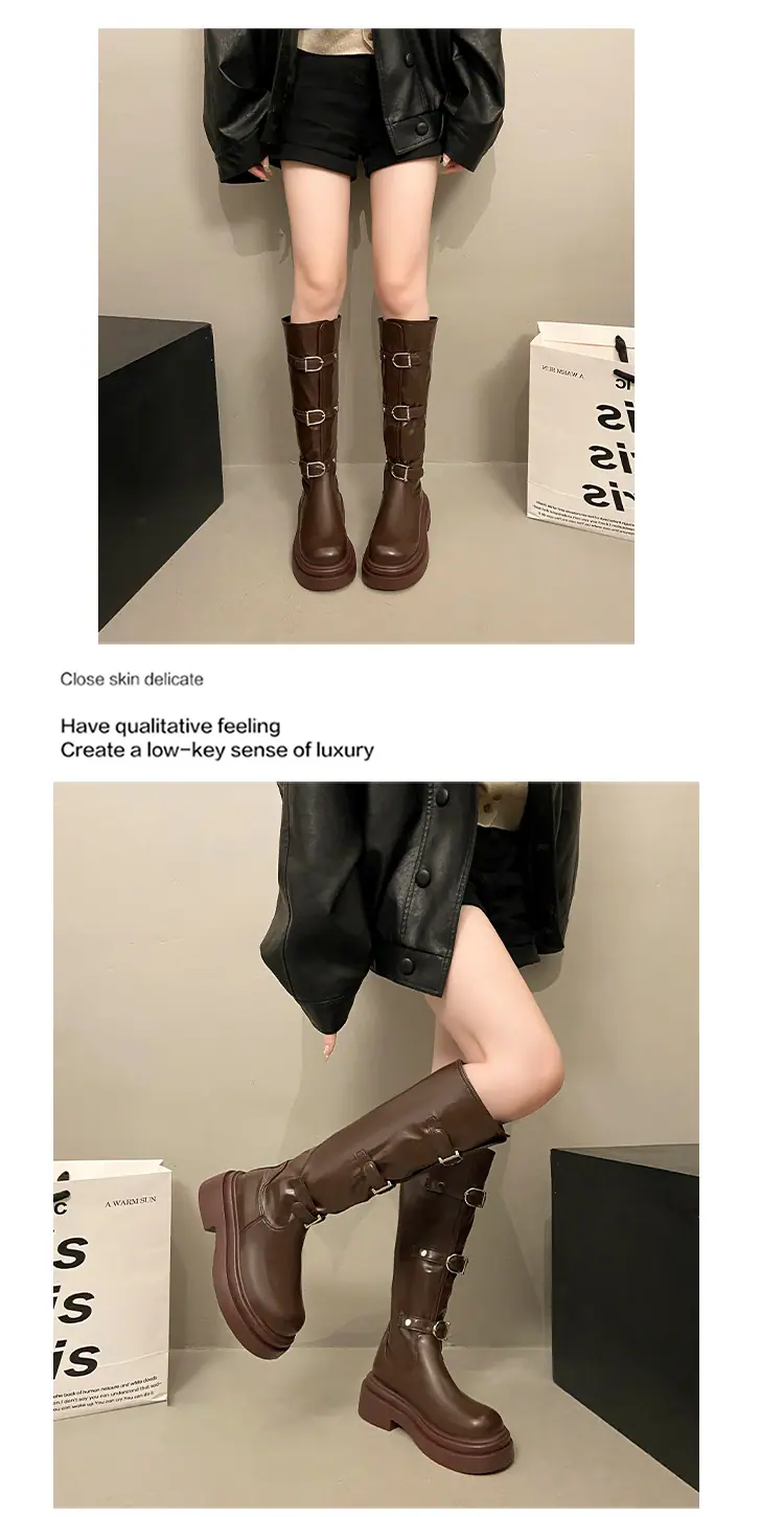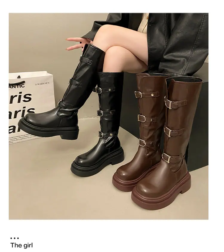 2025 nuevas botas Martin de suela gruesa de otoño e invierno, botas versátiles retro de estilo británico, botas de verano hasta la rodilla para mujer, botas vaqueras occidentales