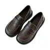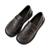 Zapatos Retro Pequeños de Cuero Mujer 2025 Otoño/Invierno Nuevos Mocasines de Suela Gruesa Suela Blanda Estilo Británico Punta Redonda Cuero Suave Zapatos Individuales