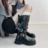 Estilo Europeo y Americano~~ Botas Altas Hasta la Rodilla para Mujer, Botas Anchas, Nuevos Tacones Gruesos Versátiles, Suelas Gruesas, Remaches Negros, Botas de Caballero Punk