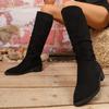 Nuevas Botas de Caballero Otoño e Invierno 2025 para Mujer Botas Altas Europeas y Americanas de Gamuza Tacón Grueso Punta Fina Botas de Pana Plisadas Marrones