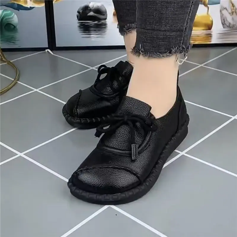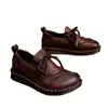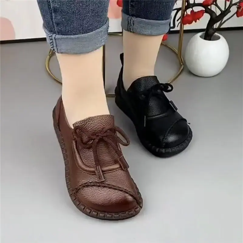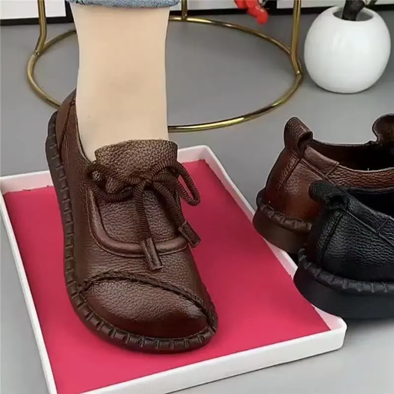 2025 Invierno Nuevo Retro con Cordones Zapatos Pequeños de Cuero Costuras Plano Boca Baja Moda Cómodos Versátiles Zapatos Individuales Mujer