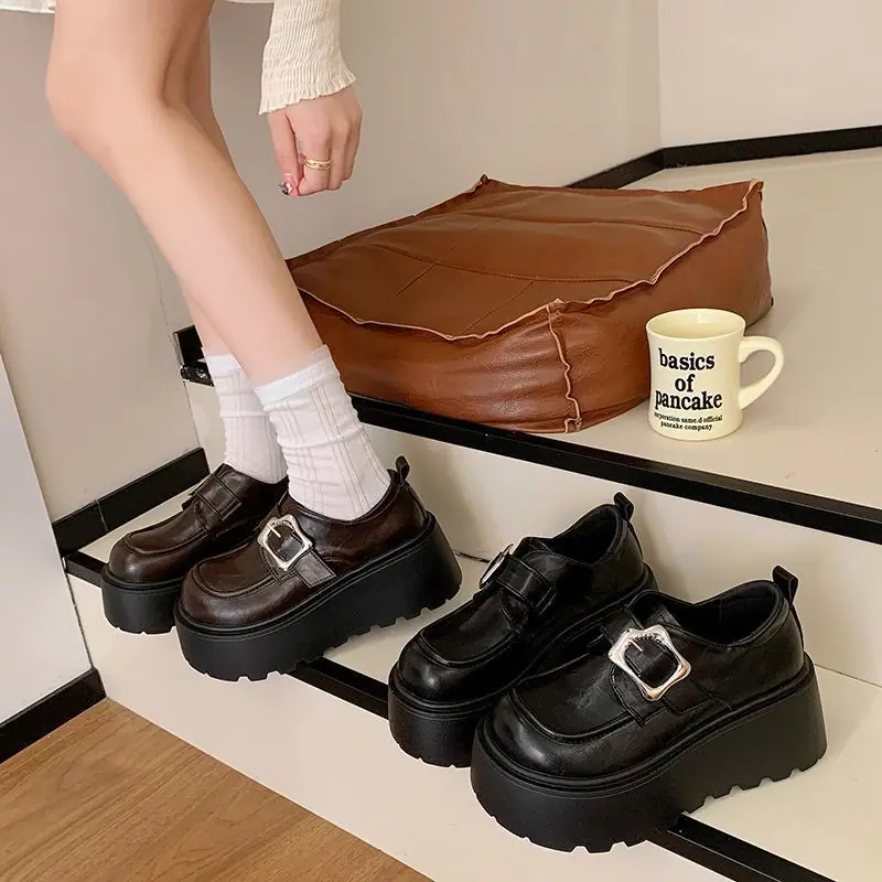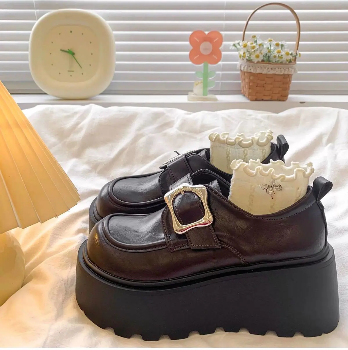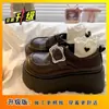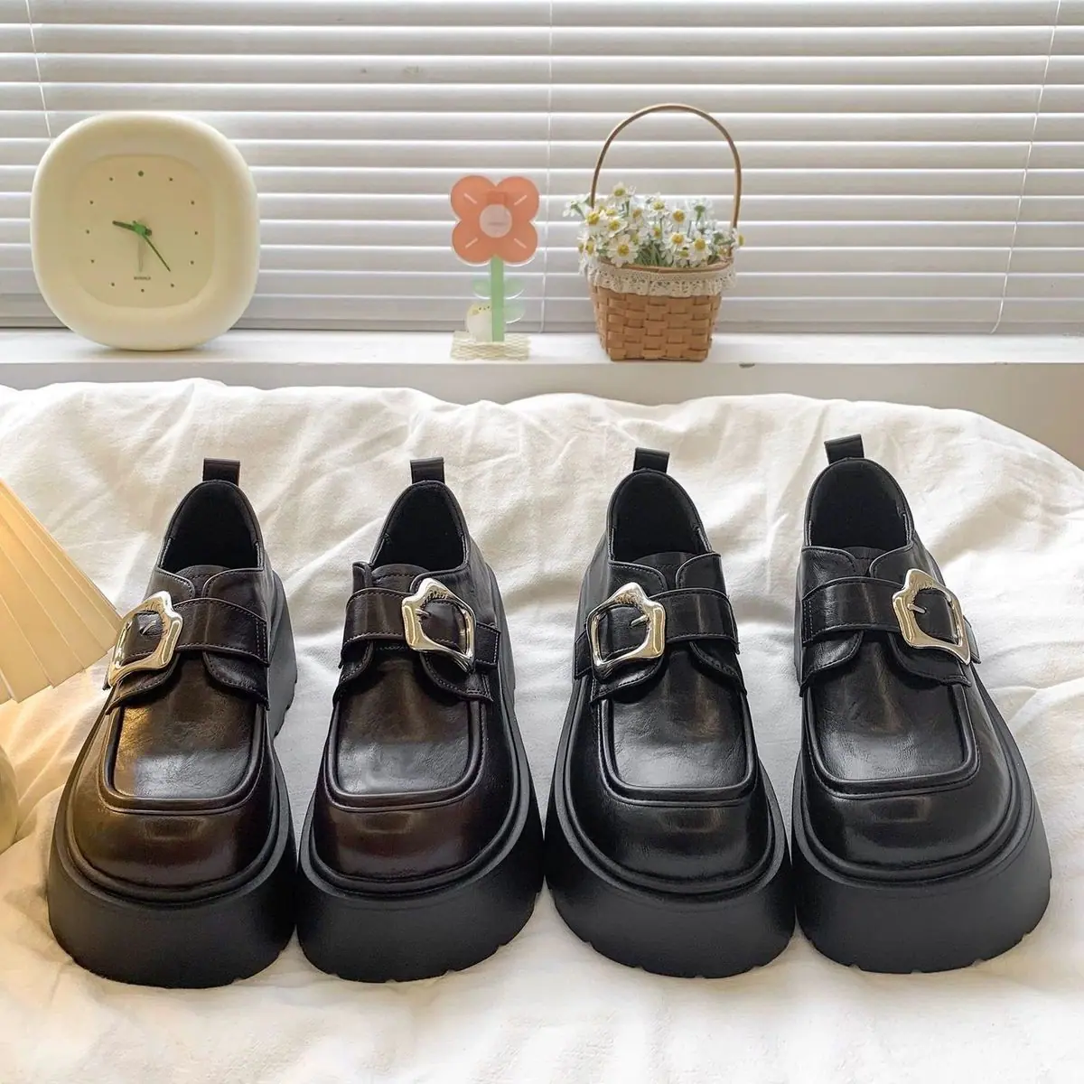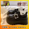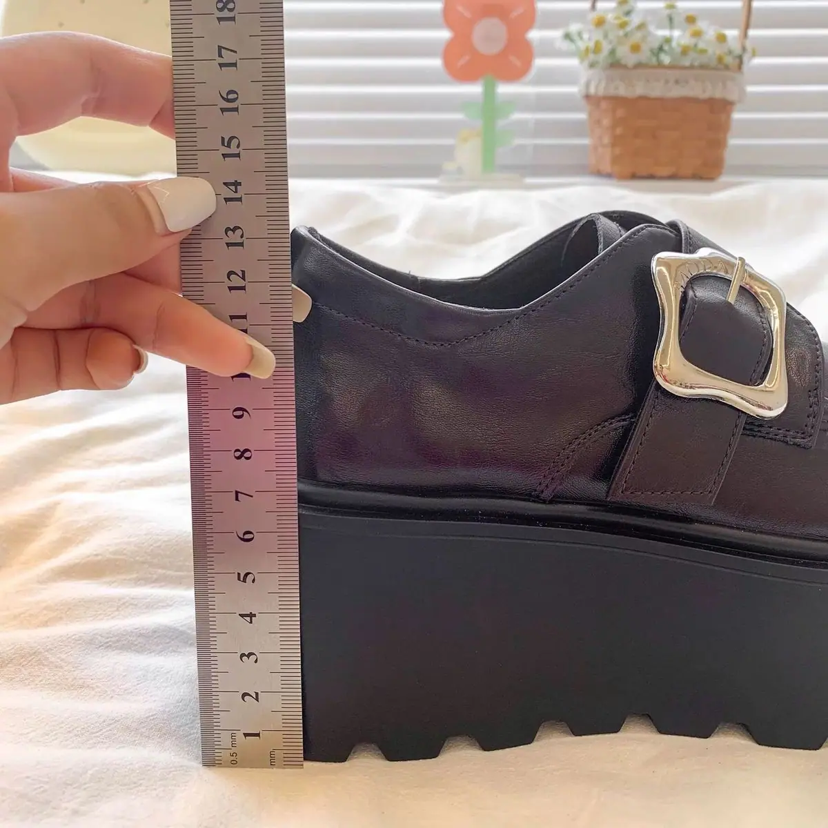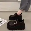 2025 Otoño Nueva Moda Versátil Mocasines de Punta Redonda Retro Plataforma Zapatos Individuales Estilo Británico Suela Gruesa Aumento de Altura Zapatos Pequeños de Cuero