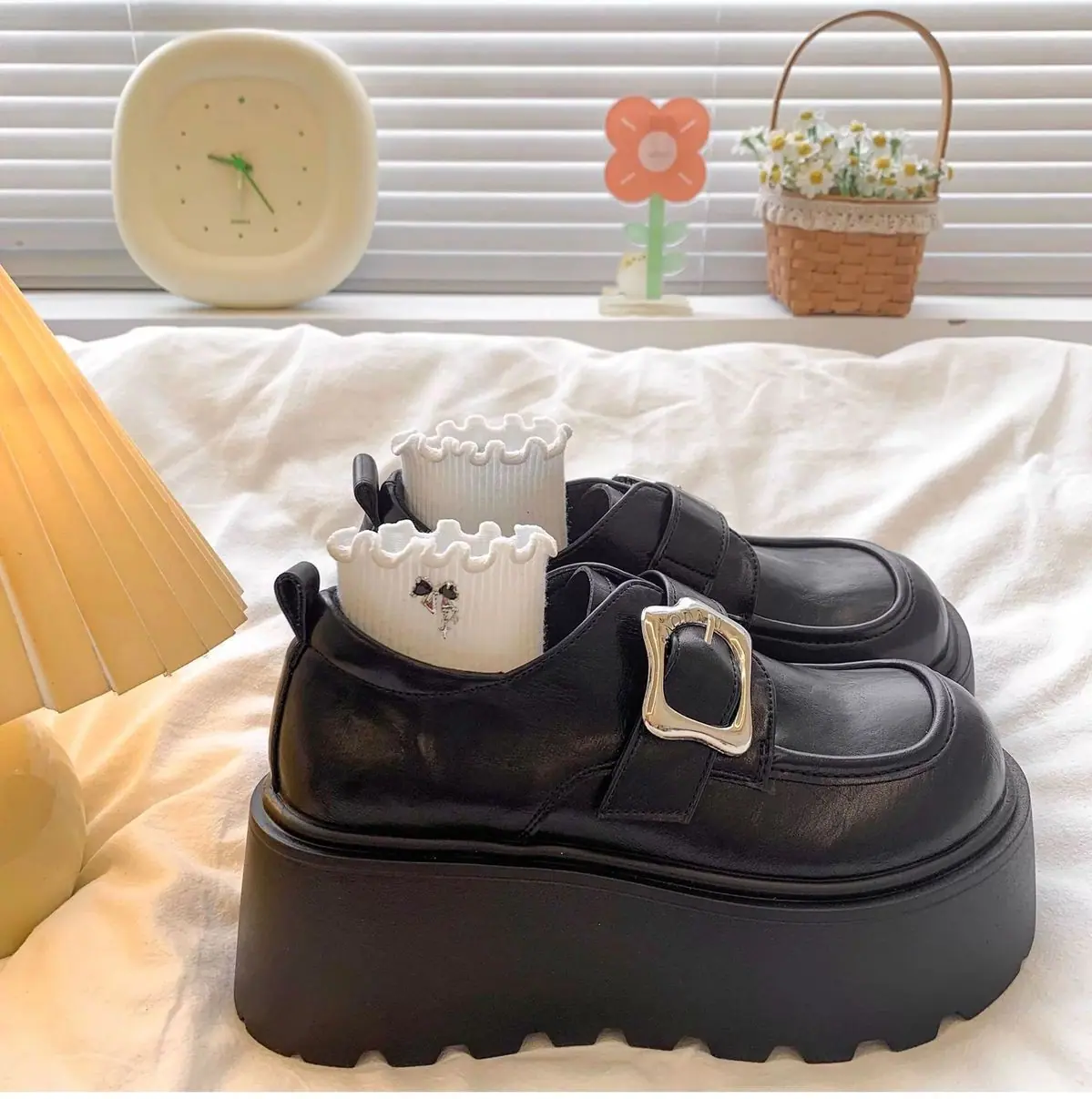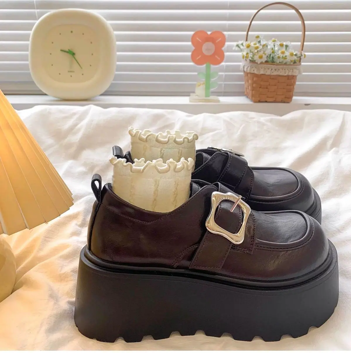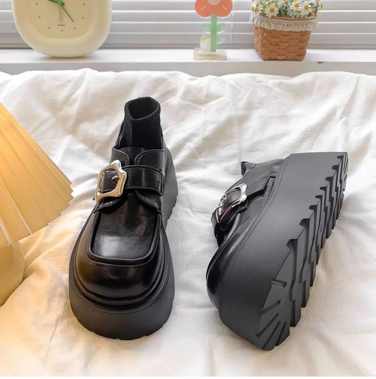 2025 Otoño Nueva Moda Versátil Mocasines de Punta Redonda Retro Plataforma Zapatos Individuales Estilo Británico Suela Gruesa Aumento de Altura Zapatos Pequeños de Cuero