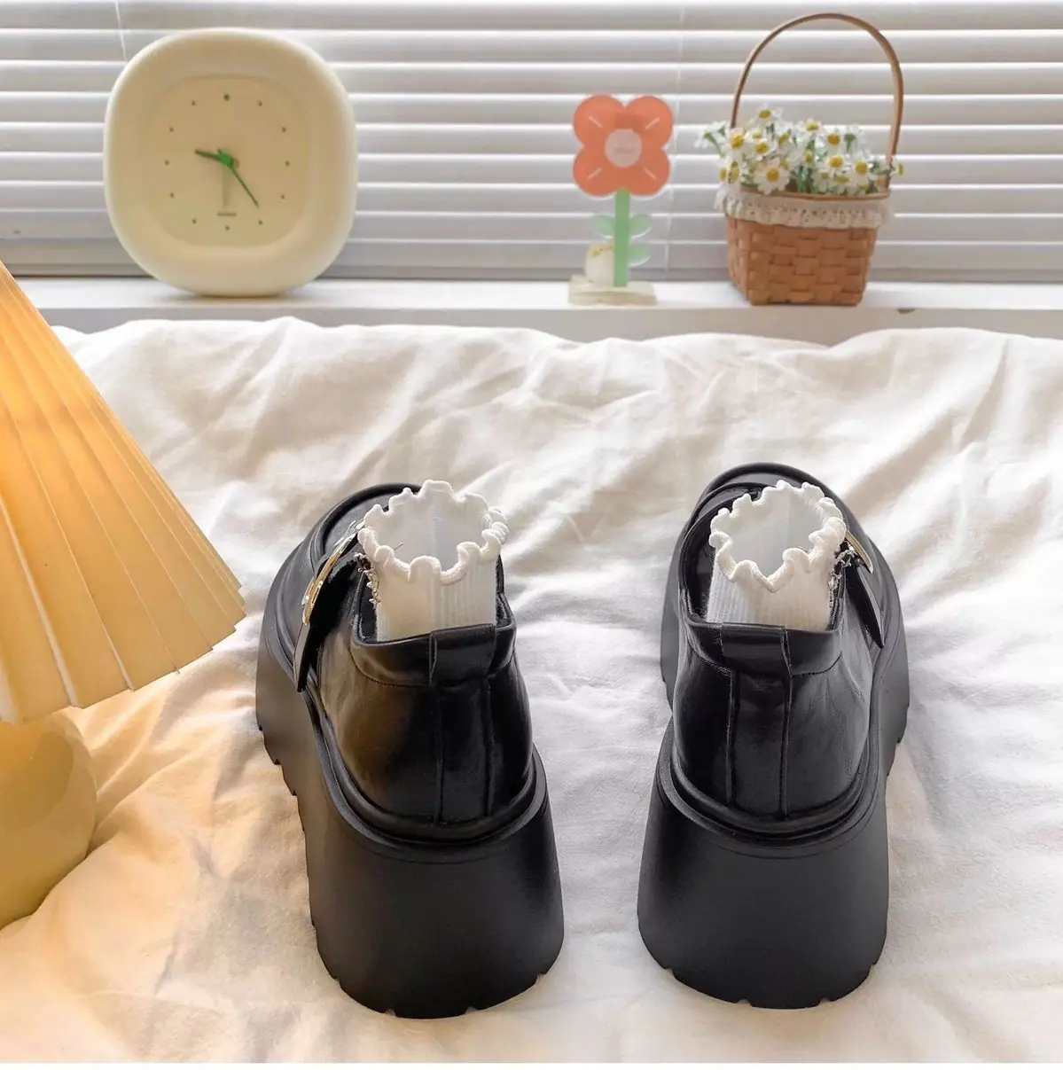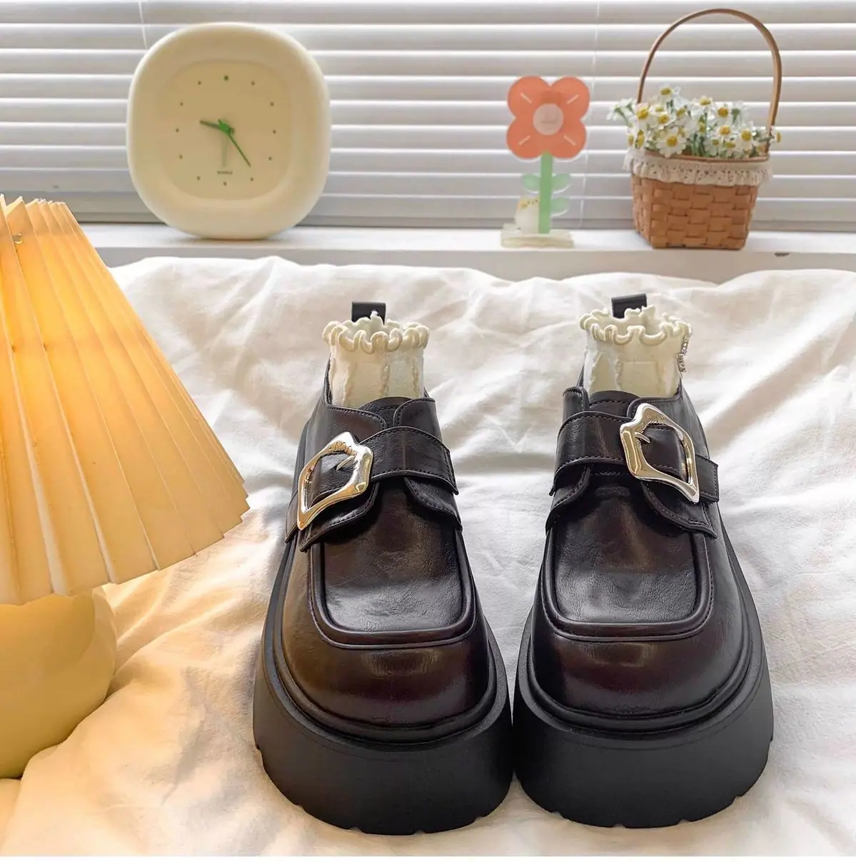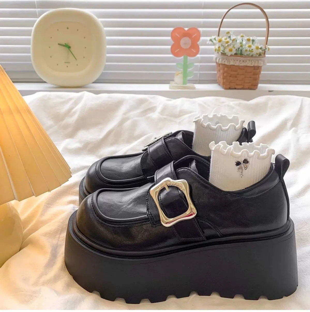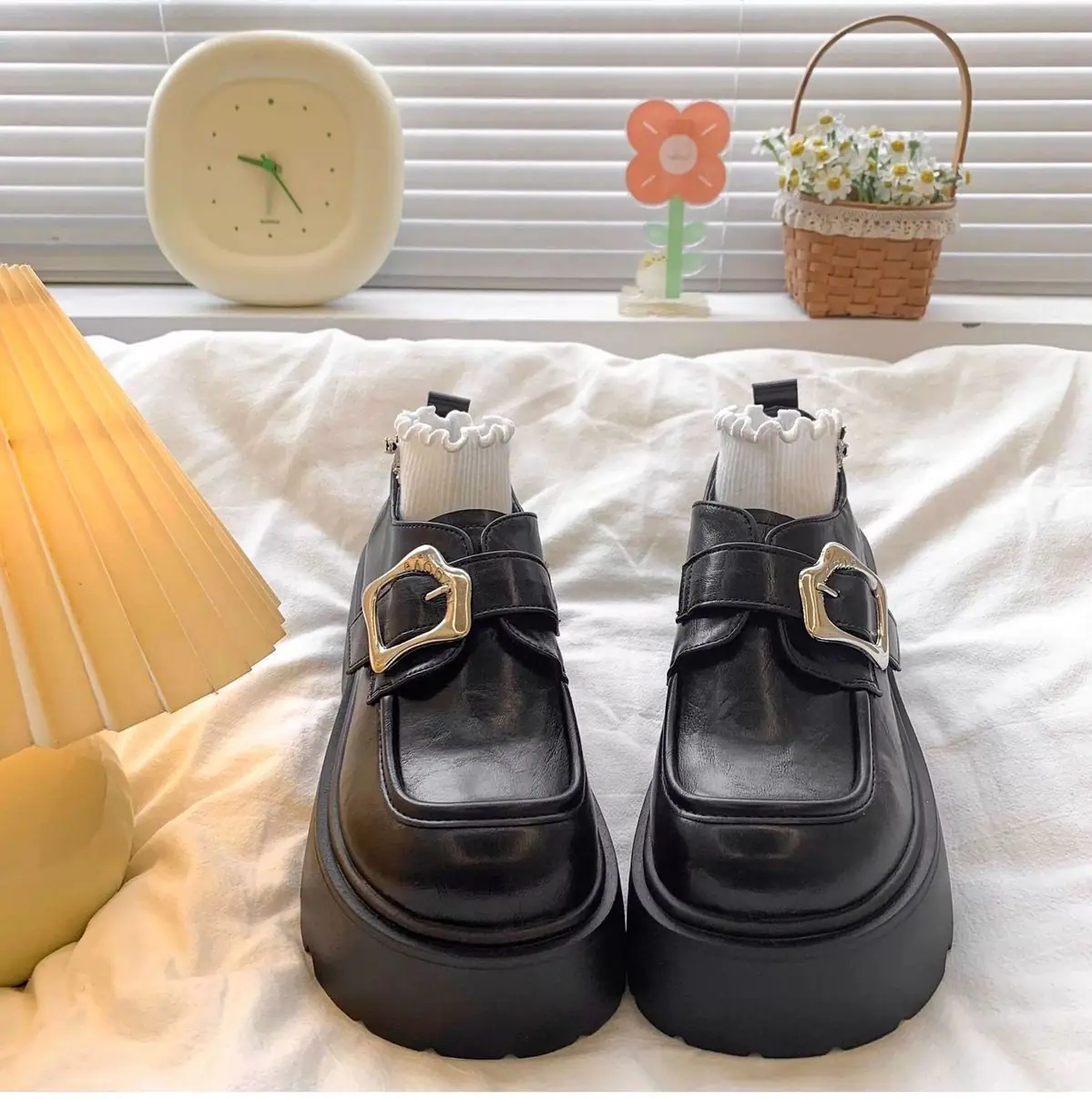 2025 Otoño Nueva Moda Versátil Mocasines de Punta Redonda Retro Plataforma Zapatos Individuales Estilo Británico Suela Gruesa Aumento de Altura Zapatos Pequeños de Cuero