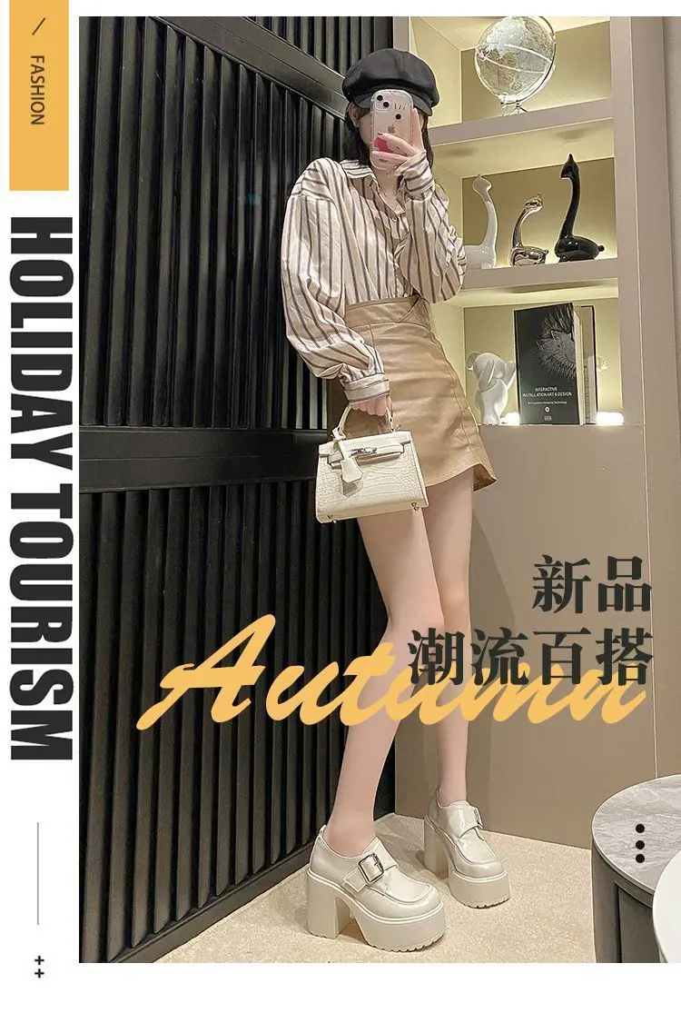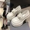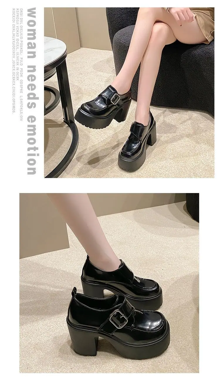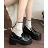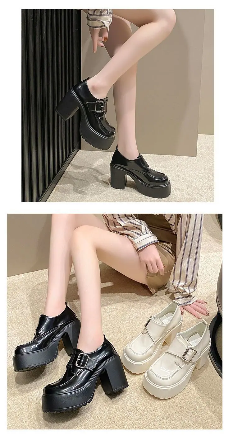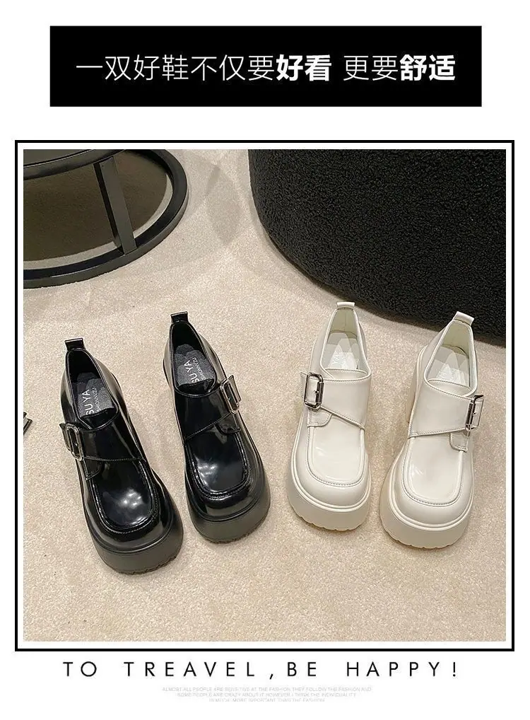 2025 nuevos zapatos de tacón grueso de primavera de cuero pequeño para mujer mocasines versátiles retro franceses suela gruesa tacón alto que aumentan la altura zapatos individuales