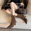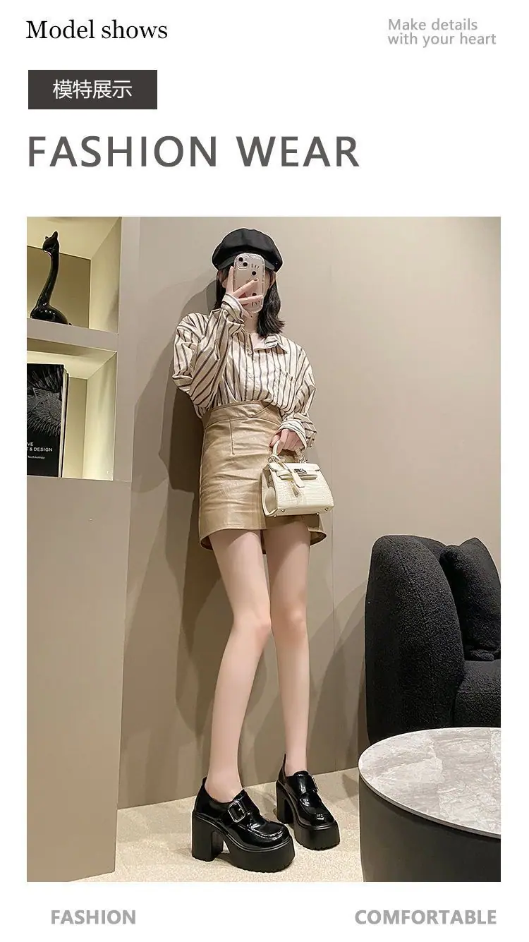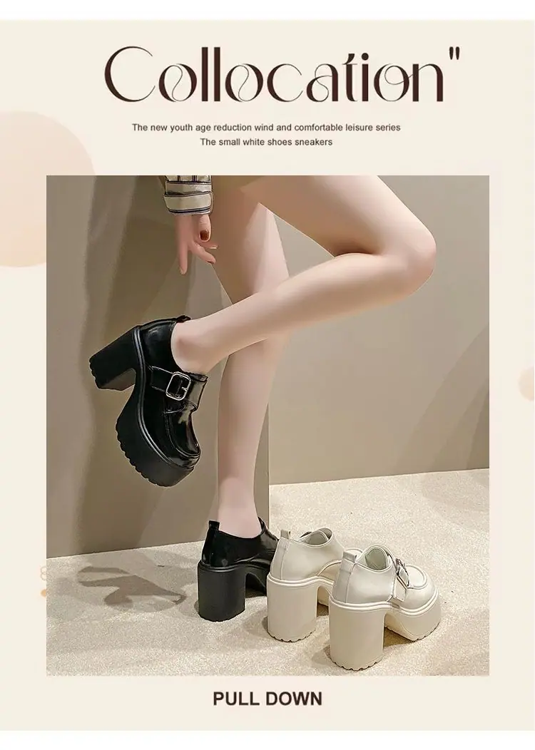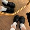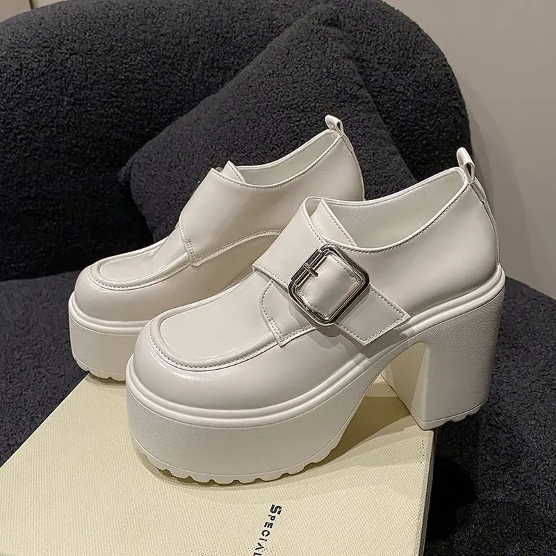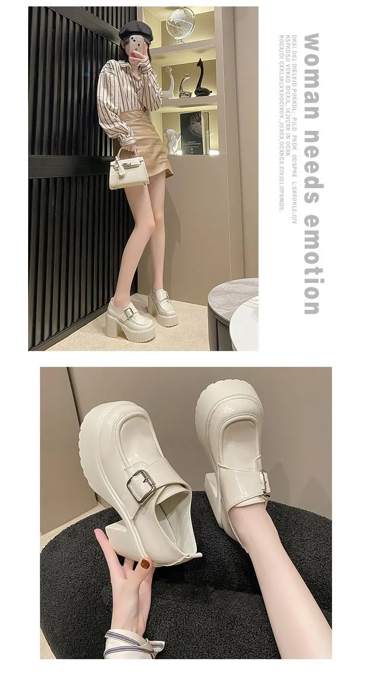 2025 nuevos zapatos de tacón grueso de primavera de cuero pequeño para mujer mocasines versátiles retro franceses suela gruesa tacón alto que aumentan la altura zapatos individuales