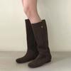Botas Planas de Otoño Nuevas 2025 para Mujer, Botas Altas de Caballero de Tacón Grueso y Punta Redonda, Botas Versátiles por Encima de la Rodilla, Botas de Cuero