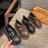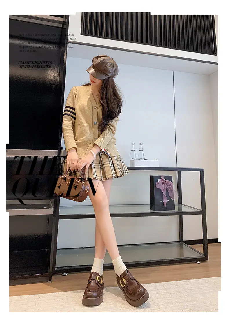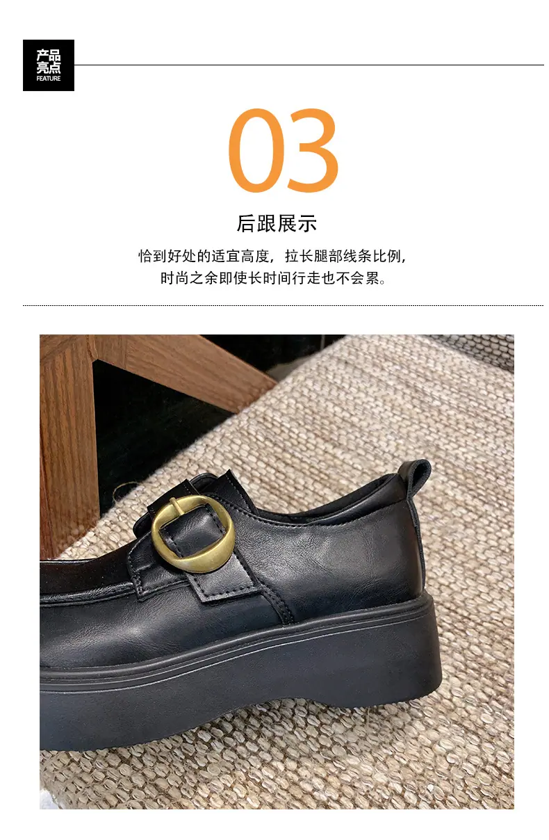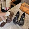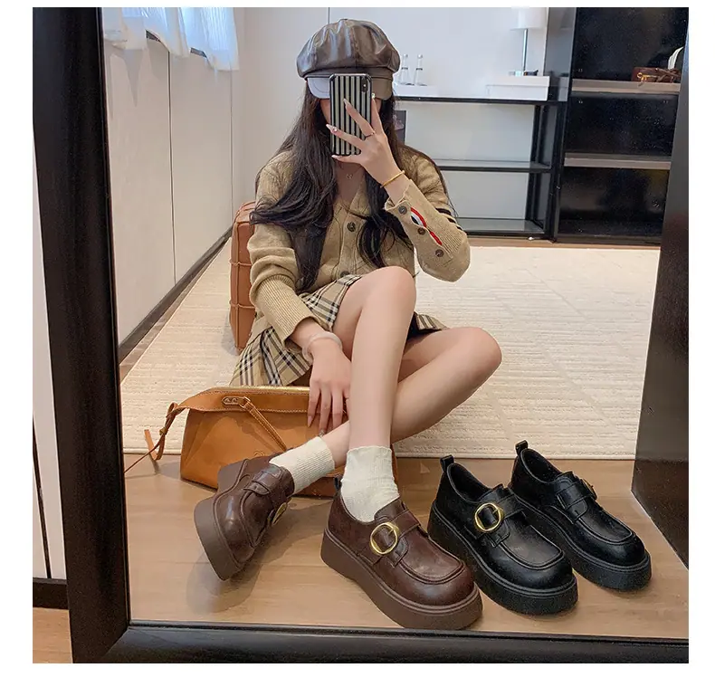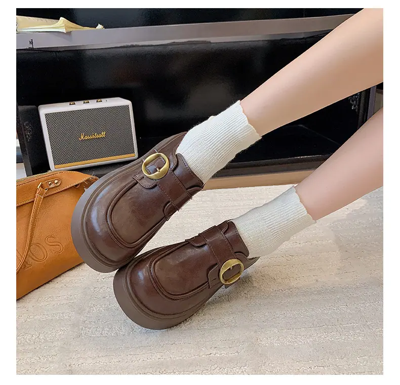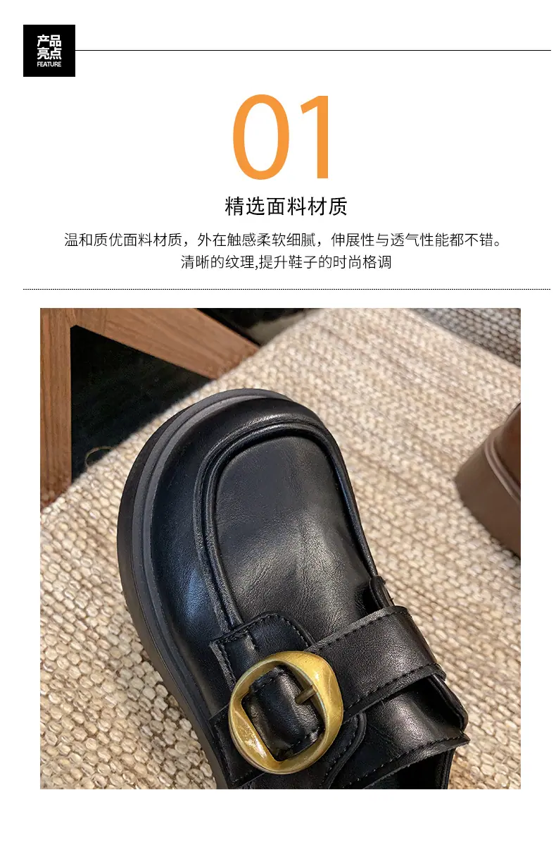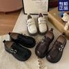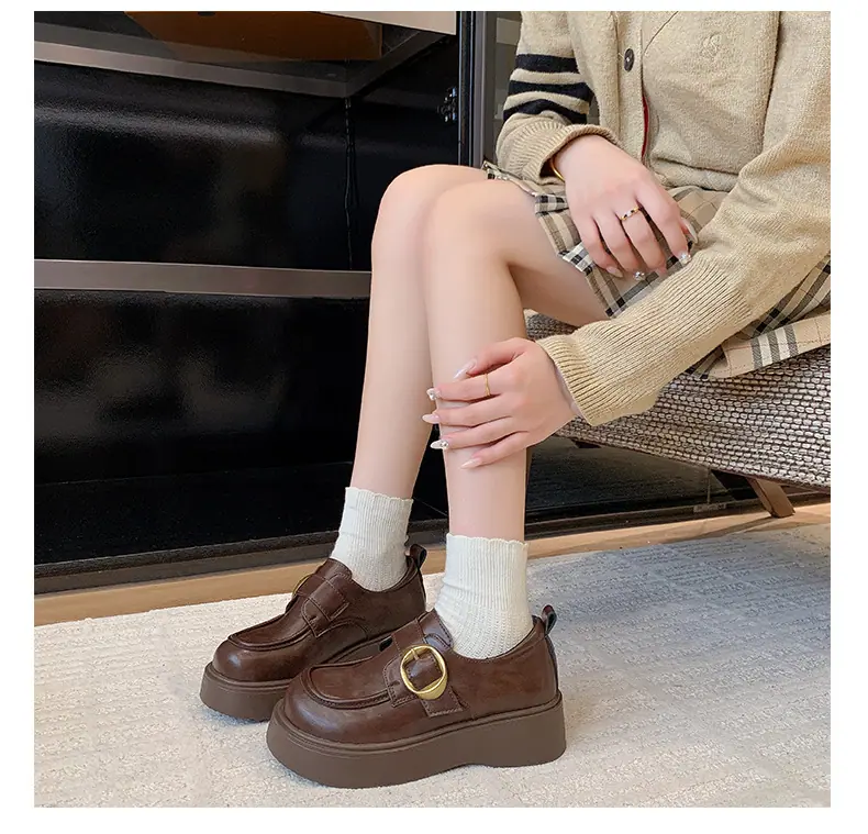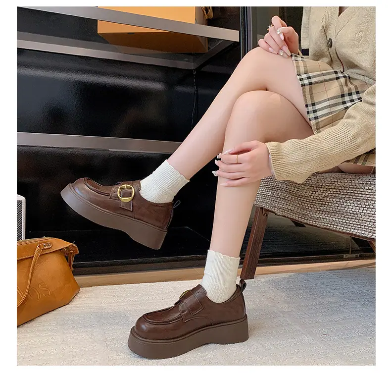 Zapatos pequeños de cuero estilo británico para mujer verano 2025 nuevos plataforma suela gruesa punta redonda versátiles Velcro mocasines negros