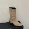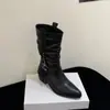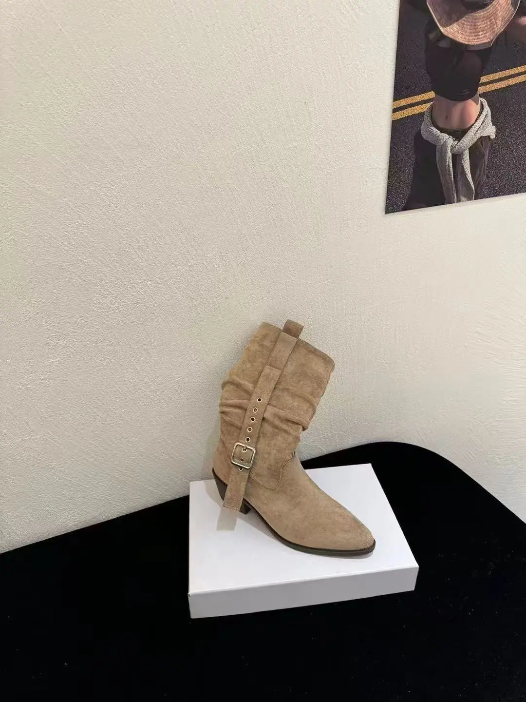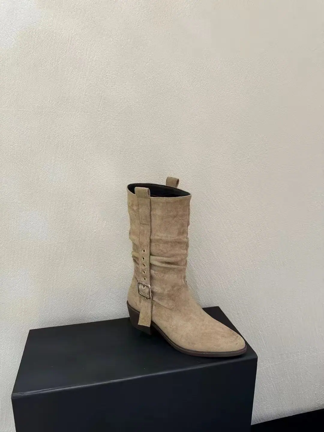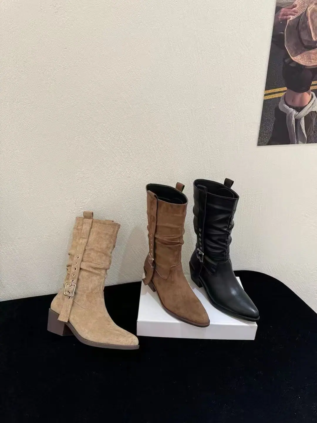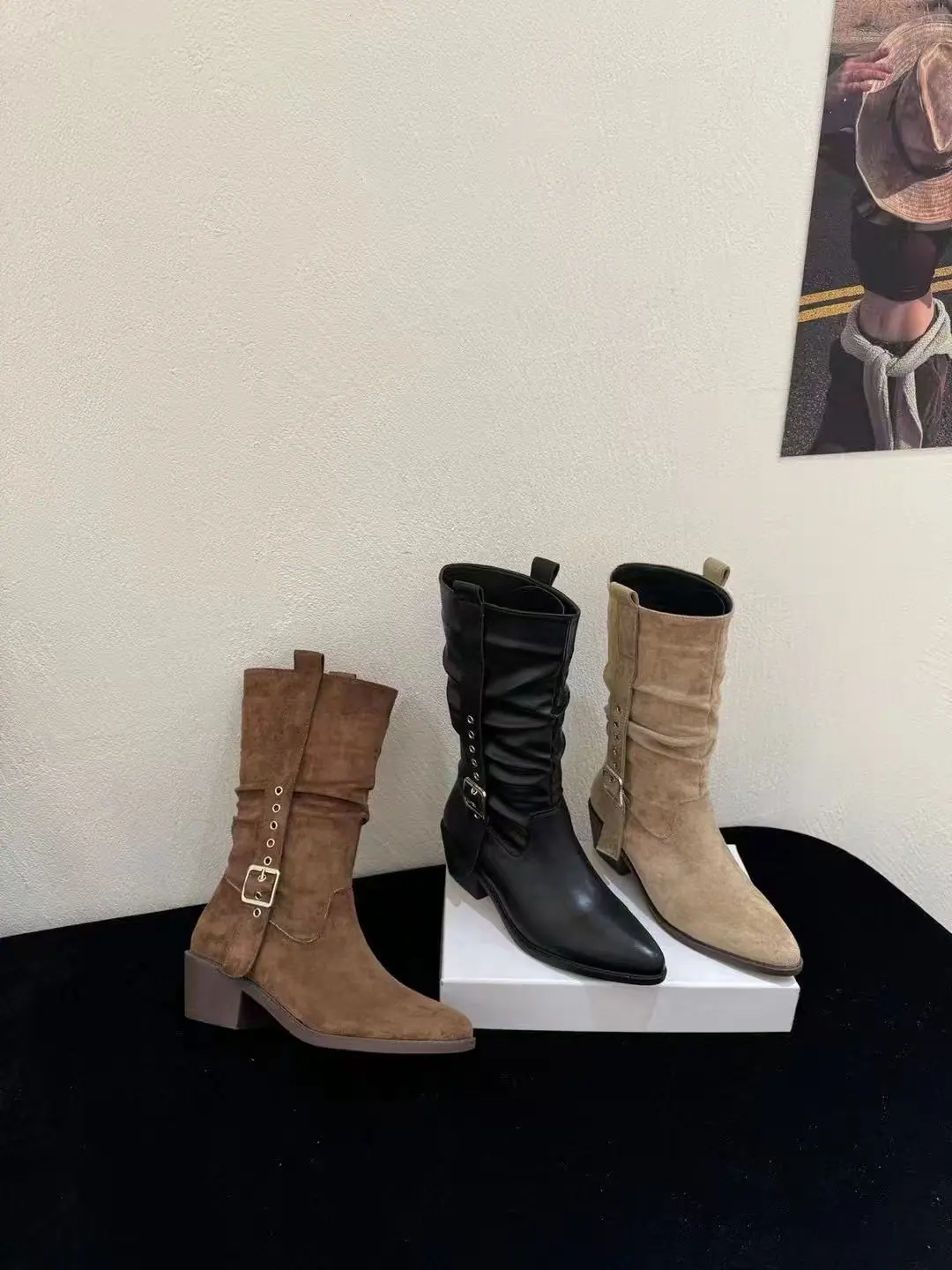 Botines de Punta para Mujer Tacón Grueso Botas Martin 2025 Otoño/Invierno Nuevas Botas de Tacón Alto Retro Francés Botas Vaqueras Occidentales
