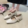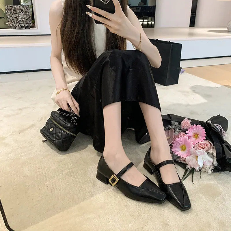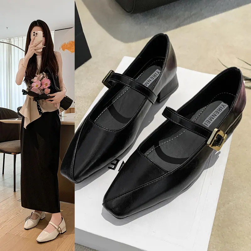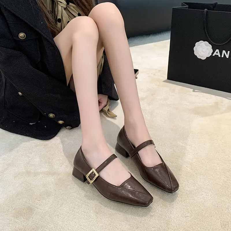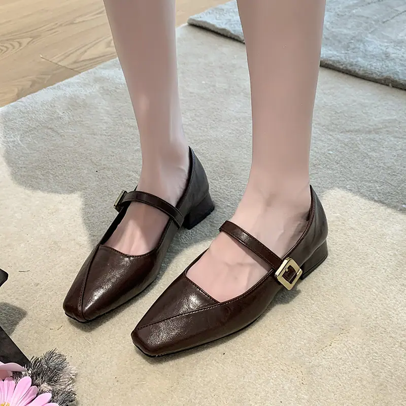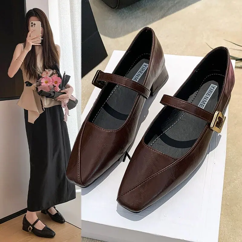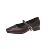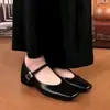 Zapatos Mary Jane de Tacón Grueso con Temperamento de Punta Cuadrada Retro para Mujer 2025 Nuevos de Una Tira con Vestido Escotados Zapatos Individuales Zapatos de Mujer