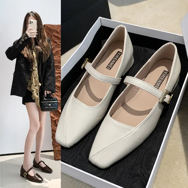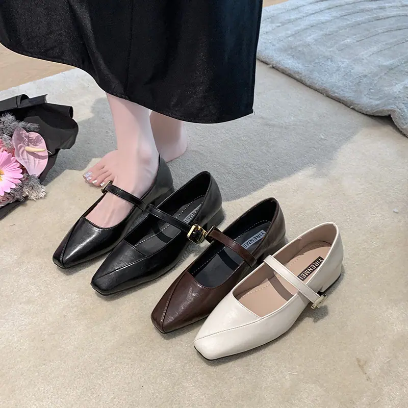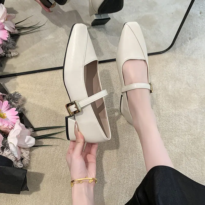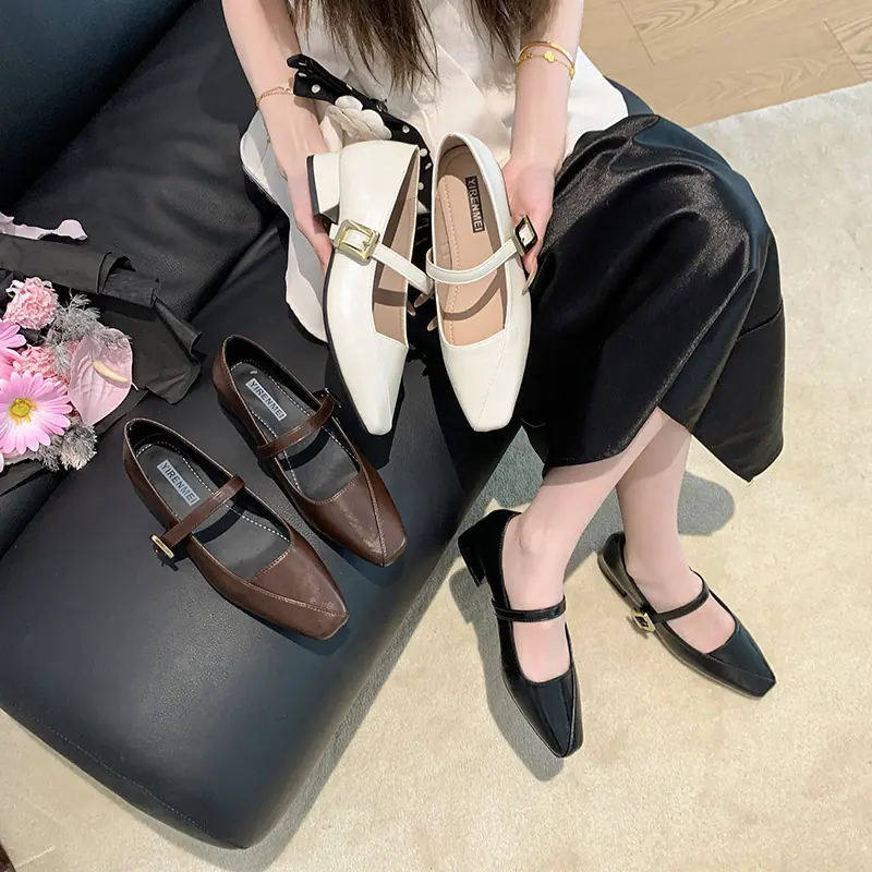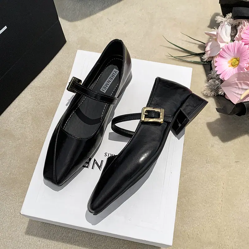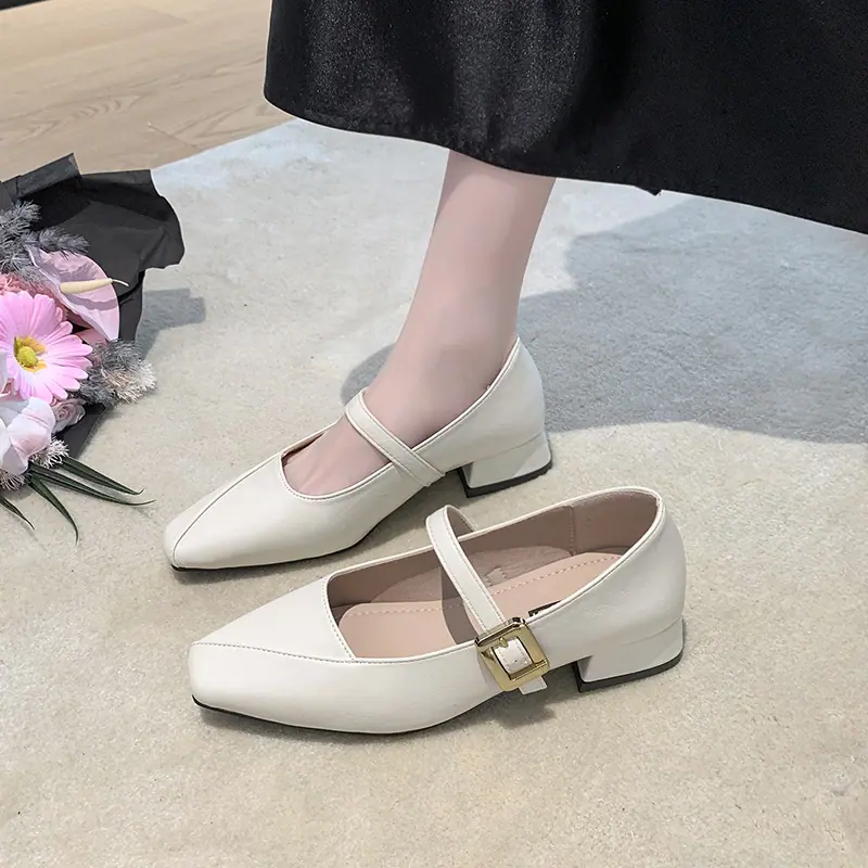 Zapatos Mary Jane de Tacón Grueso con Temperamento de Punta Cuadrada Retro para Mujer 2025 Nuevos de Una Tira con Vestido Escotados Zapatos Individuales Zapatos de Mujer