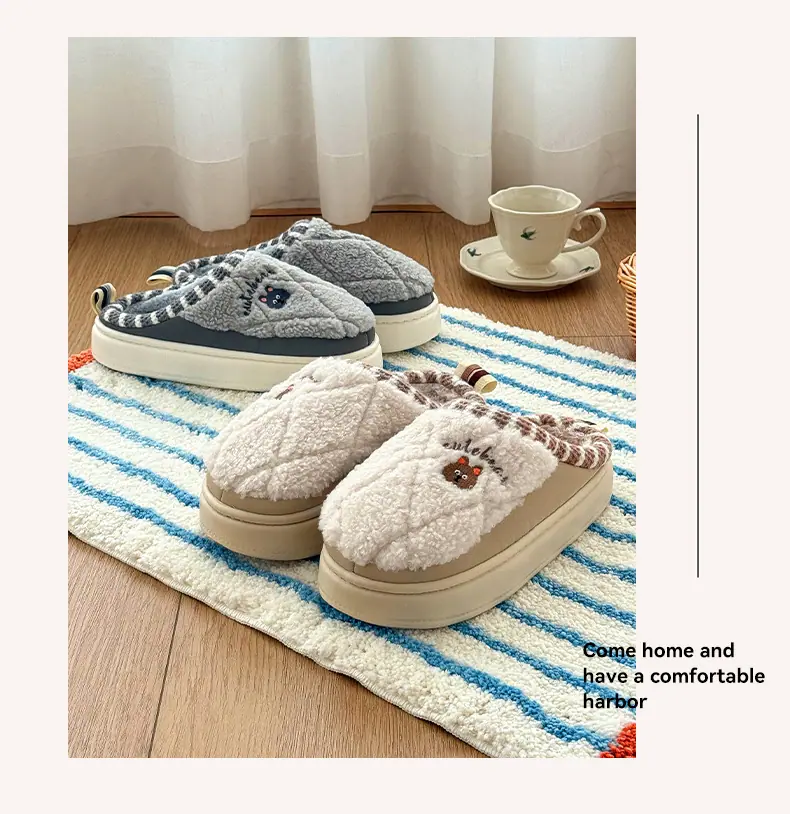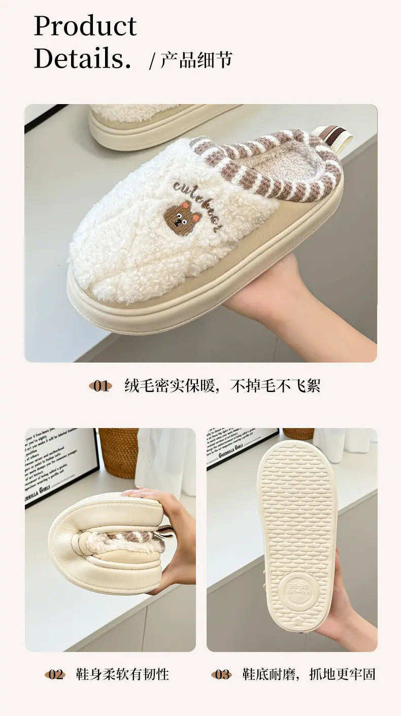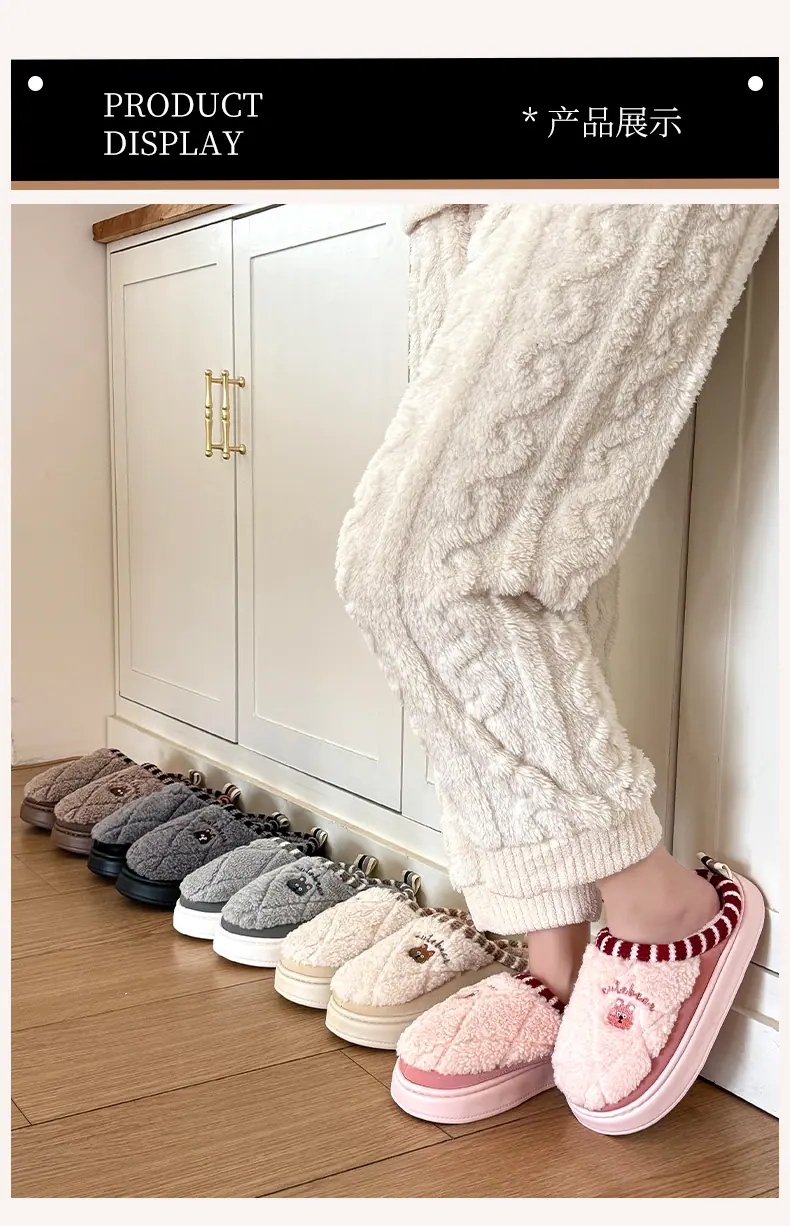 Zapatillas de algodón para mujer con sensación de pisar mierda, invierno, nuevas para el hogar, para pareja, de suela gruesa, cálidas, antideslizantes, para interior, domésticas, zapatillas de felpa para mujer