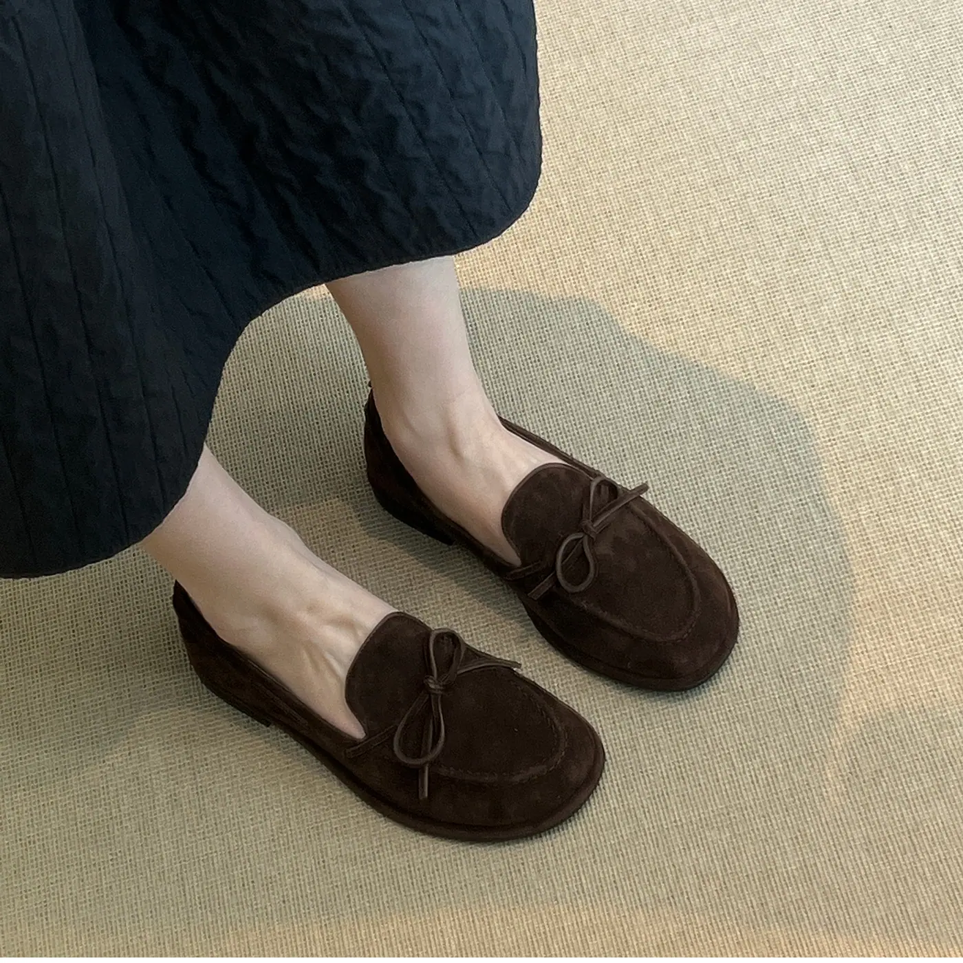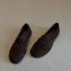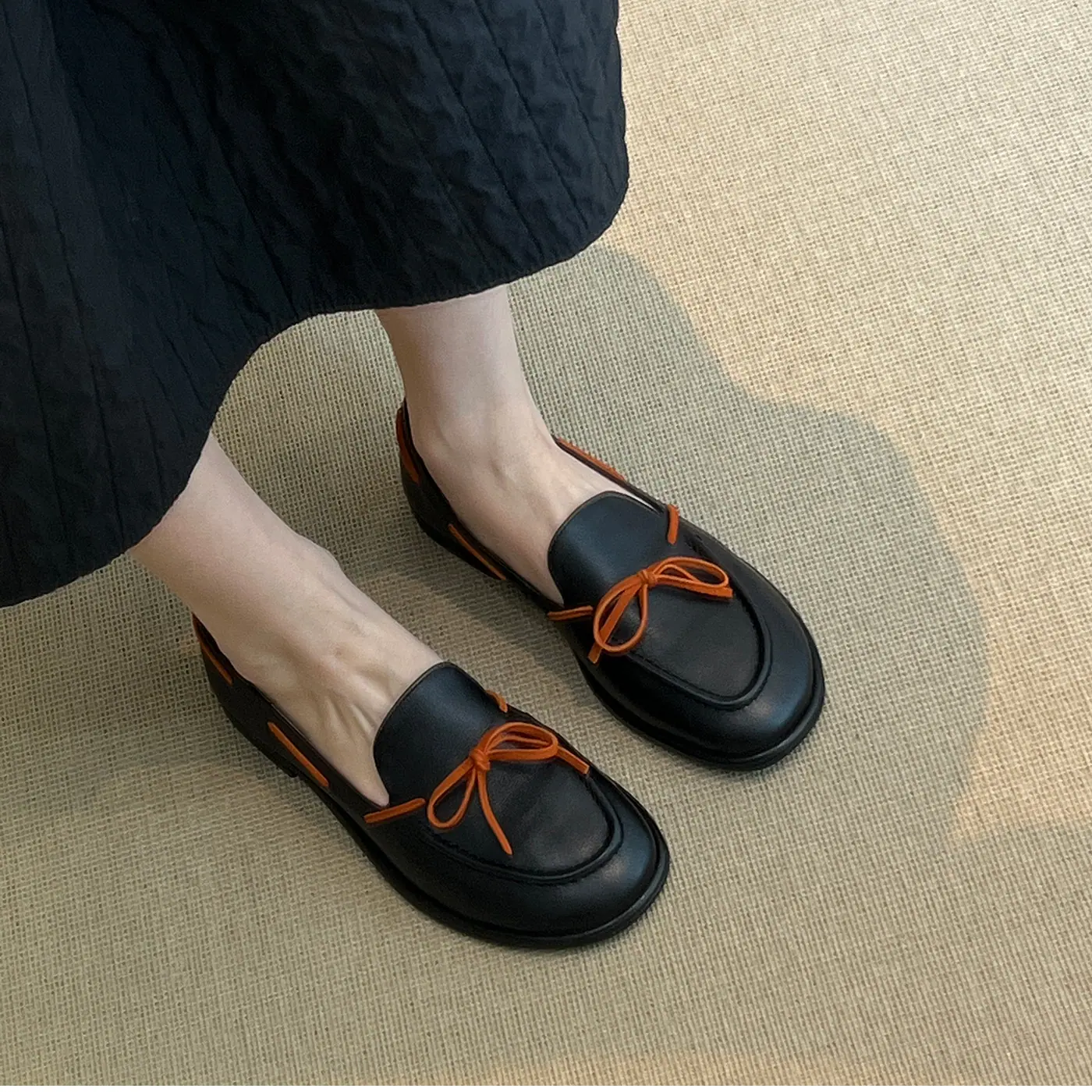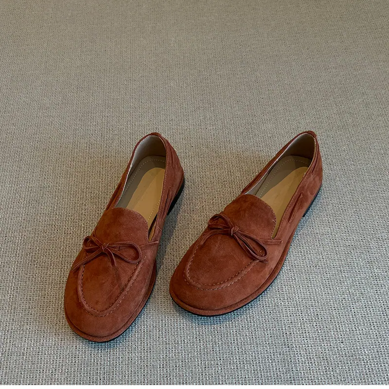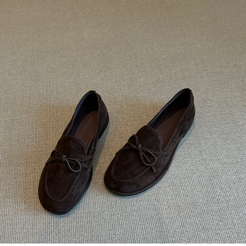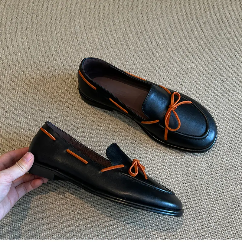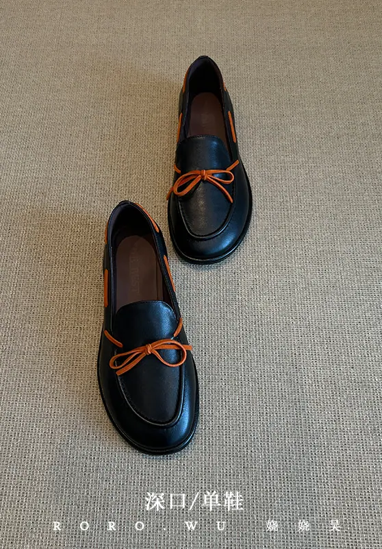 Zapatos sencillos de punta redonda retro franceses con lazo plano para mujer, cómodos, escotados, negros, versátiles, de meter, para ir al trabajo, zapatos pequeños de piel
