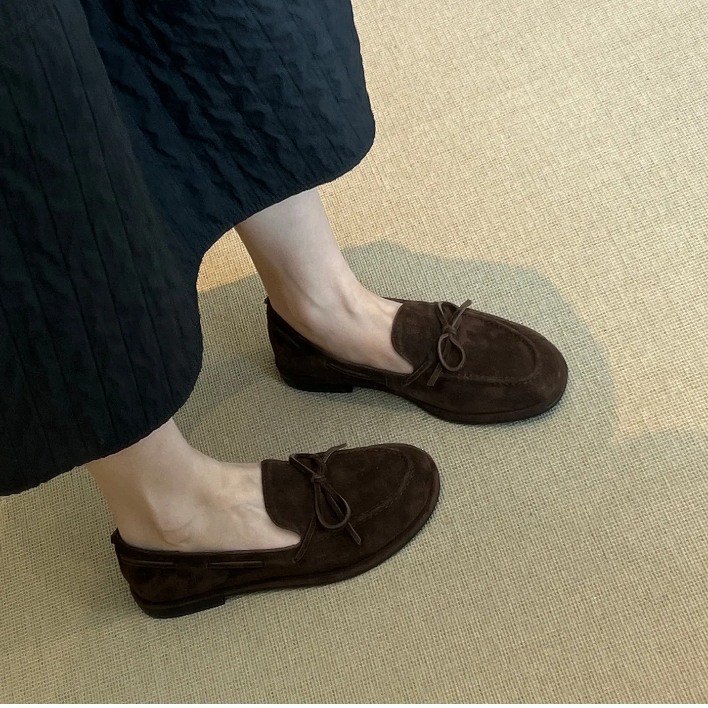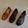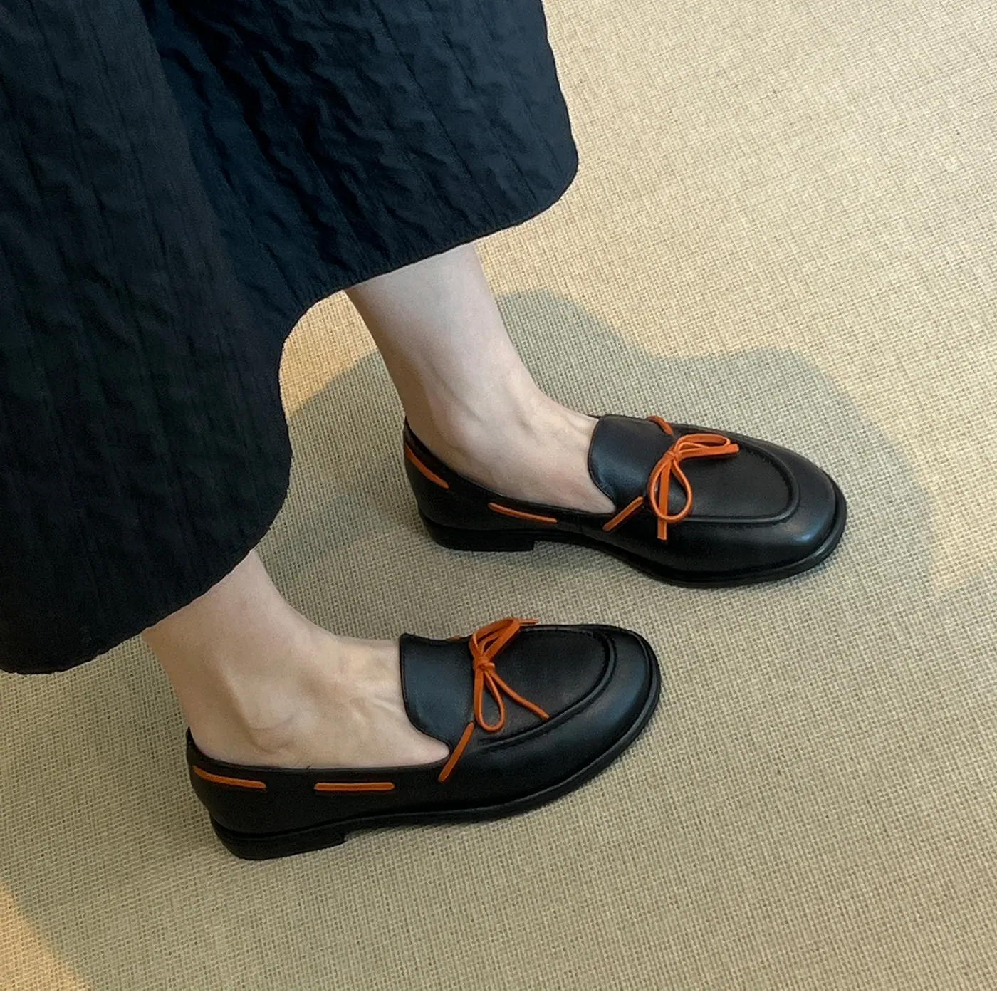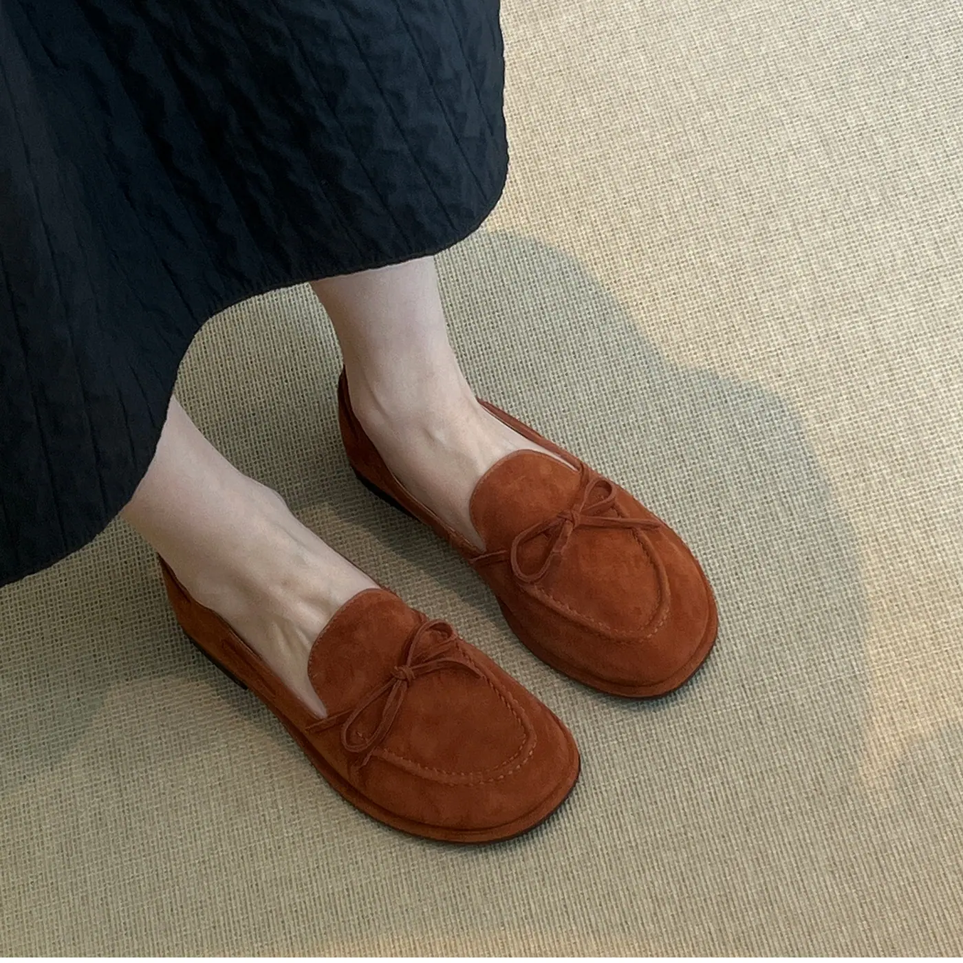 Zapatos sencillos de punta redonda retro franceses con lazo plano para mujer, cómodos, escotados, negros, versátiles, de meter, para ir al trabajo, zapatos pequeños de piel