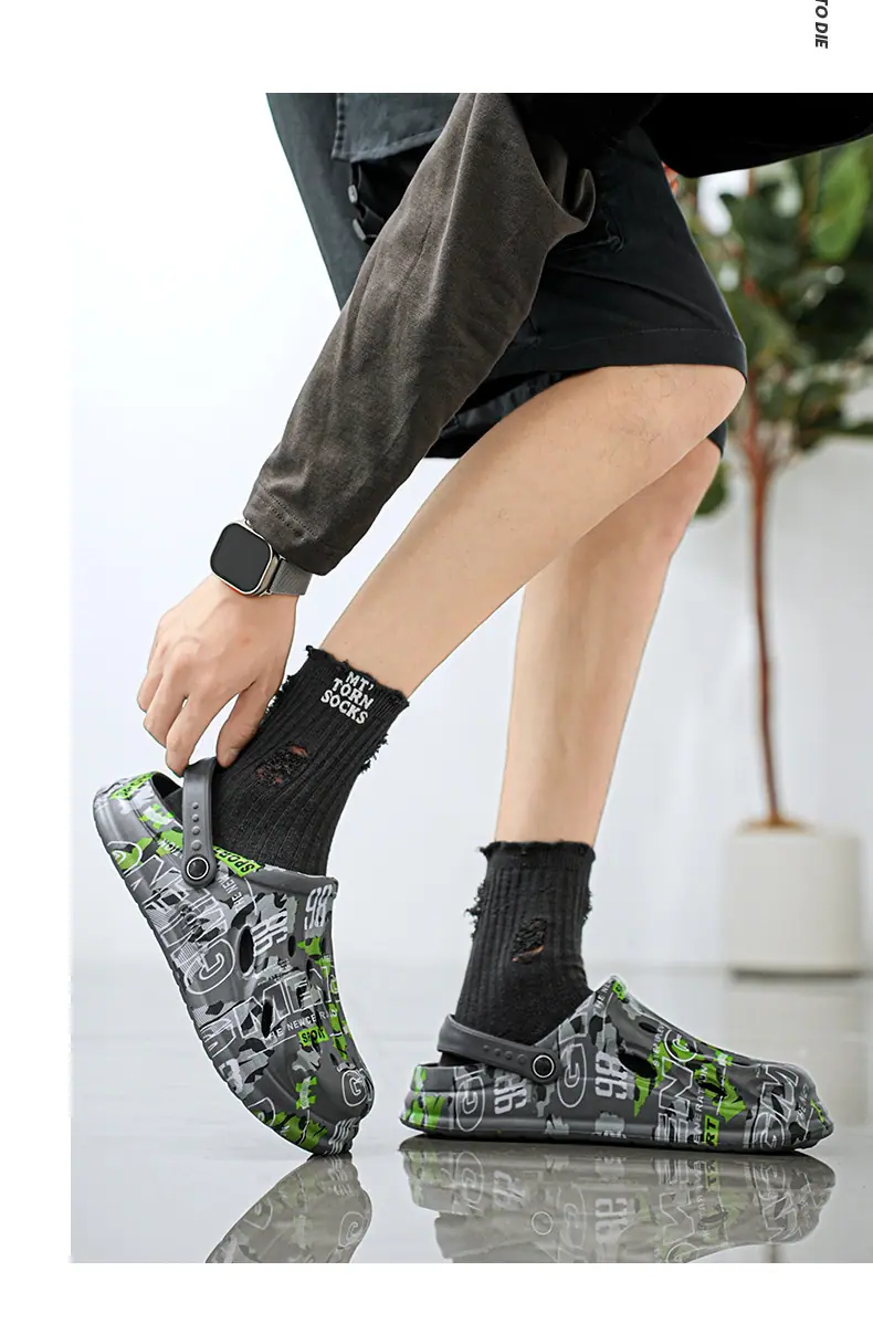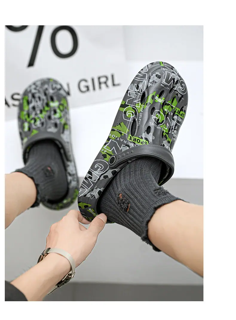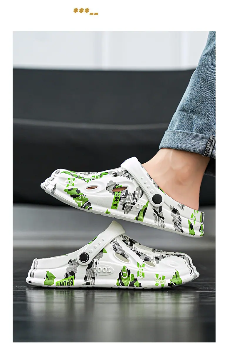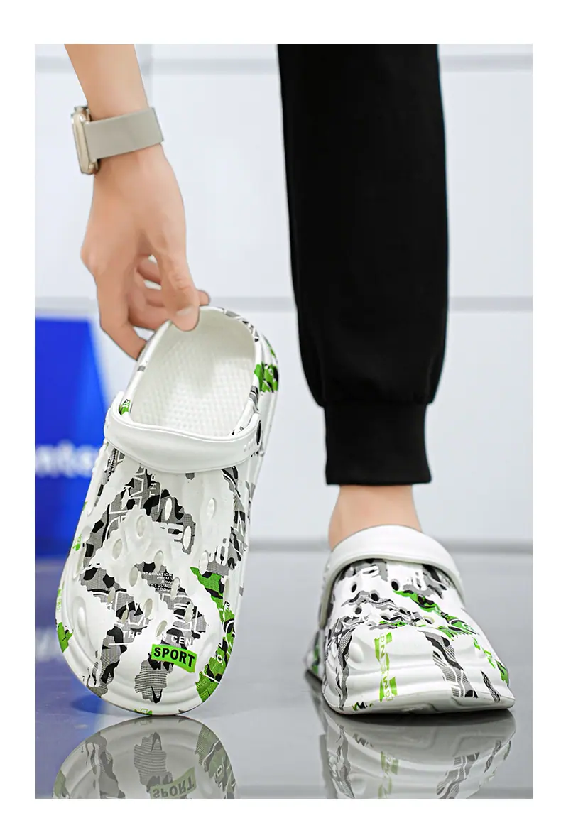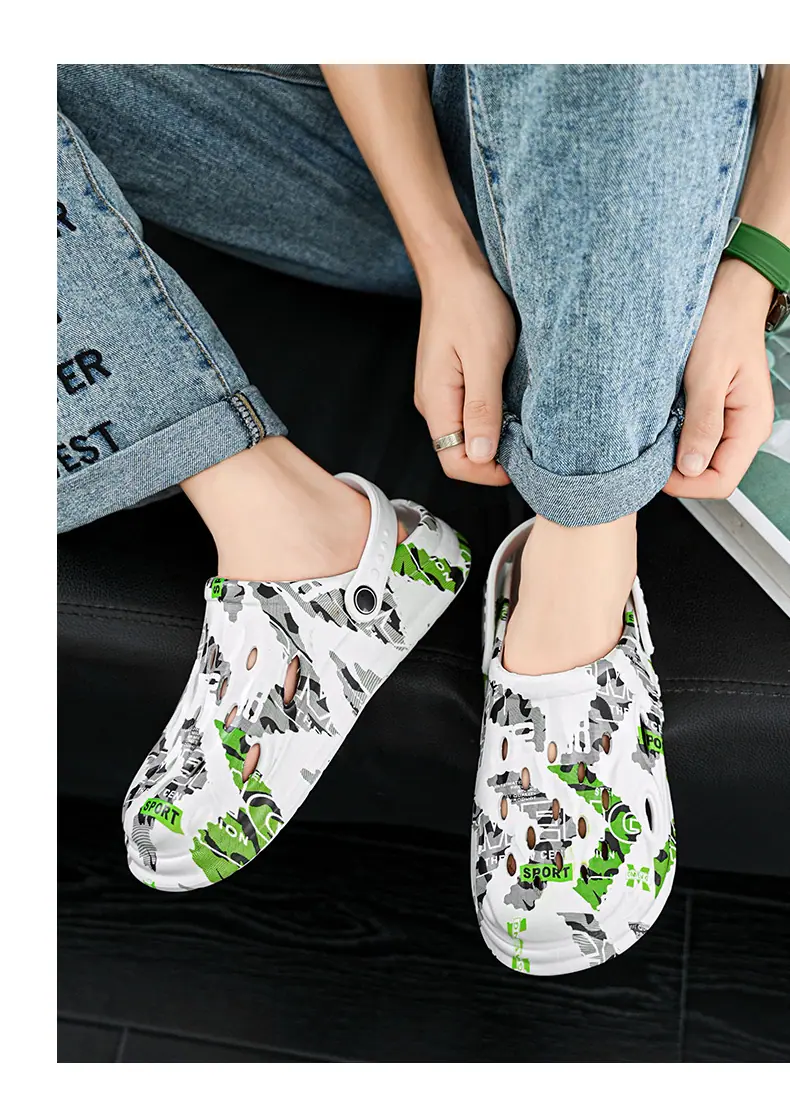 Zapatos de agujeros para hombre verano de moda nuevo suela gruesa resistente al desgaste deportivos transpirables sandalias playa zapatillas de hombre