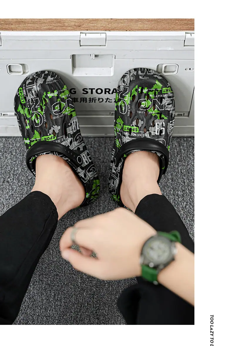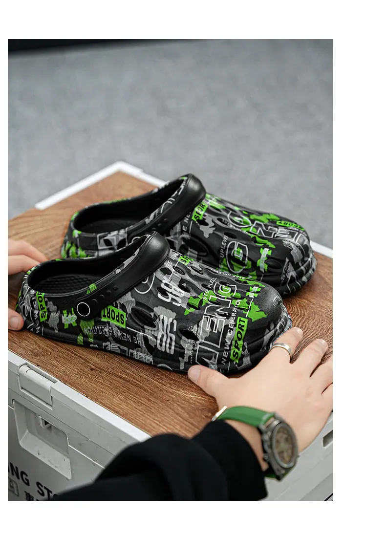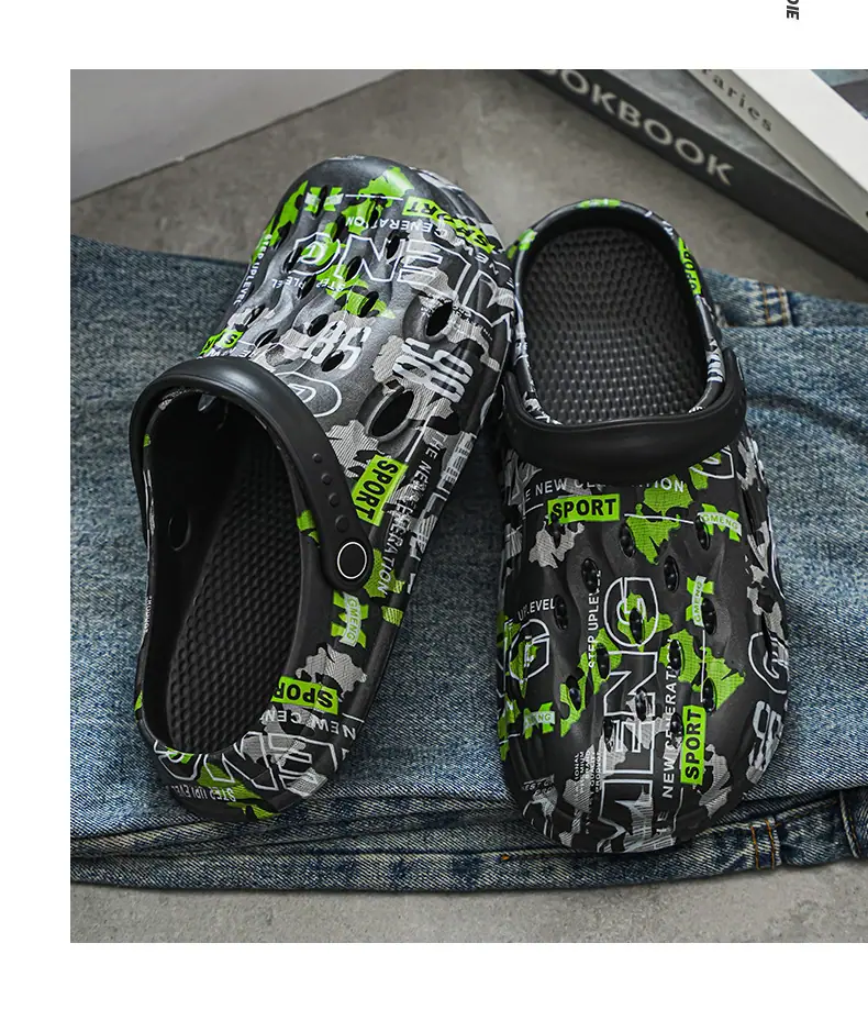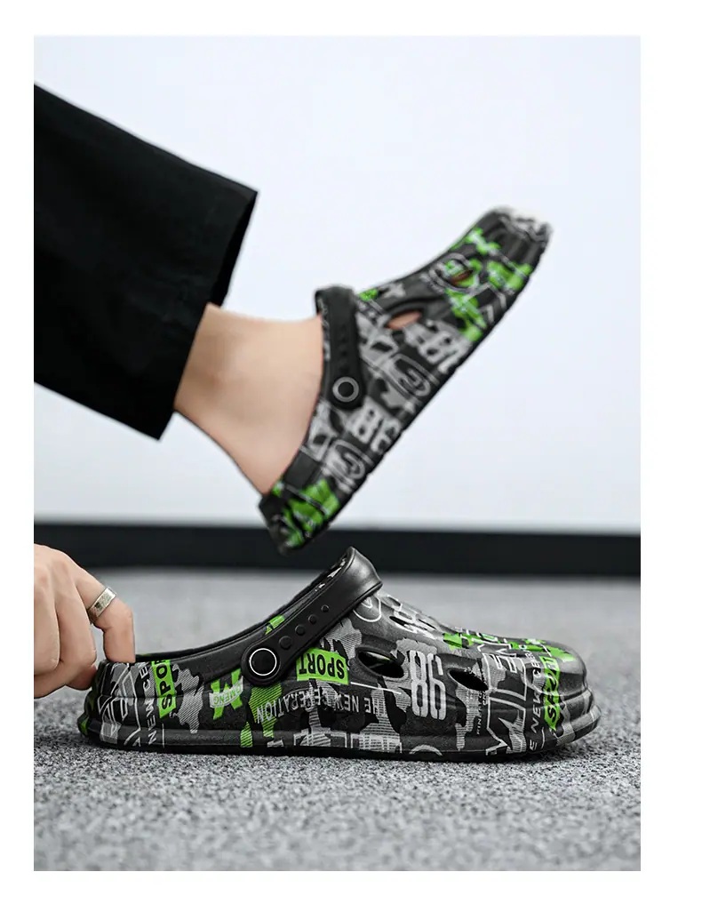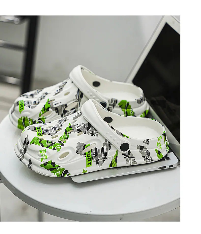 Zapatos de agujeros para hombre verano de moda nuevo suela gruesa resistente al desgaste deportivos transpirables sandalias playa zapatillas de hombre