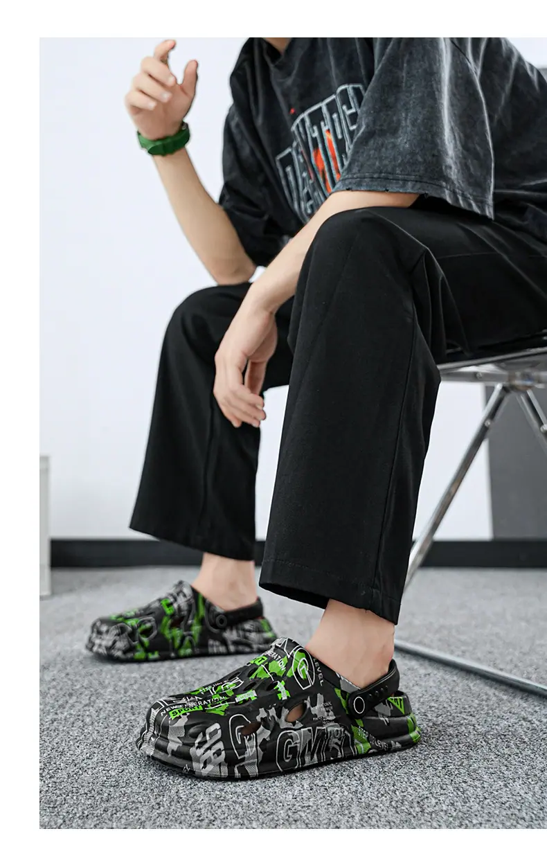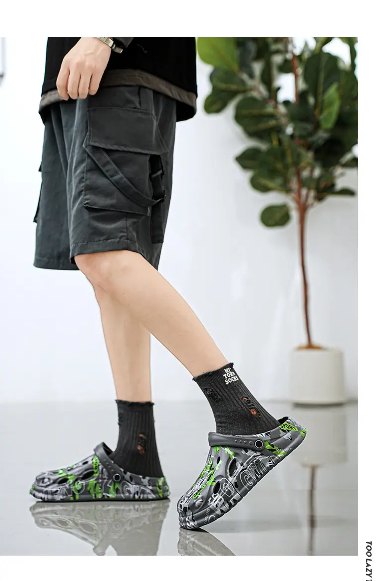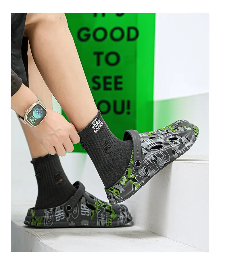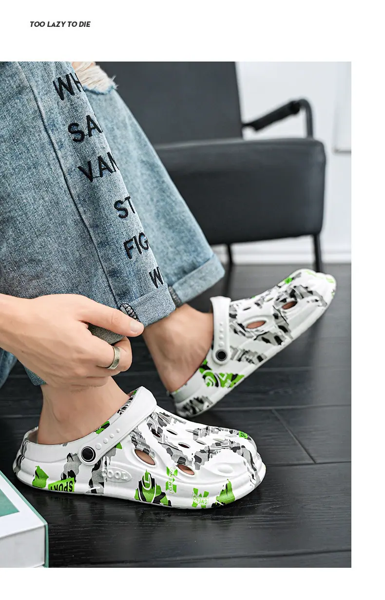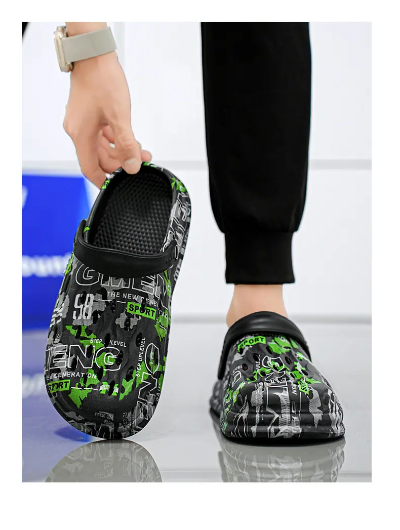 Zapatos de agujeros para hombre verano de moda nuevo suela gruesa resistente al desgaste deportivos transpirables sandalias playa zapatillas de hombre