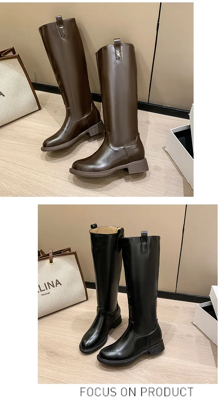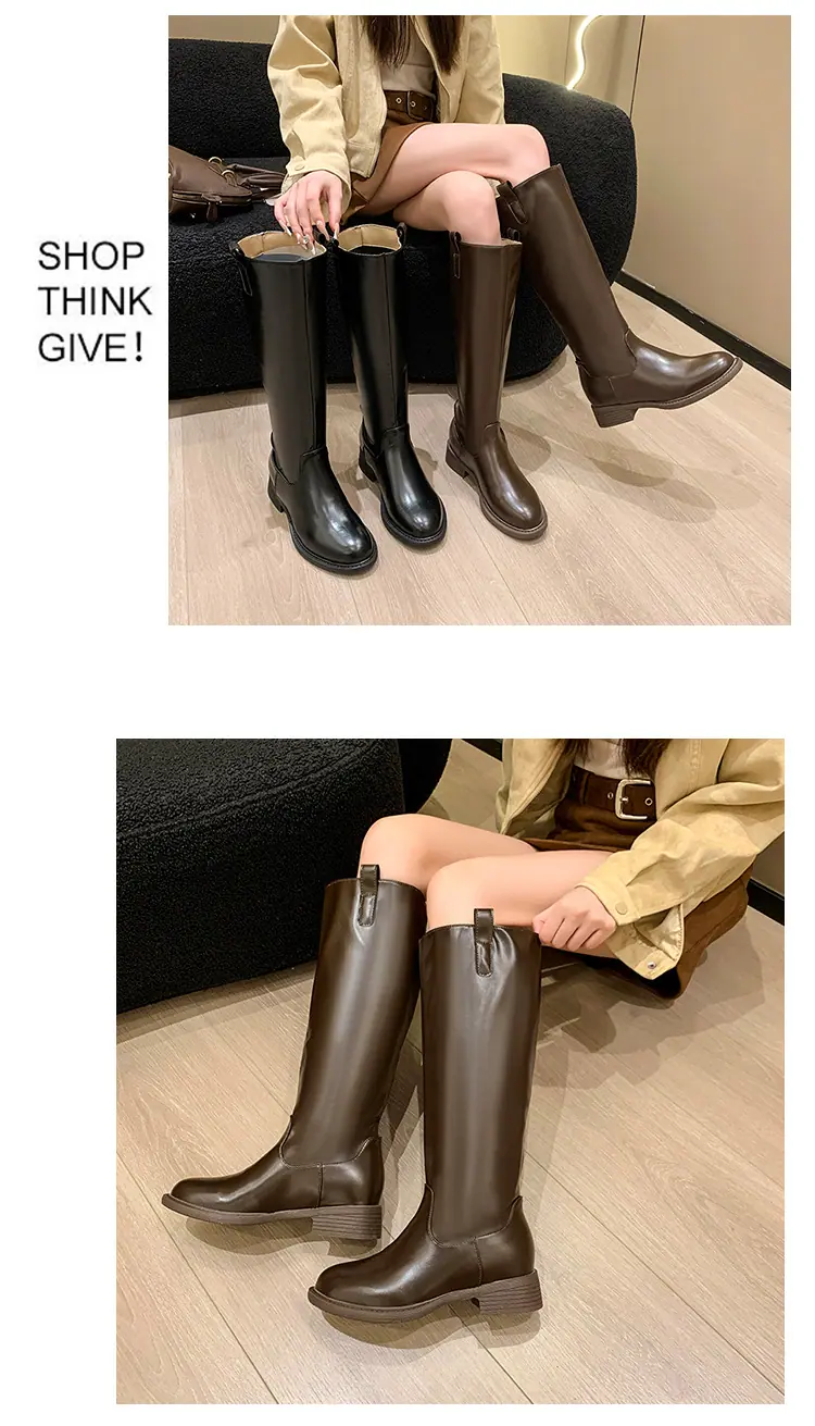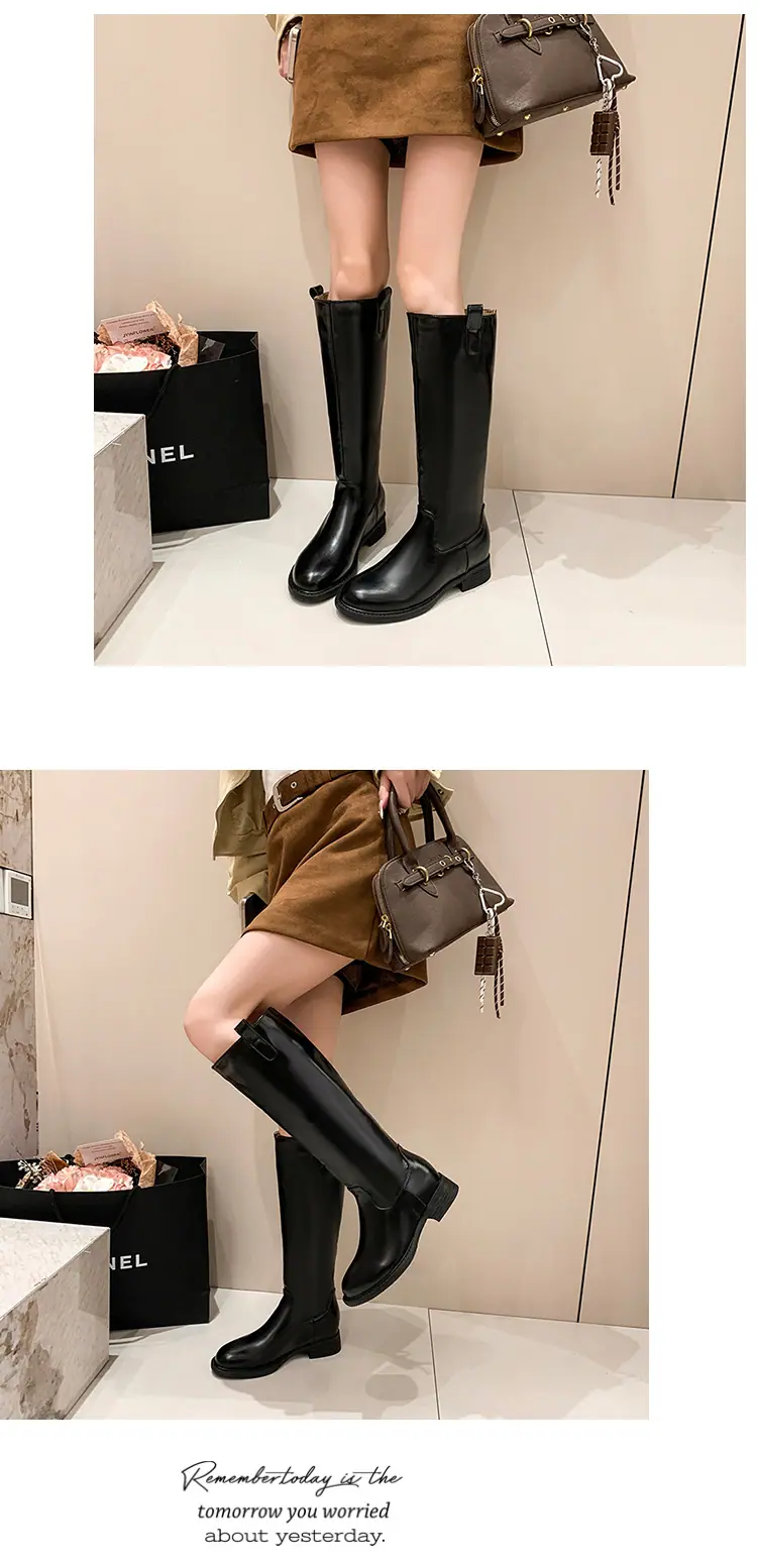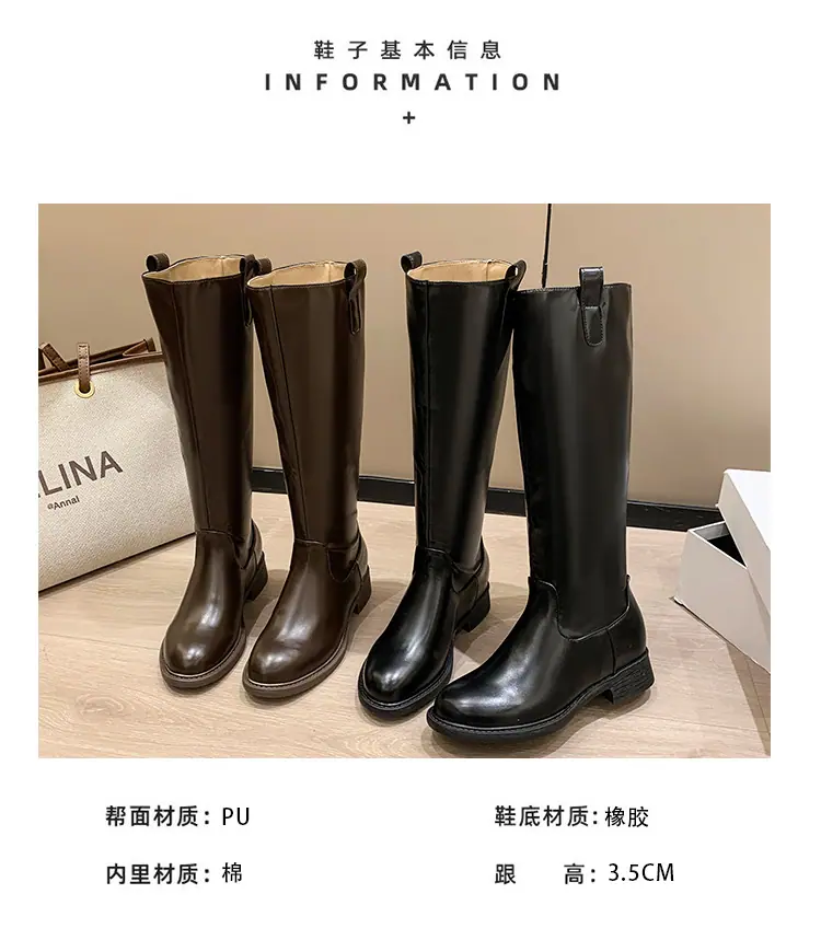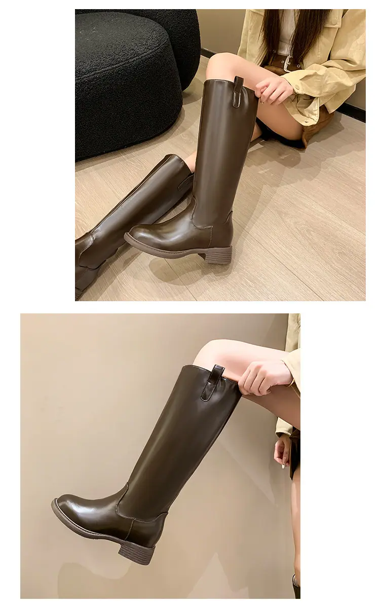 Botas planas hasta la rodilla de tacón grueso para mujer 2025 nuevo otoño e invierno punta redonda negras caña alta por encima de la rodilla adelgazantes tipo caballero botas largas