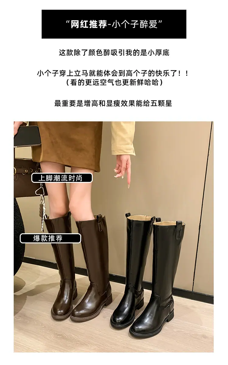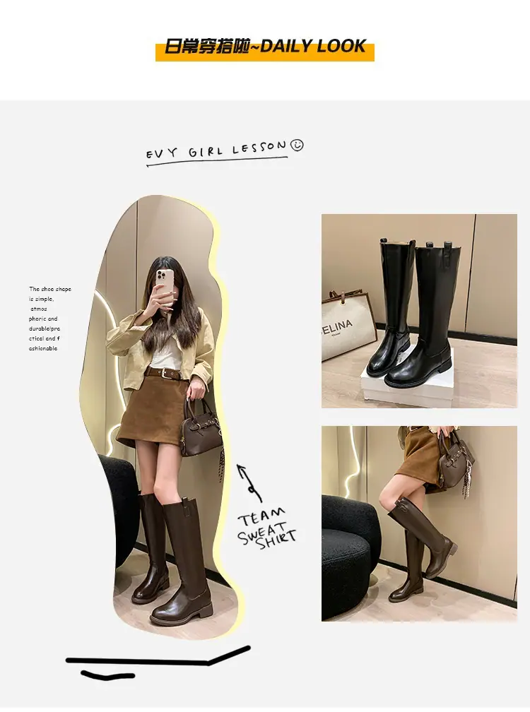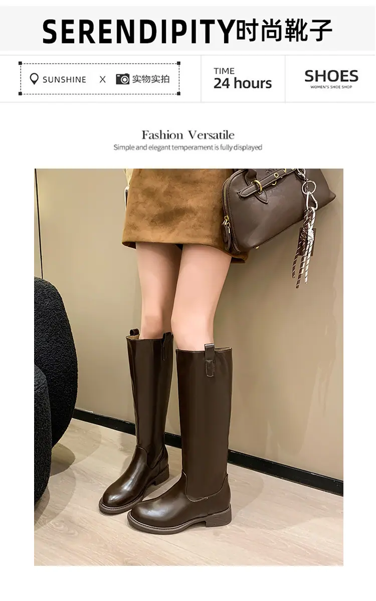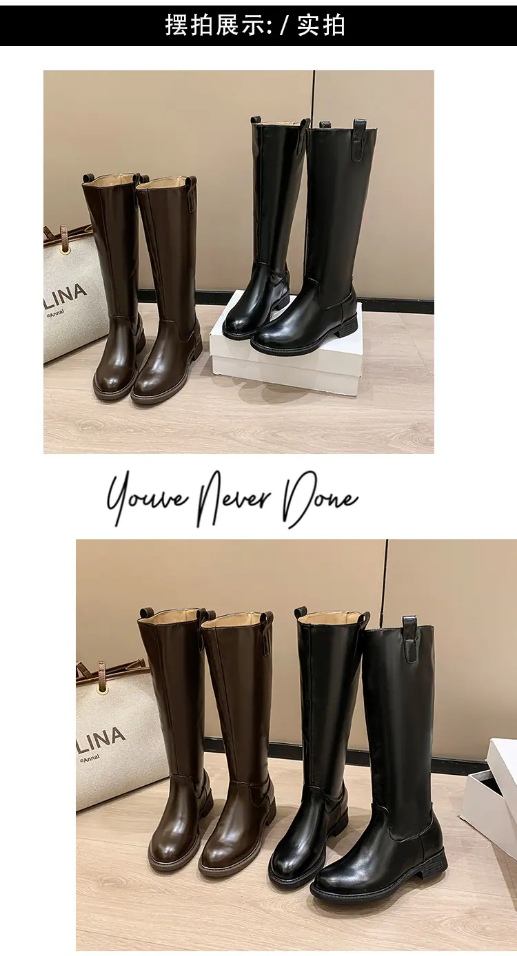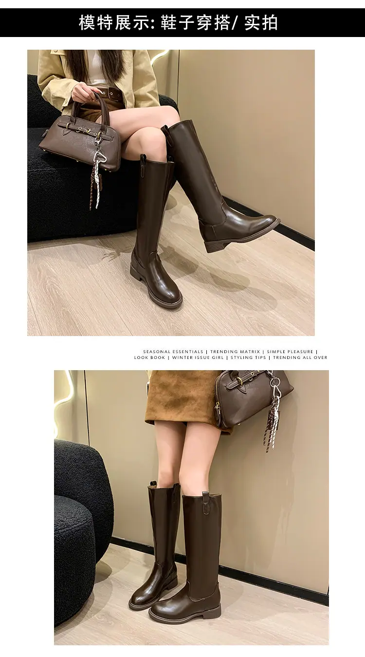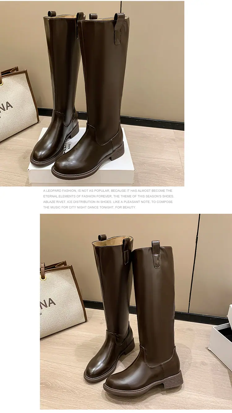 Botas planas hasta la rodilla de tacón grueso para mujer 2025 nuevo otoño e invierno punta redonda negras caña alta por encima de la rodilla adelgazantes tipo caballero botas largas