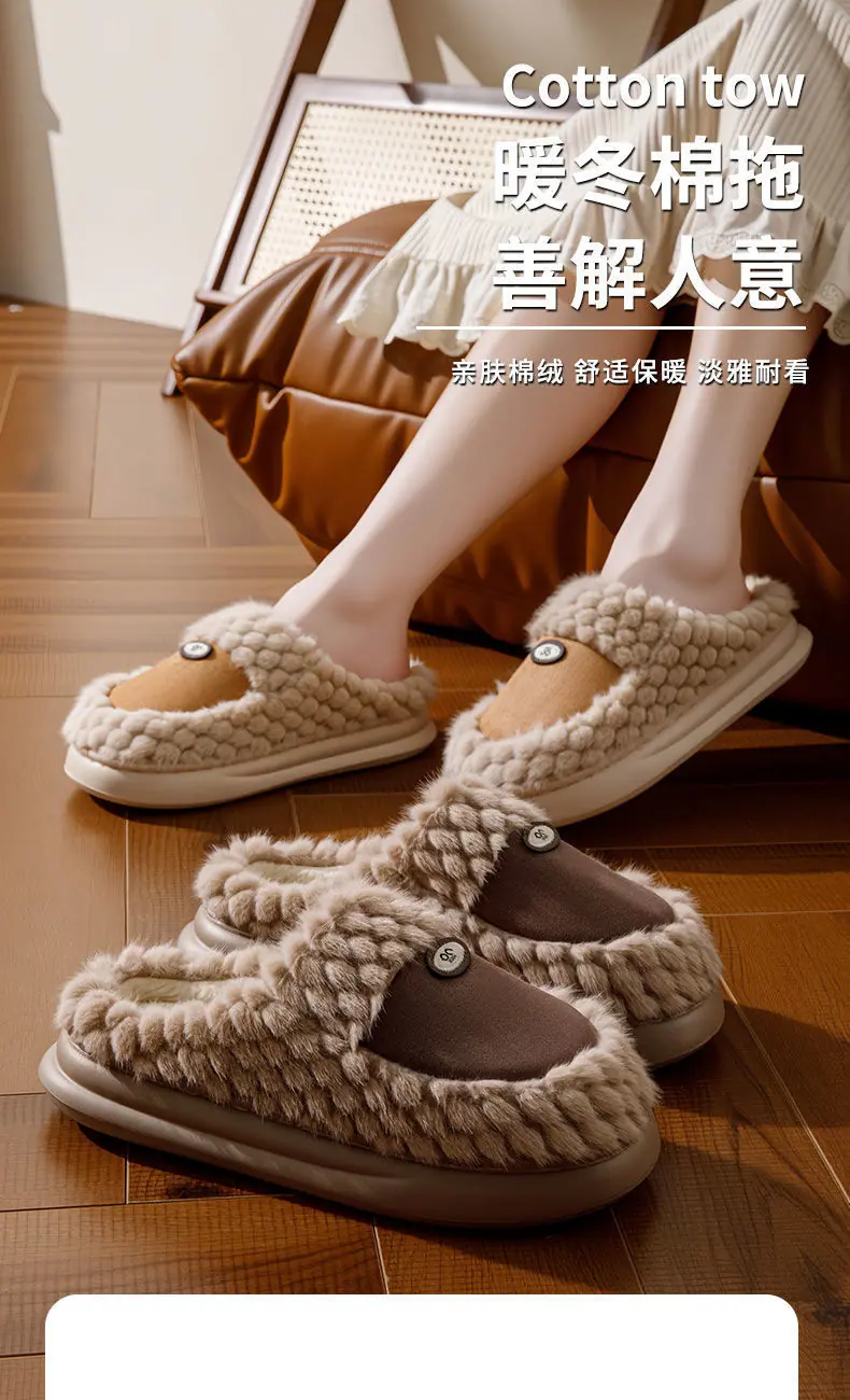 Otoño e invierno nuevo hogar zapatillas de algodón engrosadas moda casual zapatillas de felpa interior versátil exterior cálidas zapatillas de algodón