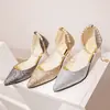 Zapatos de Tacón Alto de Punta Estilo Francés 2025 Verano Nuevo Versión Coreana Boca Baja Versátil Slip-On con Correa de Hebilla