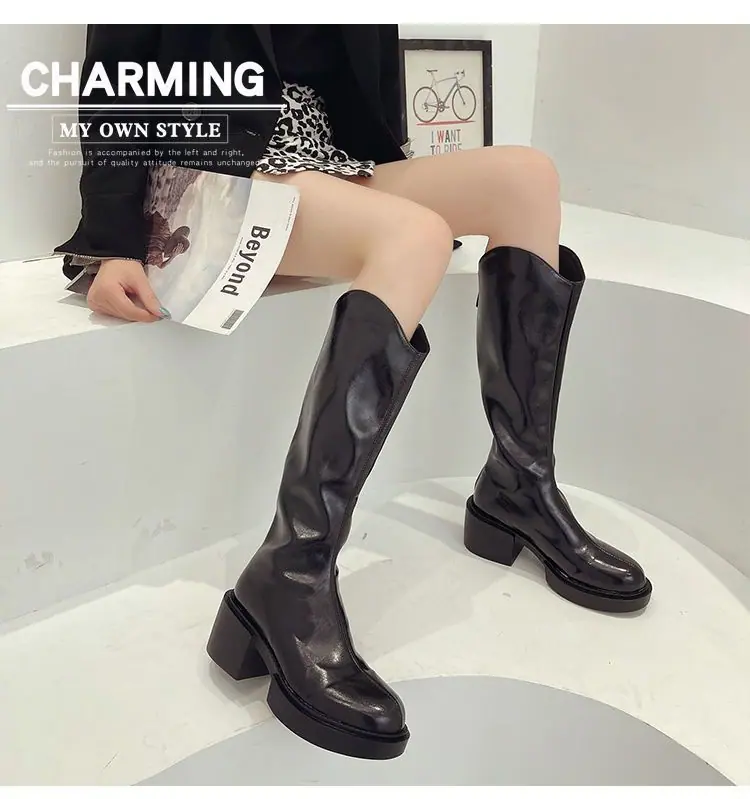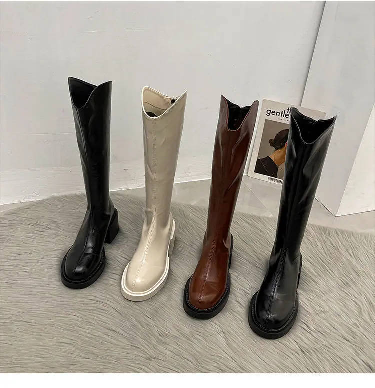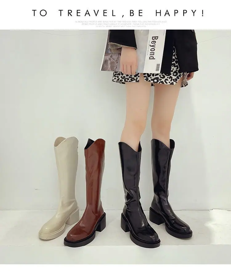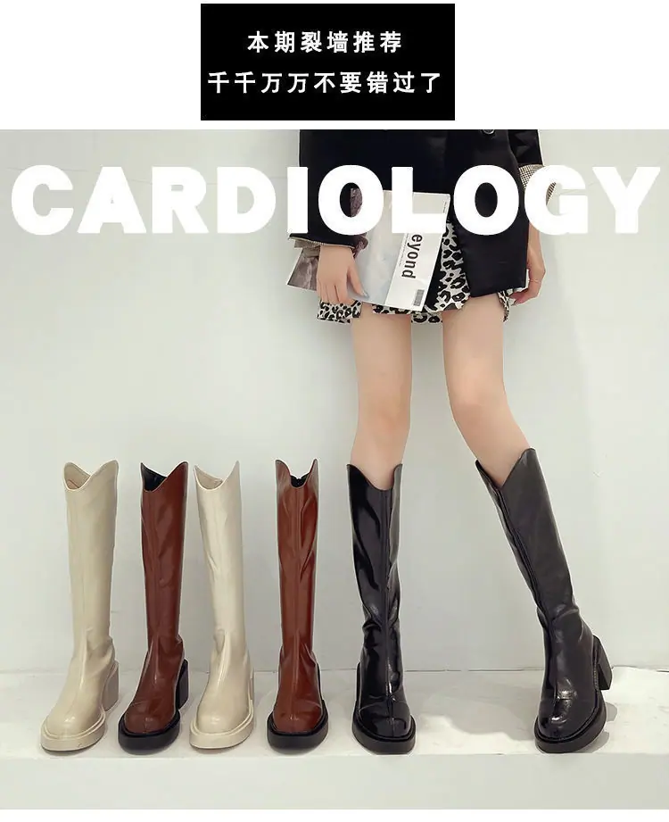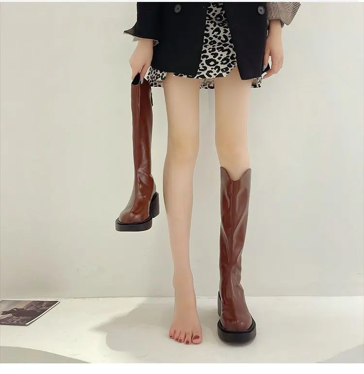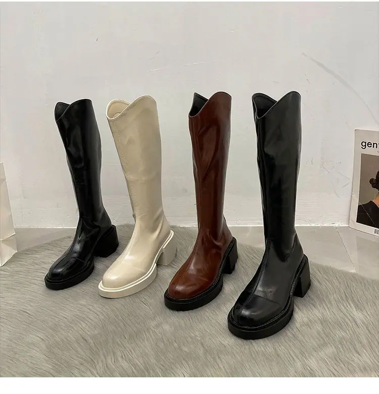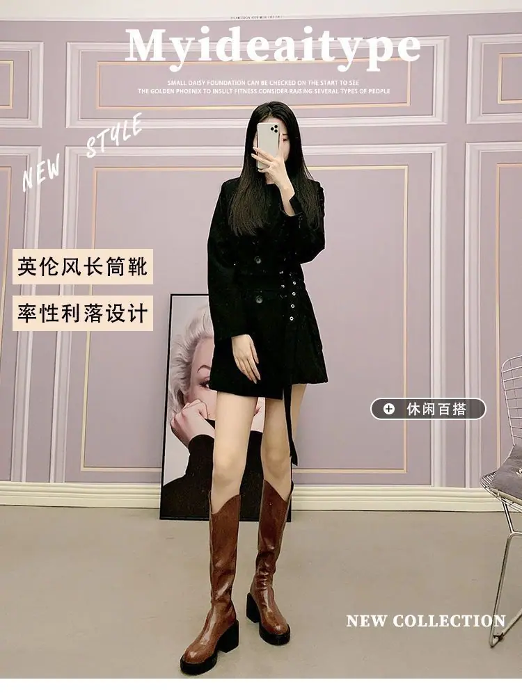 Botas de caballero de suela gruesa para aumentar la altura de celebridad de internet para mujer 2022 otoño e invierno nuevas botas largas de caña alta adelgazantes deseo puro botas vaqueras estilo británico