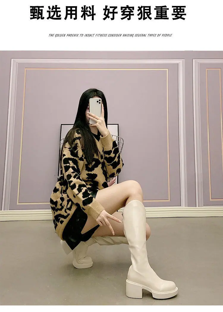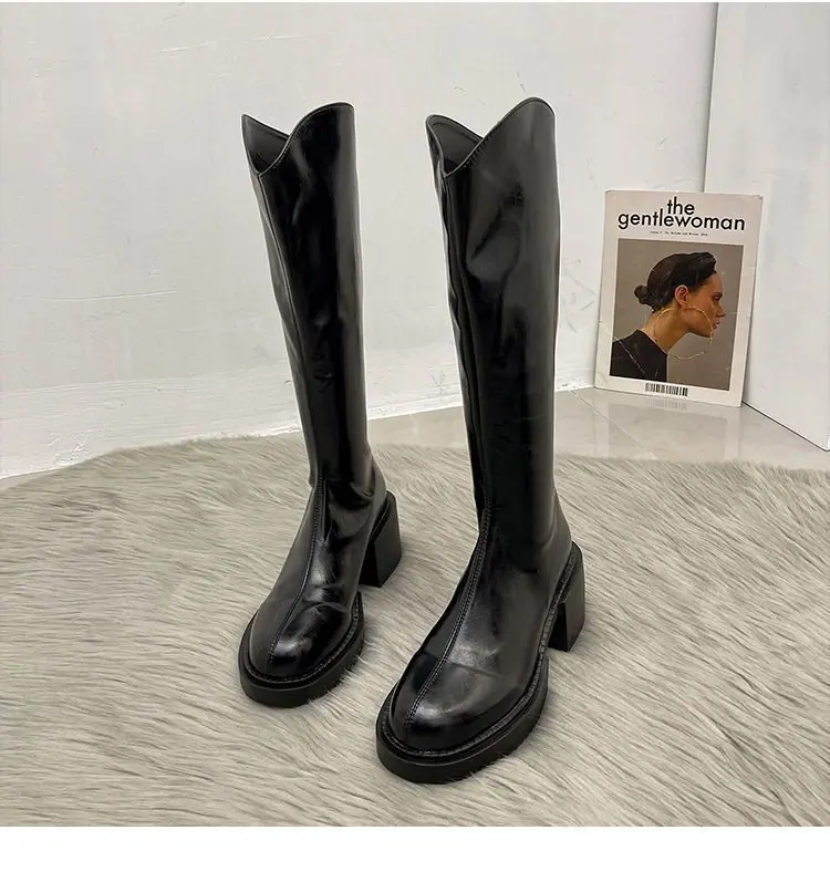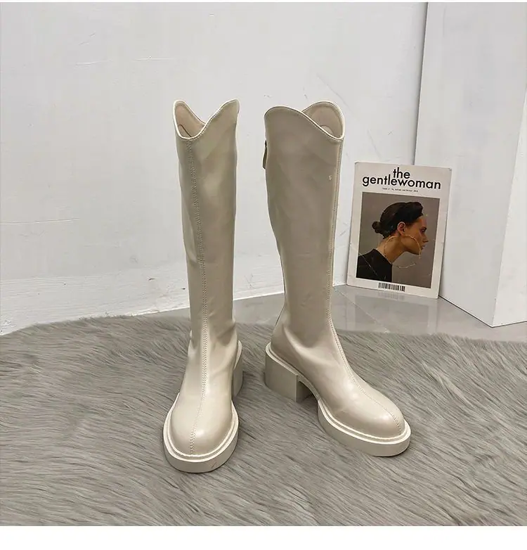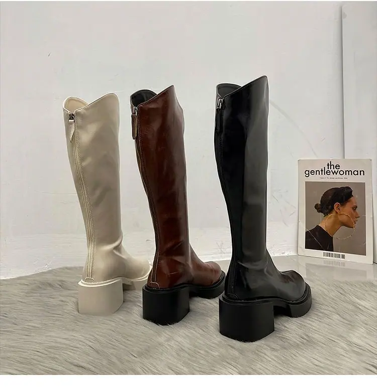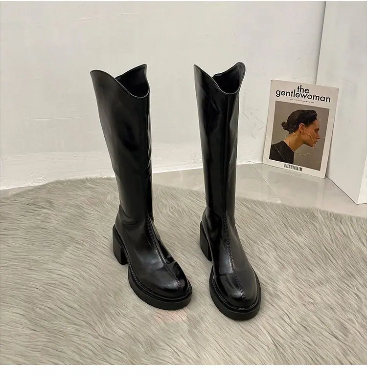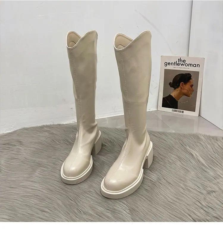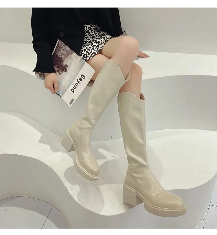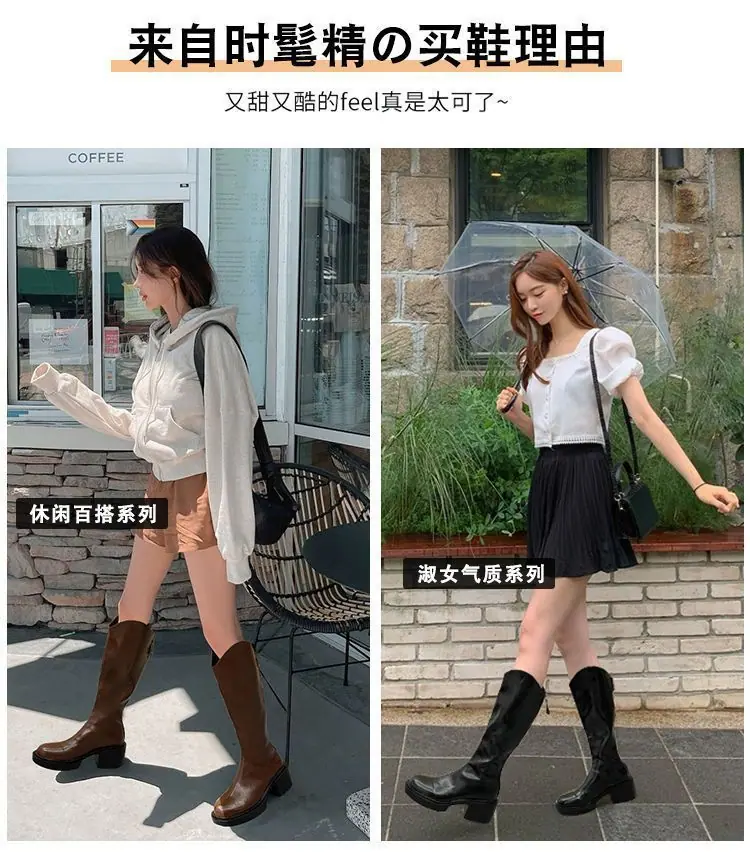 Botas de caballero de suela gruesa para aumentar la altura de celebridad de internet para mujer 2022 otoño e invierno nuevas botas largas de caña alta adelgazantes deseo puro botas vaqueras estilo británico