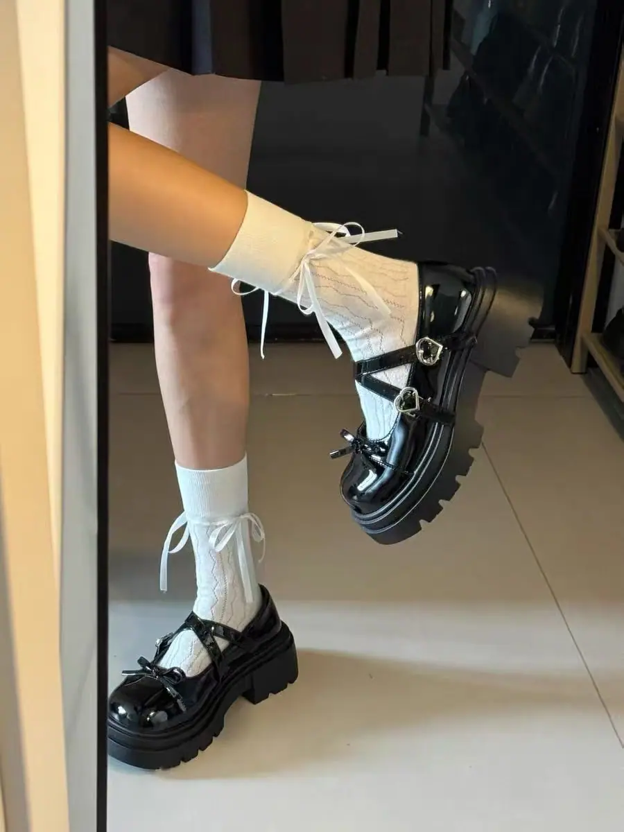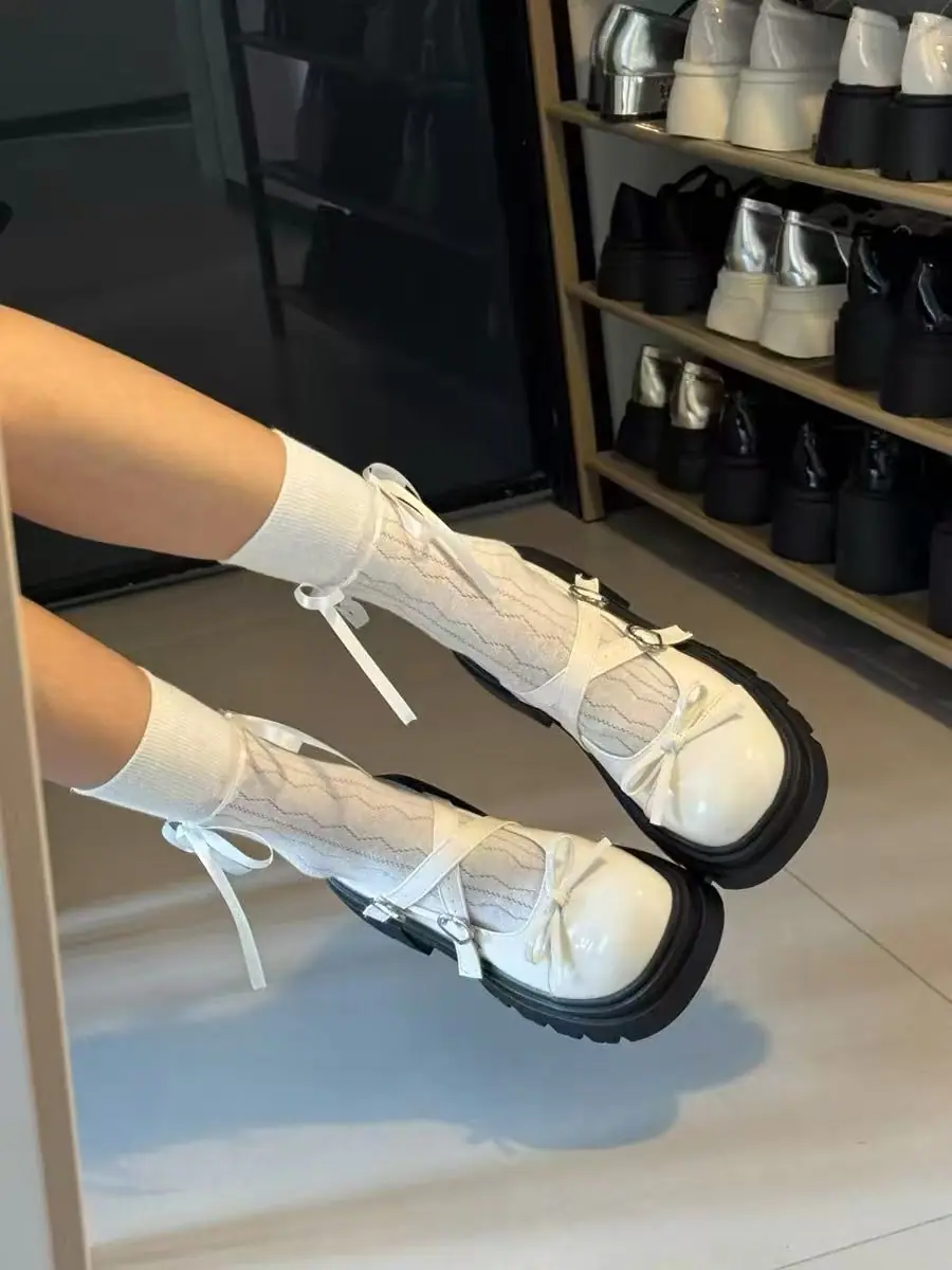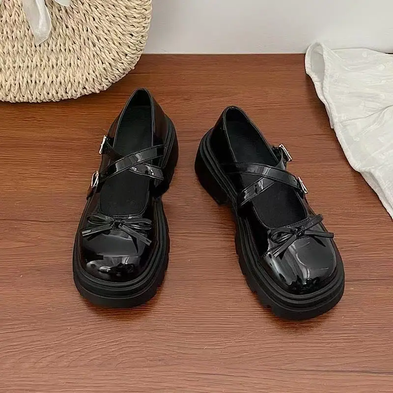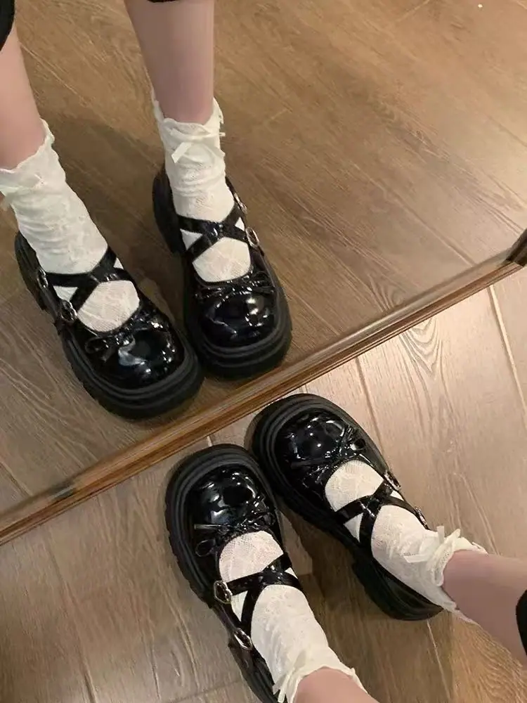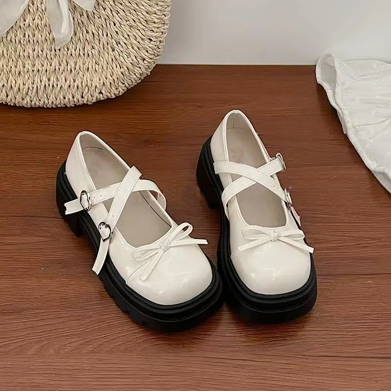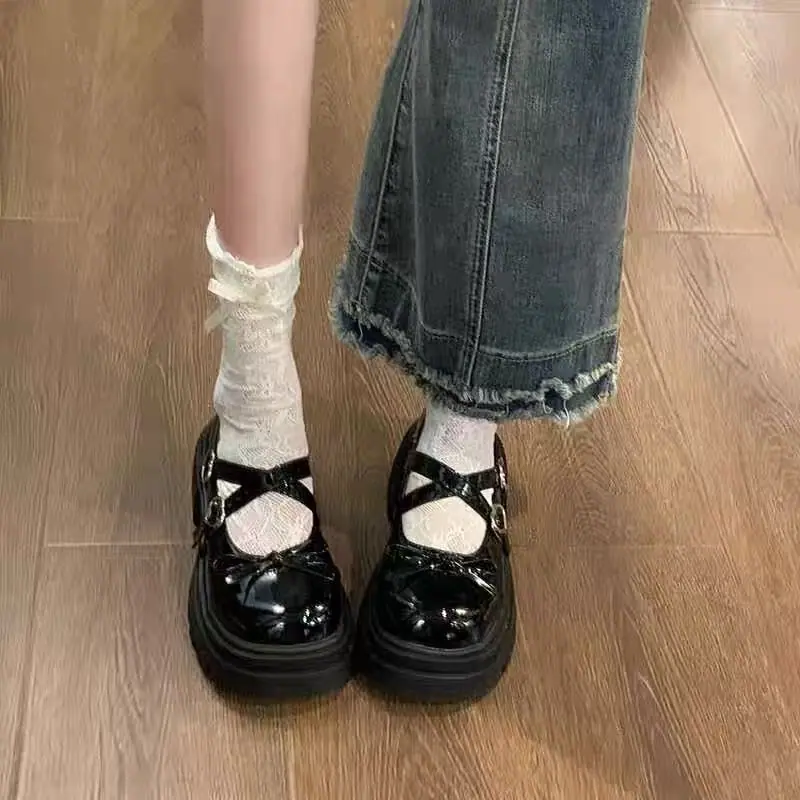 Primavera/Verano 2025 Nuevos Zapatos Pequeños de Cuero de Estilo Japonés Retro Más Vendidos de Suela Gruesa Niche Tacón Grueso Aumento de Altura Mary Jane Zapatos Individuales