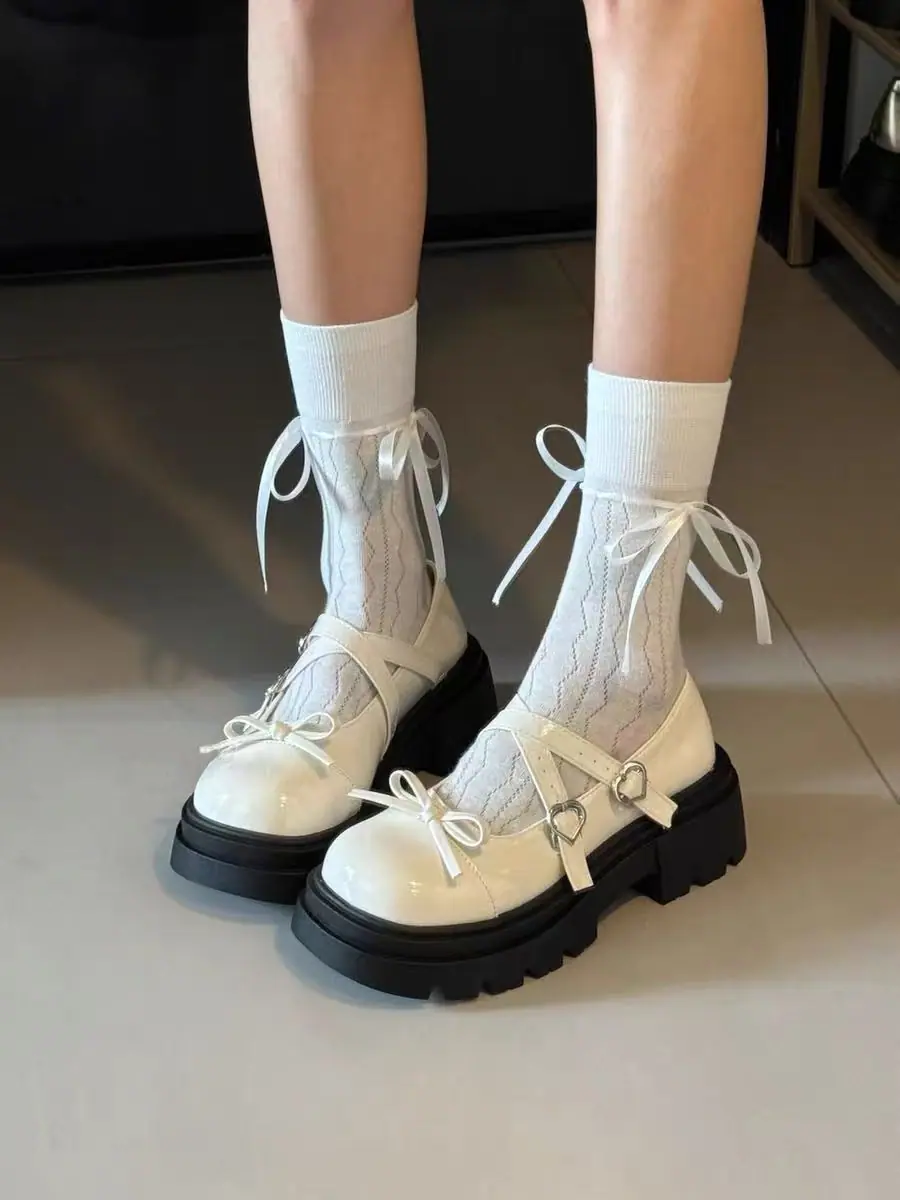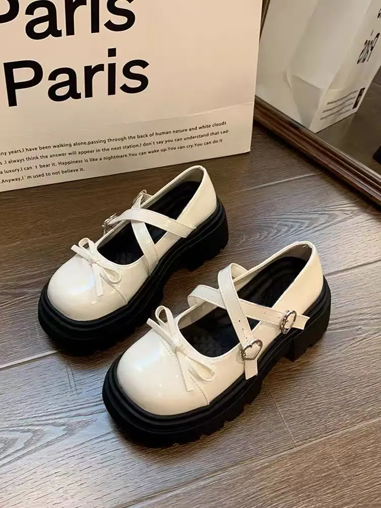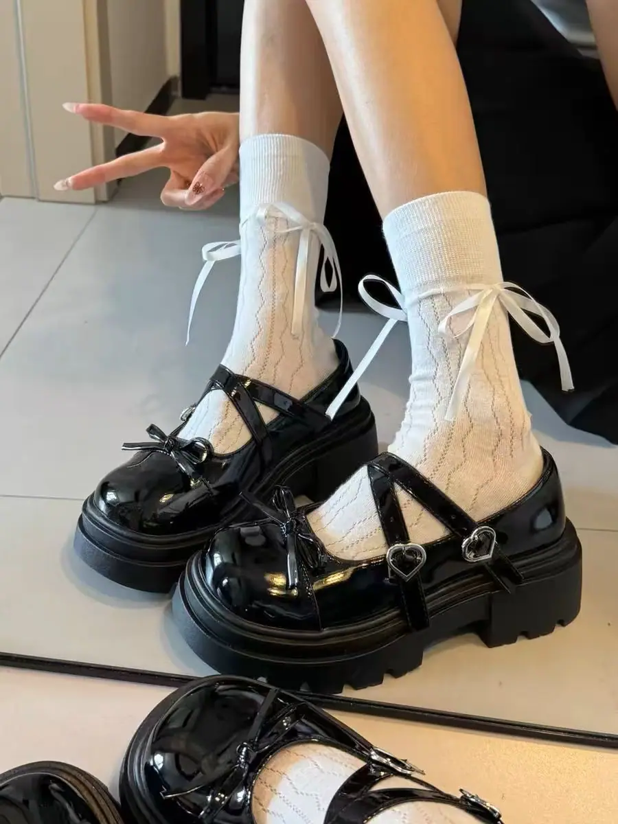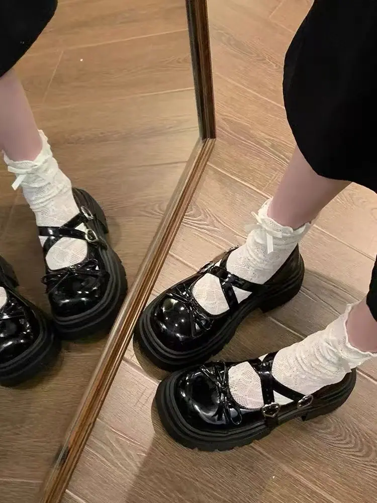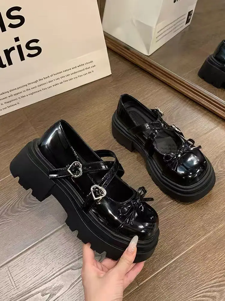 Primavera/Verano 2025 Nuevos Zapatos Pequeños de Cuero de Estilo Japonés Retro Más Vendidos de Suela Gruesa Niche Tacón Grueso Aumento de Altura Mary Jane Zapatos Individuales