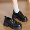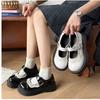 Zapatos Mary Jane de tacón grueso con plataforma y punta redonda para mujer, de verano, que aumentan la altura, de tacón grueso, color negro, tipo mocasín slip-on
