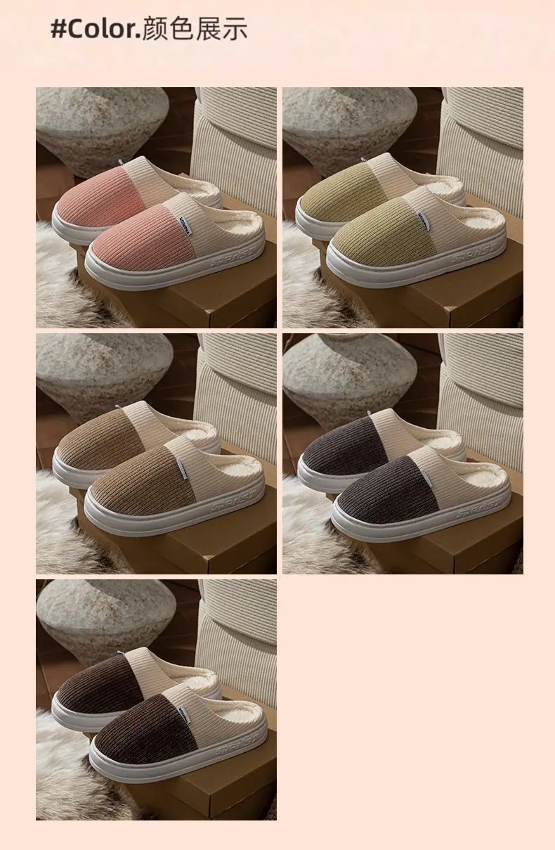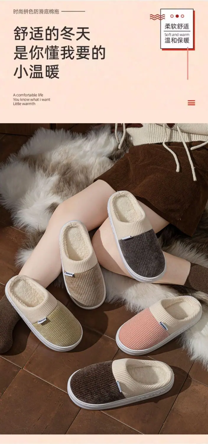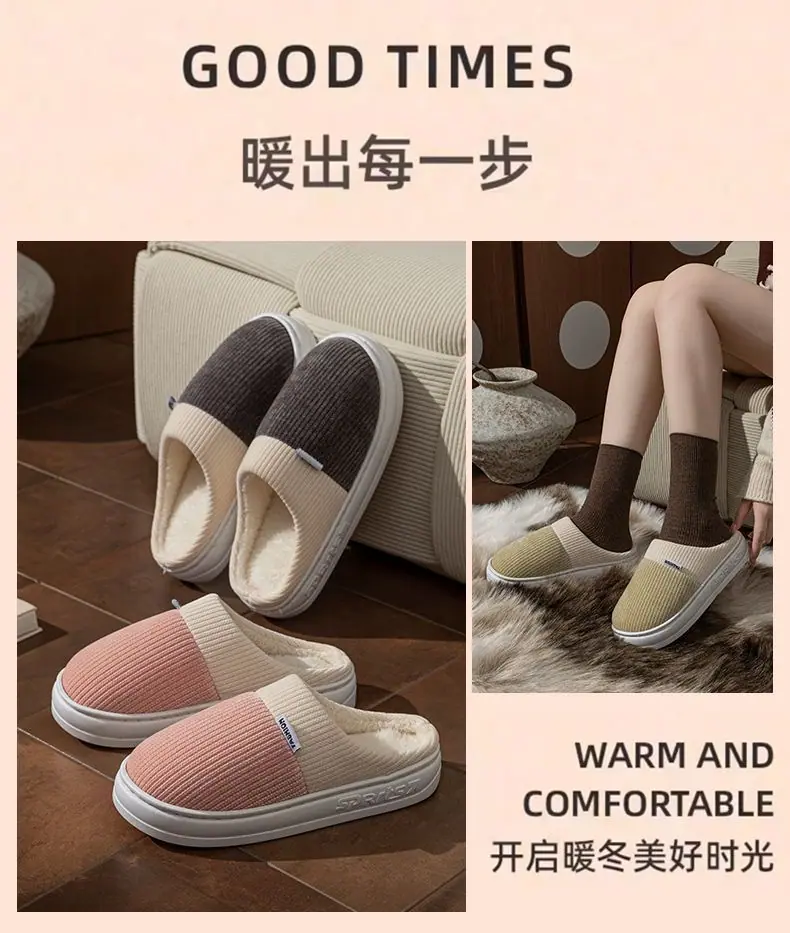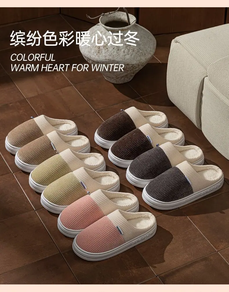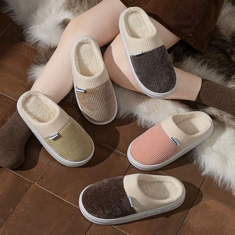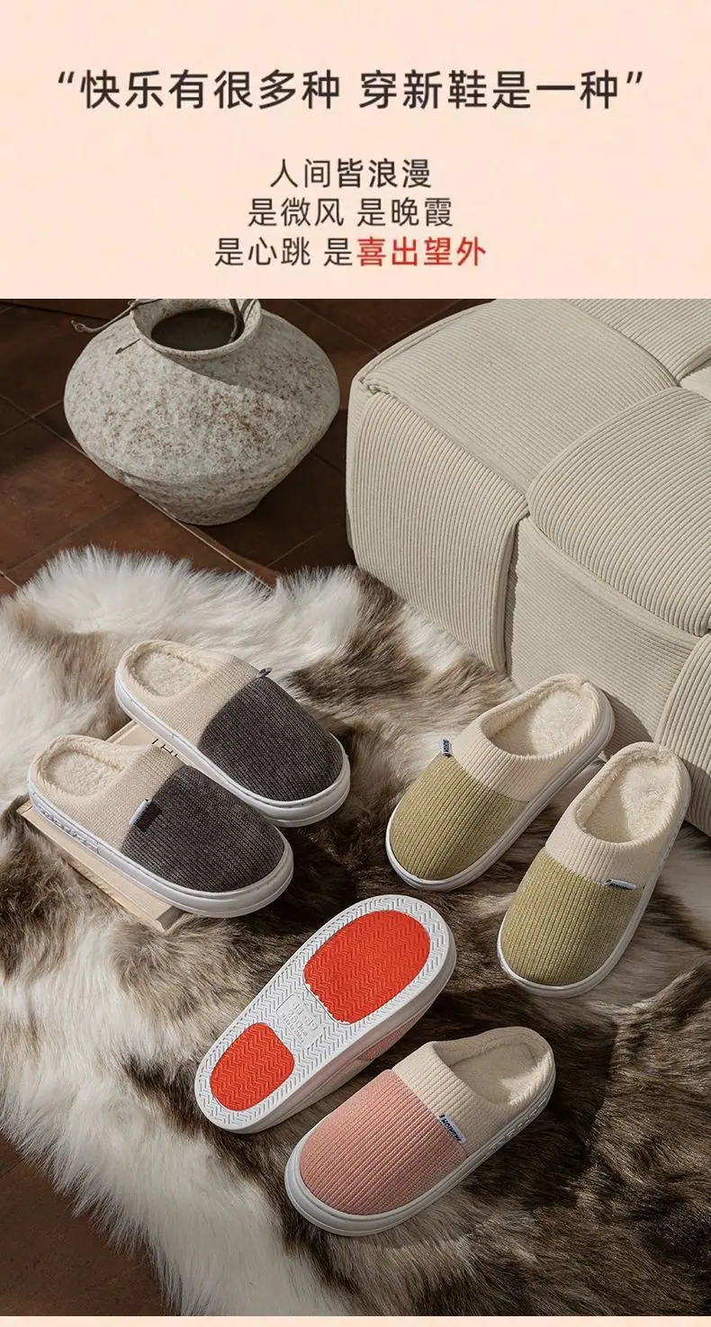 Pantuflas de Algodón para Hombre Otoño Invierno 2025 Nuevo Estilo Interior Hogar Pareja Antideslizantes Antiolor Cálidas Pantuflas de Felpa para Mujer