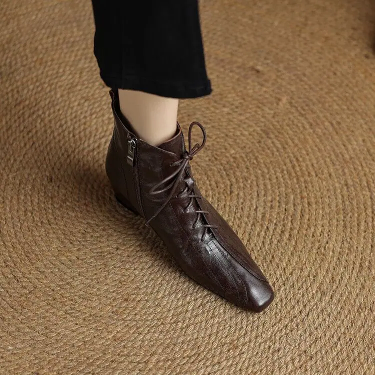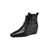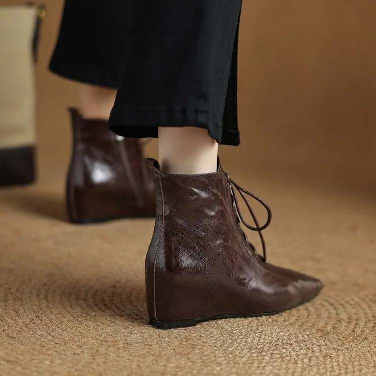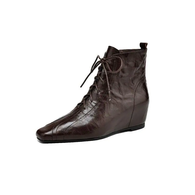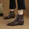 Botines de Punta con Tacón Oculto al Tobillo para Mujer, Botas de Tacón Medio con Cuña, Otoño e Invierno, Nueva Moda, Cordones, Casuales, Cortos