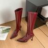 Botas de Caballero de Tacón Fino para Mujer 2025 Otoño e Invierno Nuevas Botas de Tacón Alto por Encima de la Rodilla de Cuero Patentado Francés Botas Retro