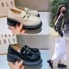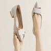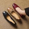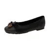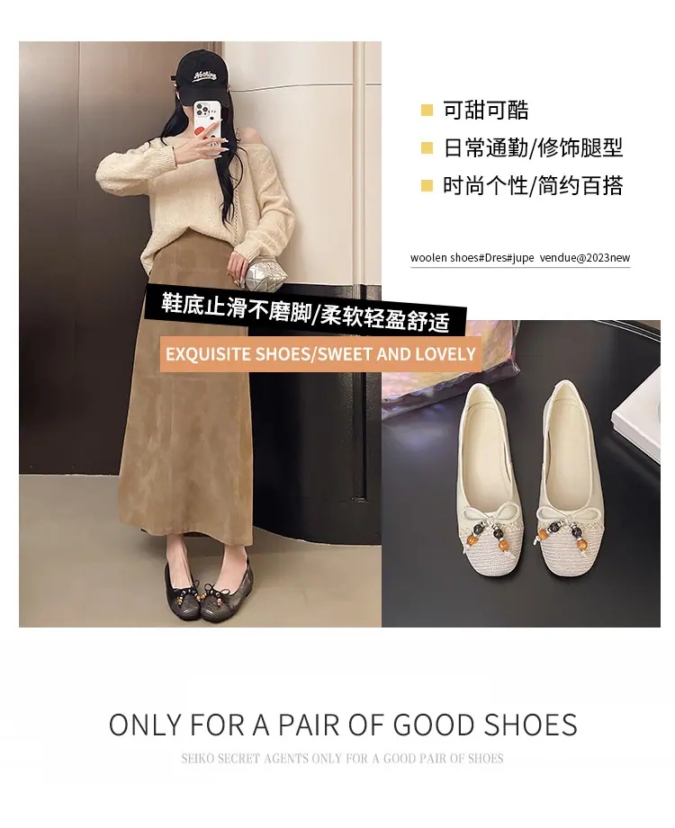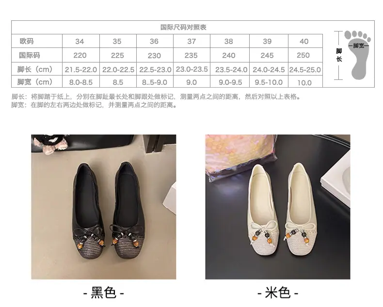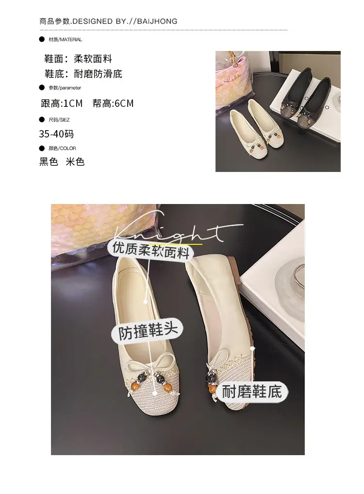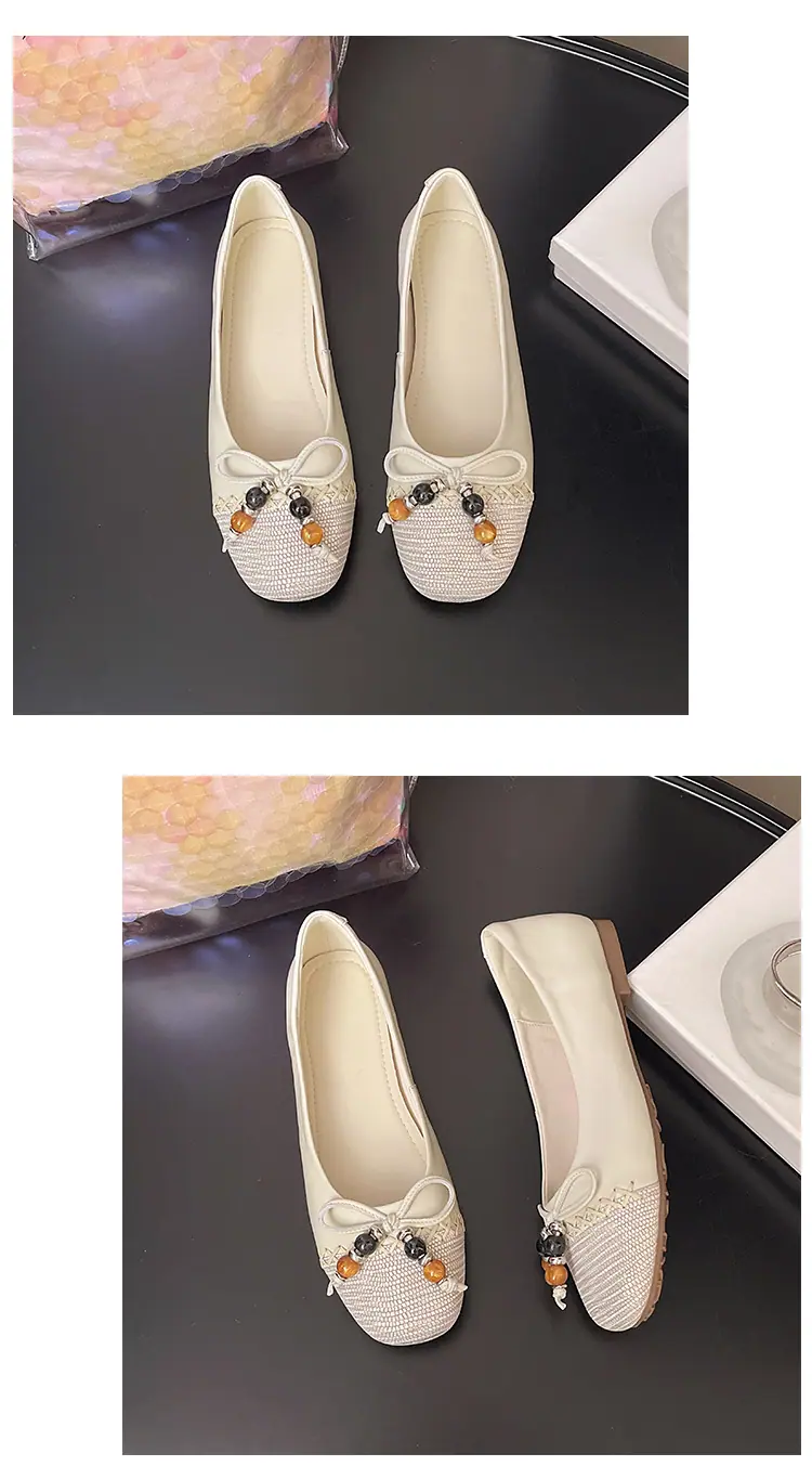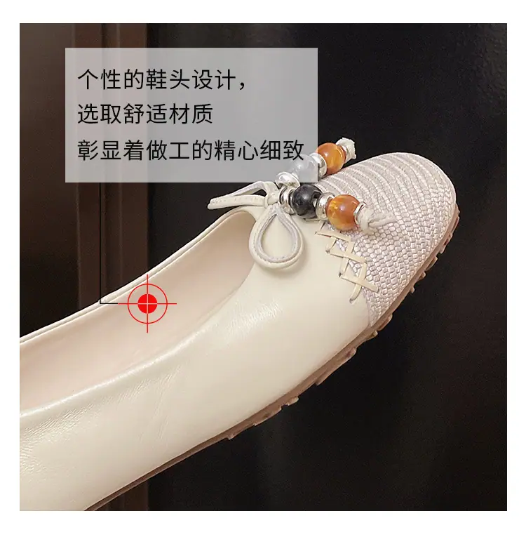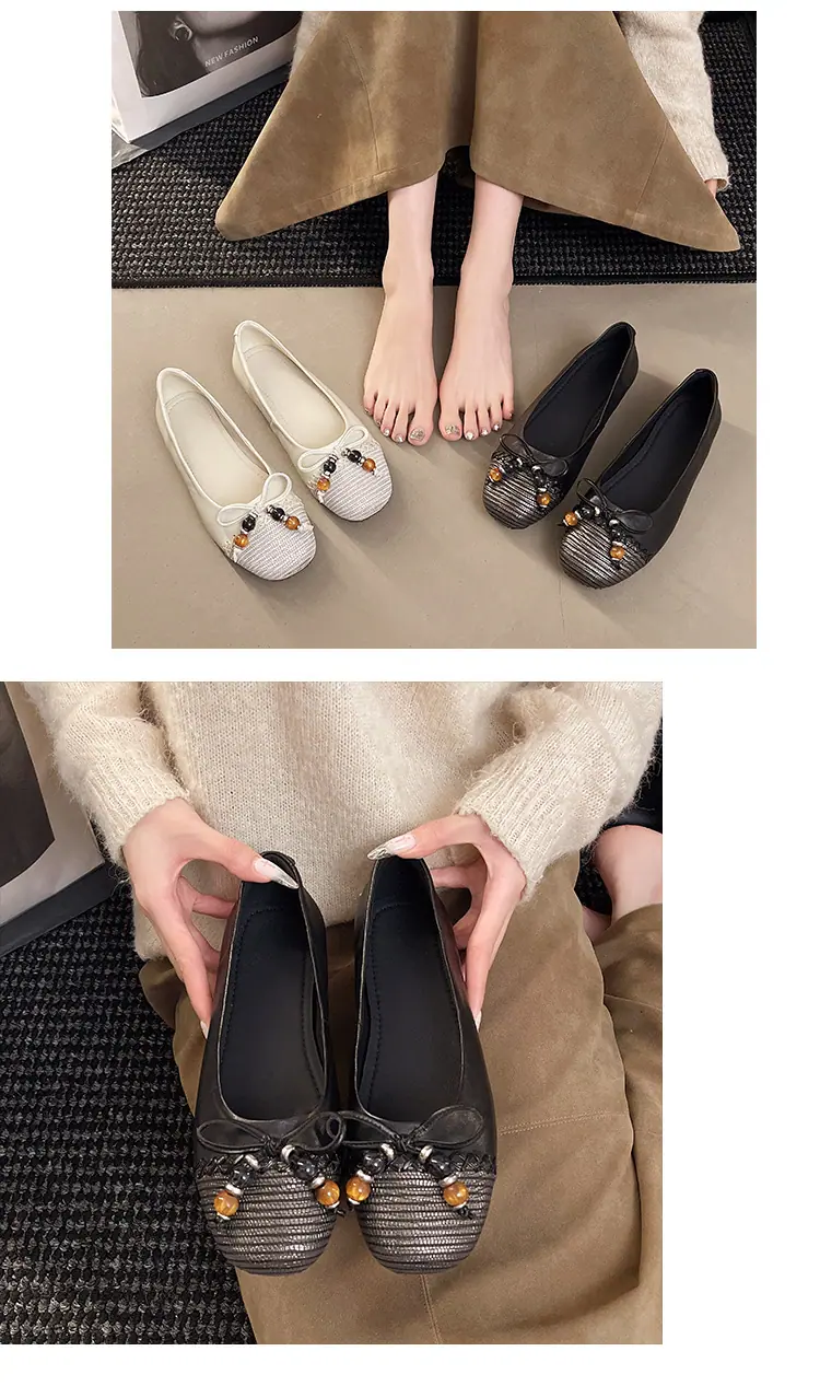 Zapatos Individuales de Corte Bajo de Piel de Vacuno de Capa Superior para Mujer 2025 Otoño Nuevos Cuero Genuino Lazo Cuentas Punta Redonda Cuero Plano Zapatos de Abuelita