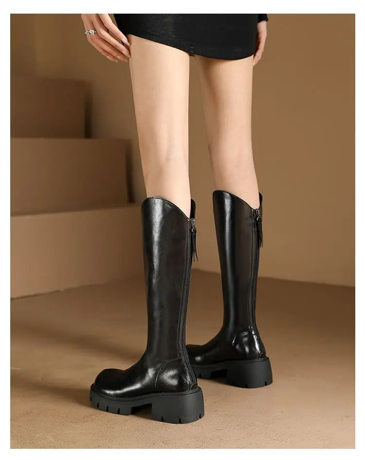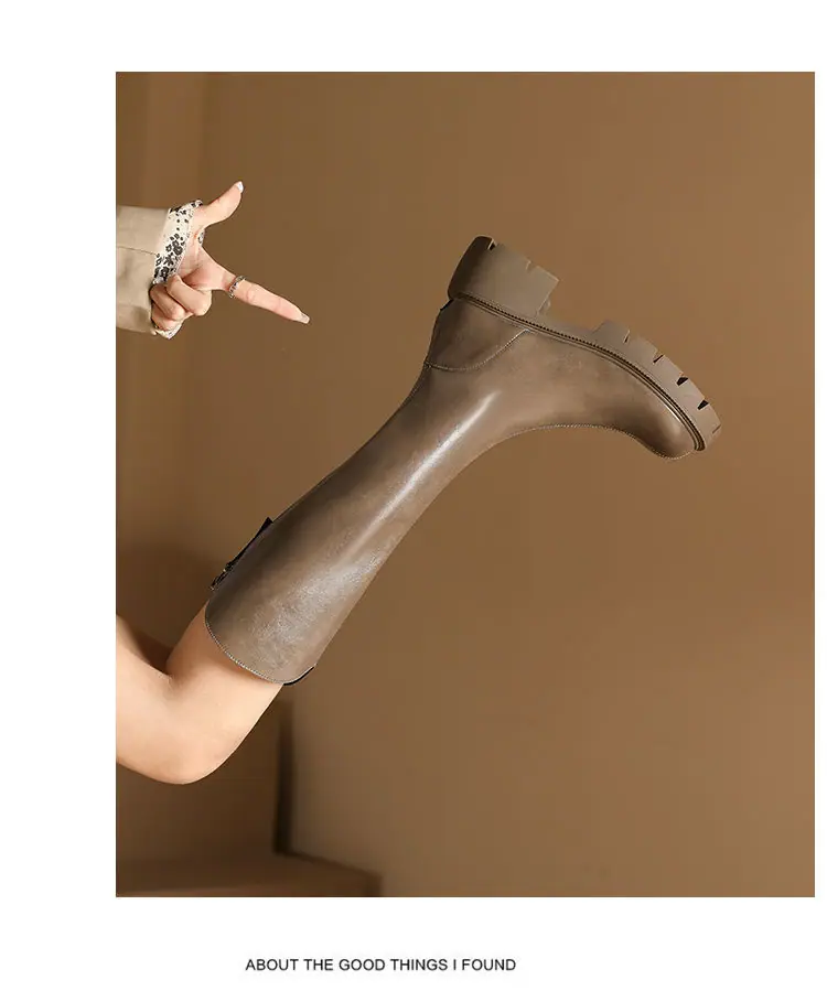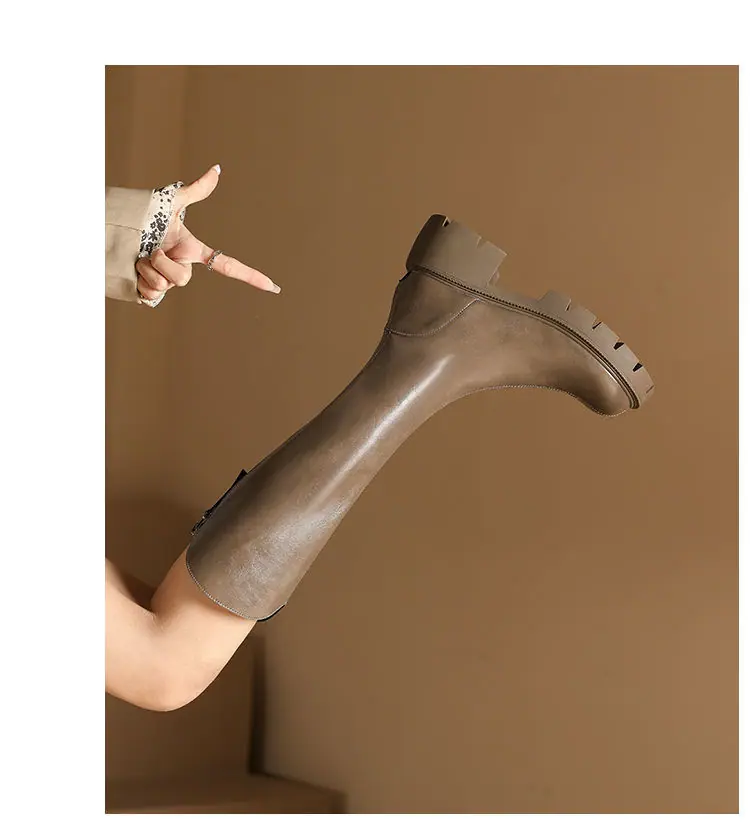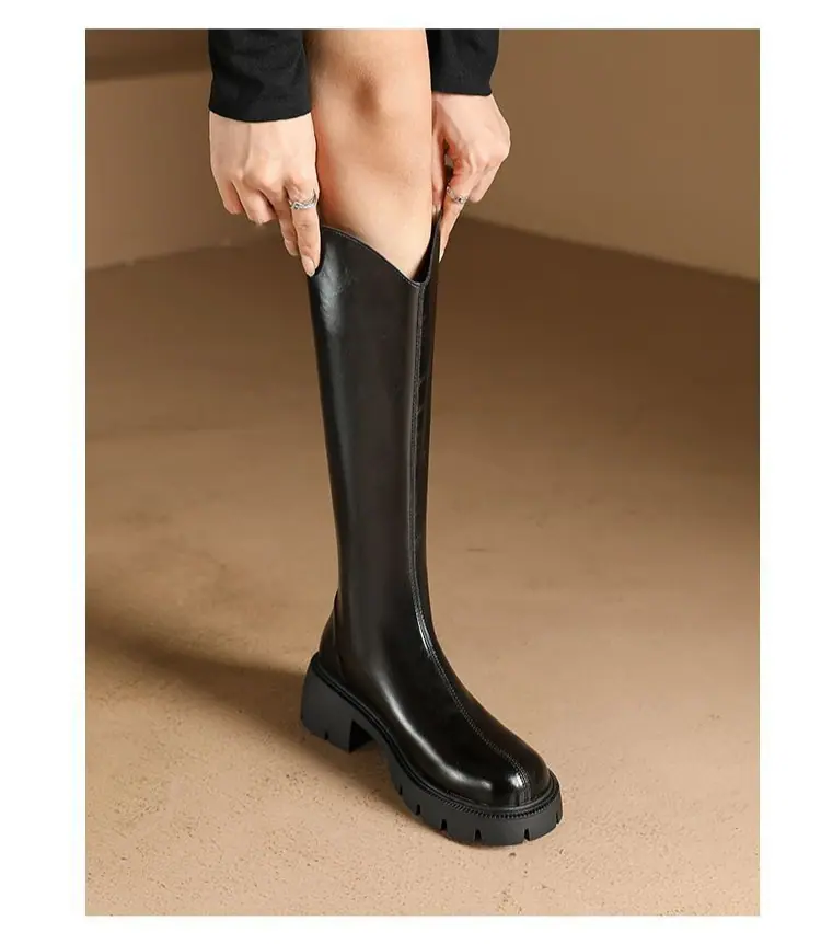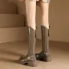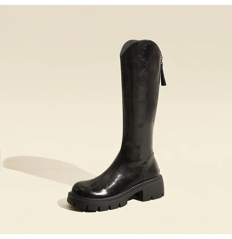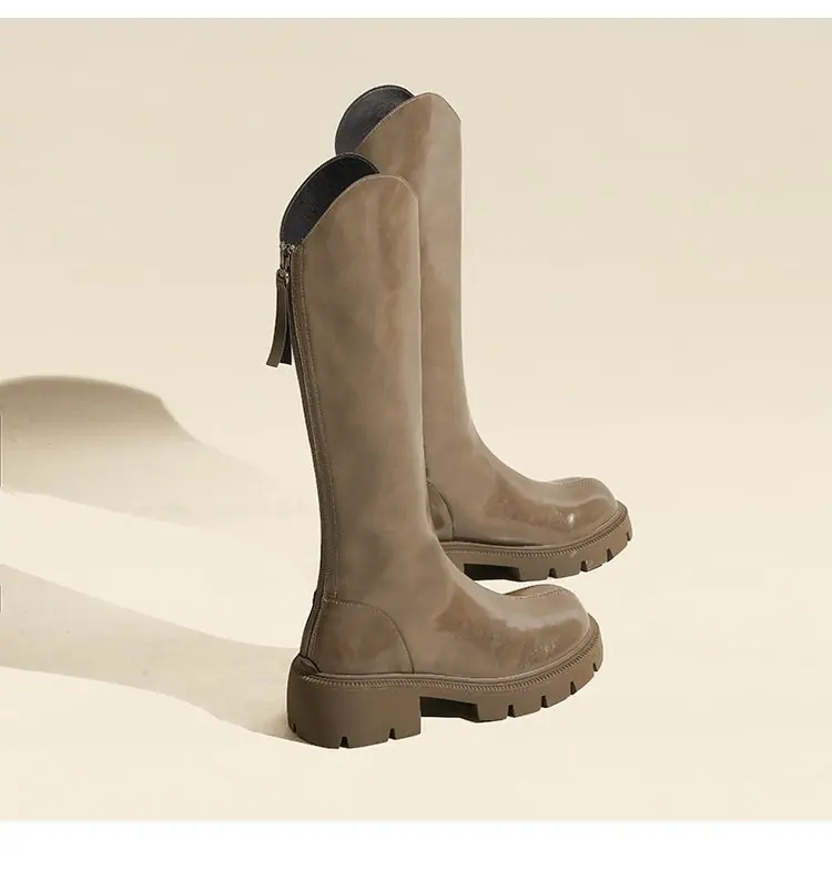 Botas mosqueteras con aumento de altura, tacón grueso, otoño e invierno 2025, nuevas, modernas, versátiles, con cremallera, tipo caballero, suela gruesa, caña alta