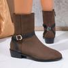 Nuevas Botas de Moda Occidentales de Gran Tamaño Europeas y Coreanas para Comercio Exterior Transfronterizo, Punta Redonda, Hebilla de Cinturón, Acabado Mate, Botines Planos, Botas de Media Caña